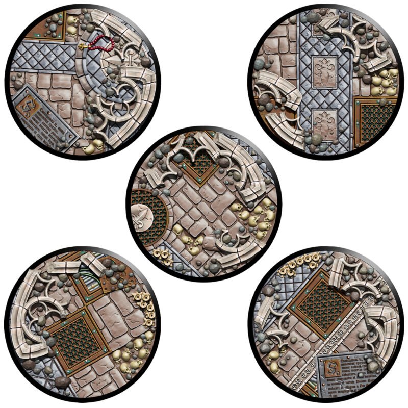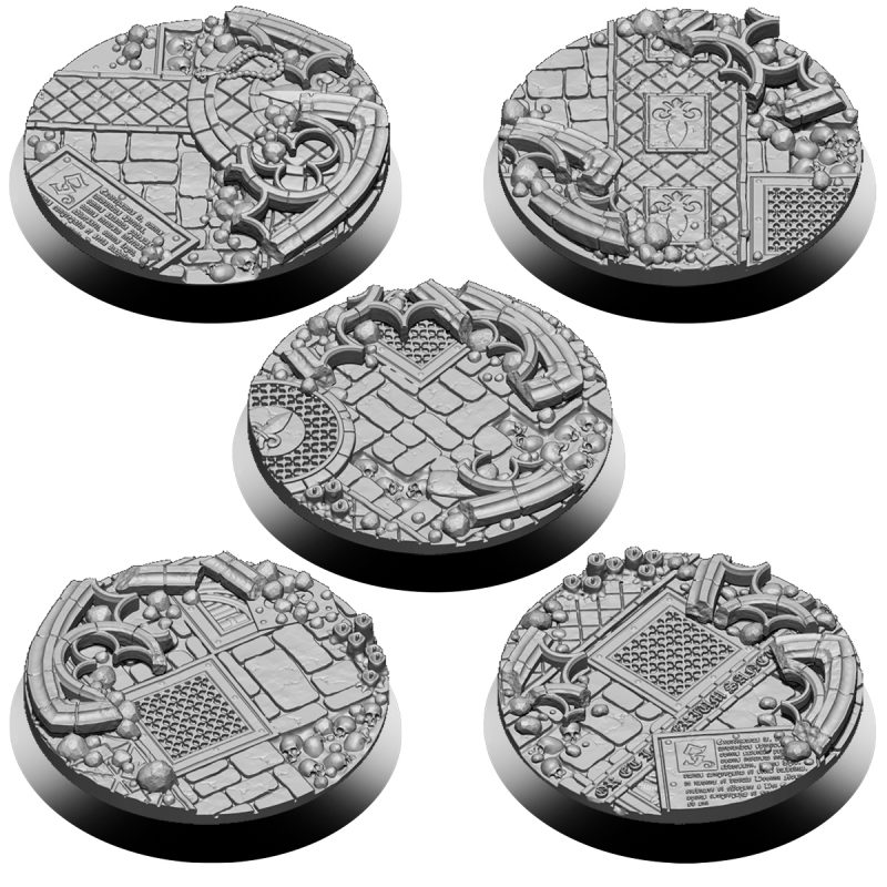 – 5 50mm EMPEROR SISTERS textured base covers and 5 50mm plastic bases.