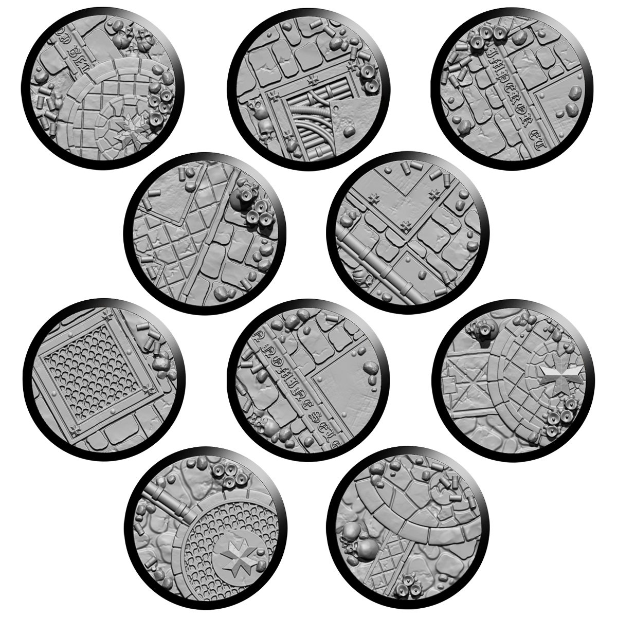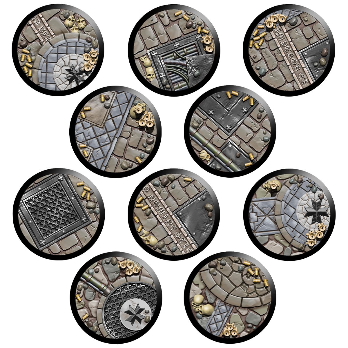 – 10 28.5mm IMPERIAL TEMPLAR textured base covers and 10 28.5mm plastic bases.