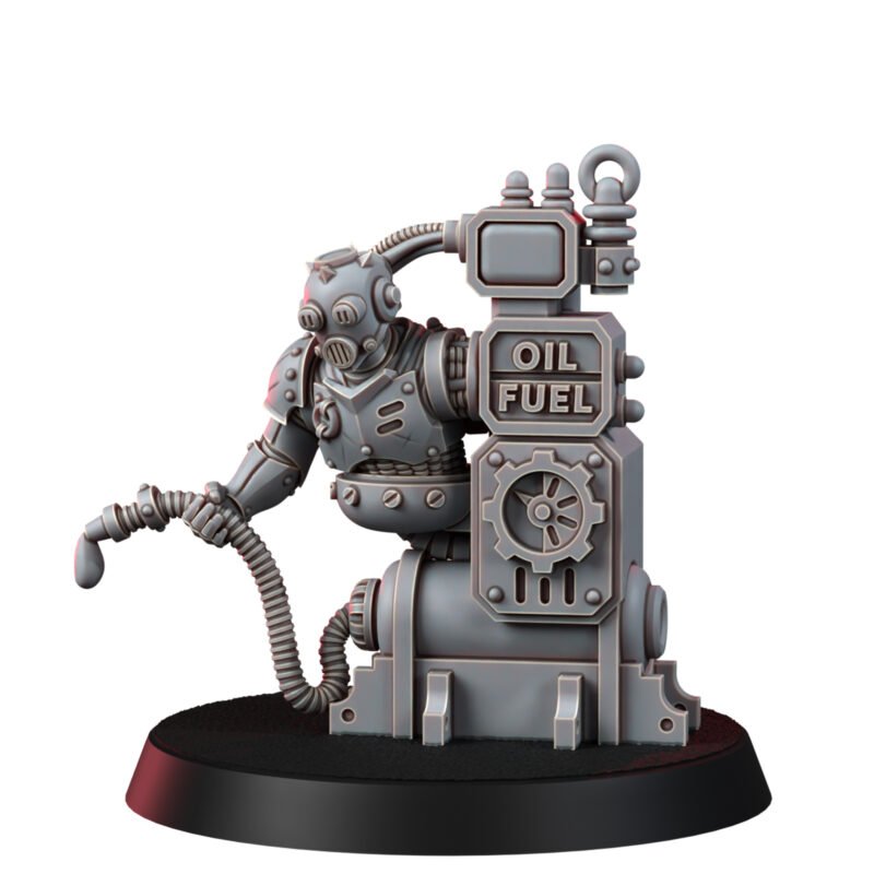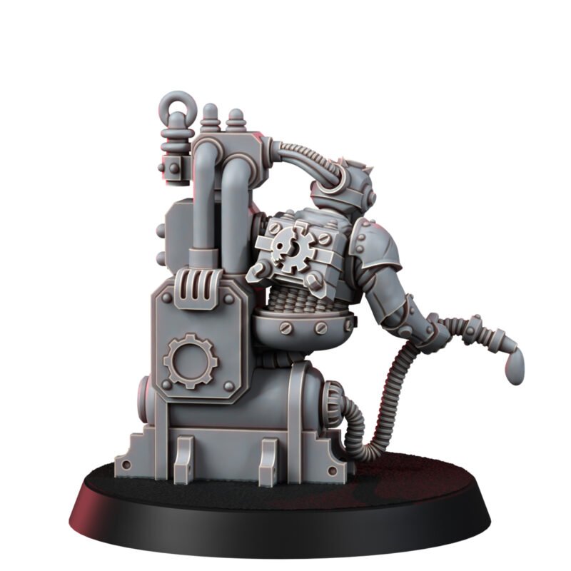 The “Eternal Servitor,” once a brilliant scientist, chose to merge with an oil station to serve the Mechanic Adepts eternally. His mind, now fused with the machine, holds invaluable knowledge and an undying loyalty to his cause, making him a revered figure among the Adepts.