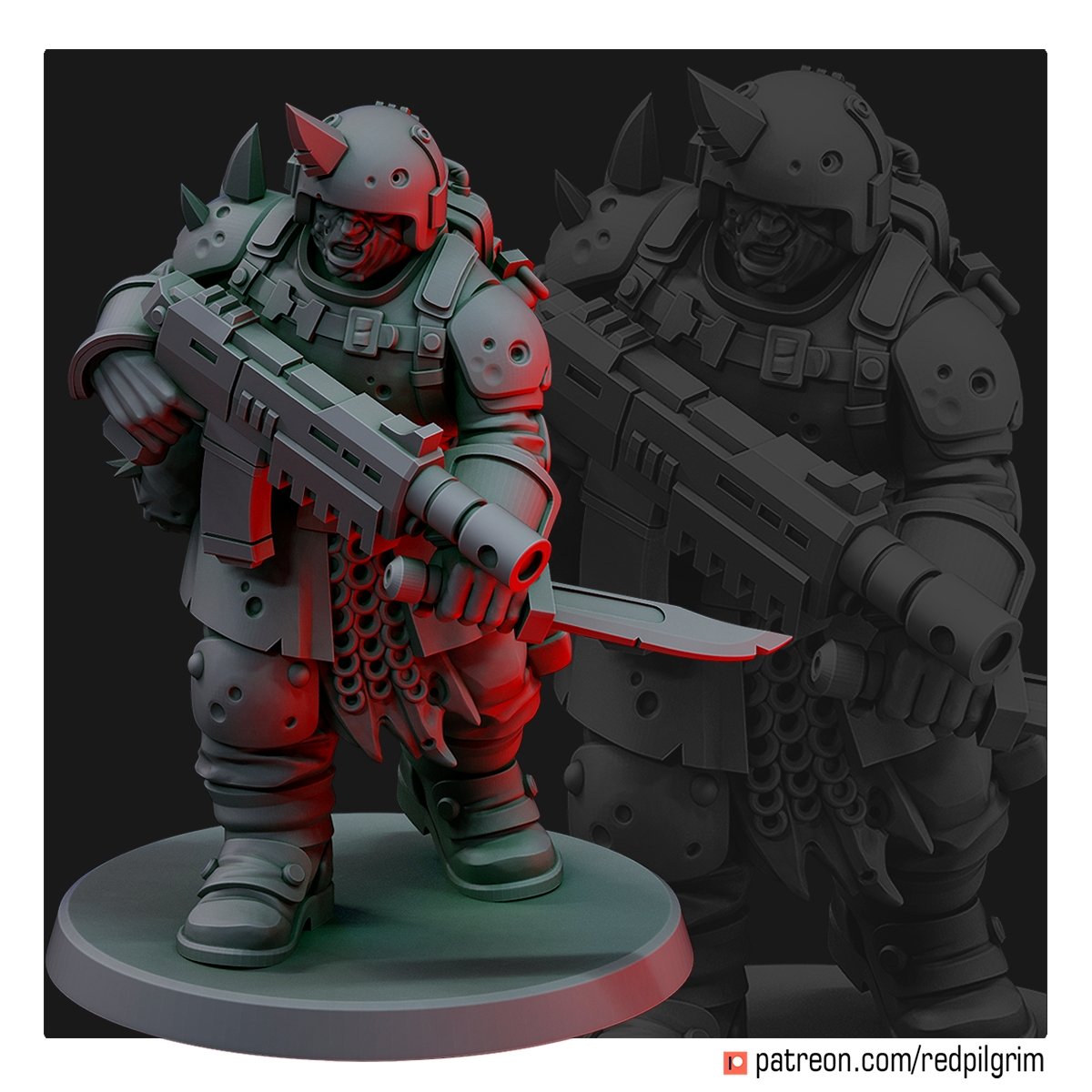 Oathbreakers. Until recently they were the regular defense forces of the planet Chalcedon V, but the intrigues and witchcraft of the Heresiarch forced them to break their oaths and take the side of the traitor. Rank insignia, battle flags, regimental names – all this was forgotten by them, and replaced with cult emblems. A special pride of oathbreakers is the severed hands of the enemy – this practice symbolizes their rage towards those who did not go over to the side of the Heresiarch and continue to keep their vows, putting their hand to their hearts.