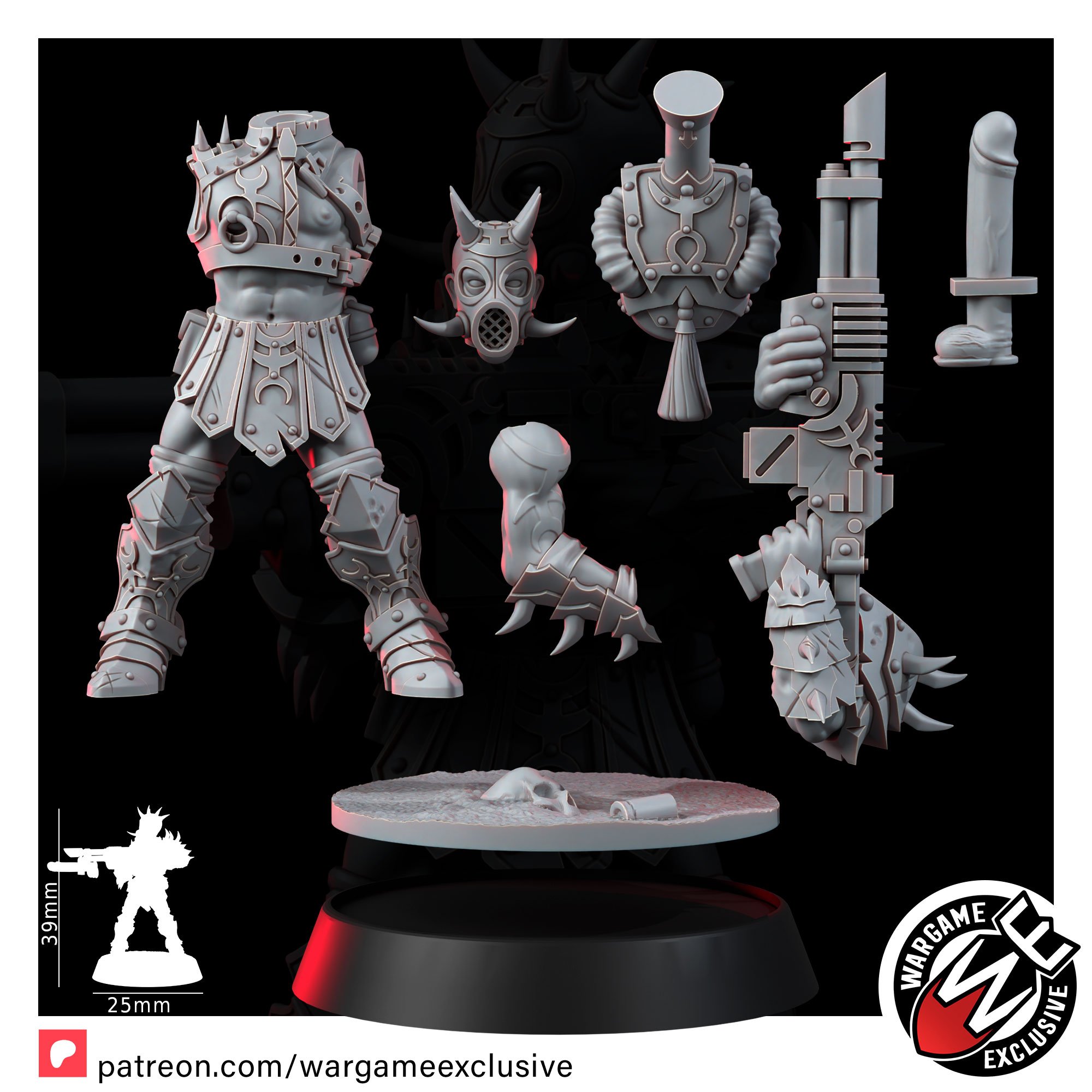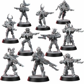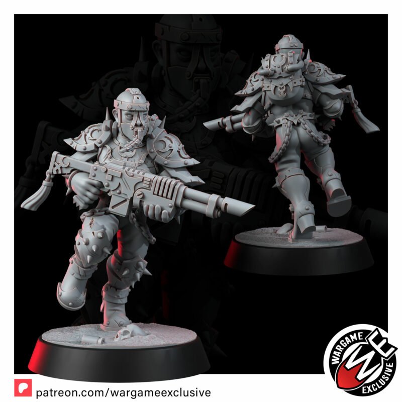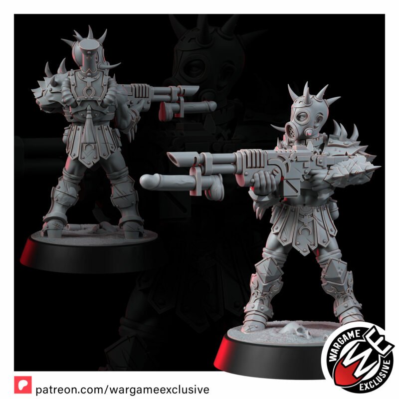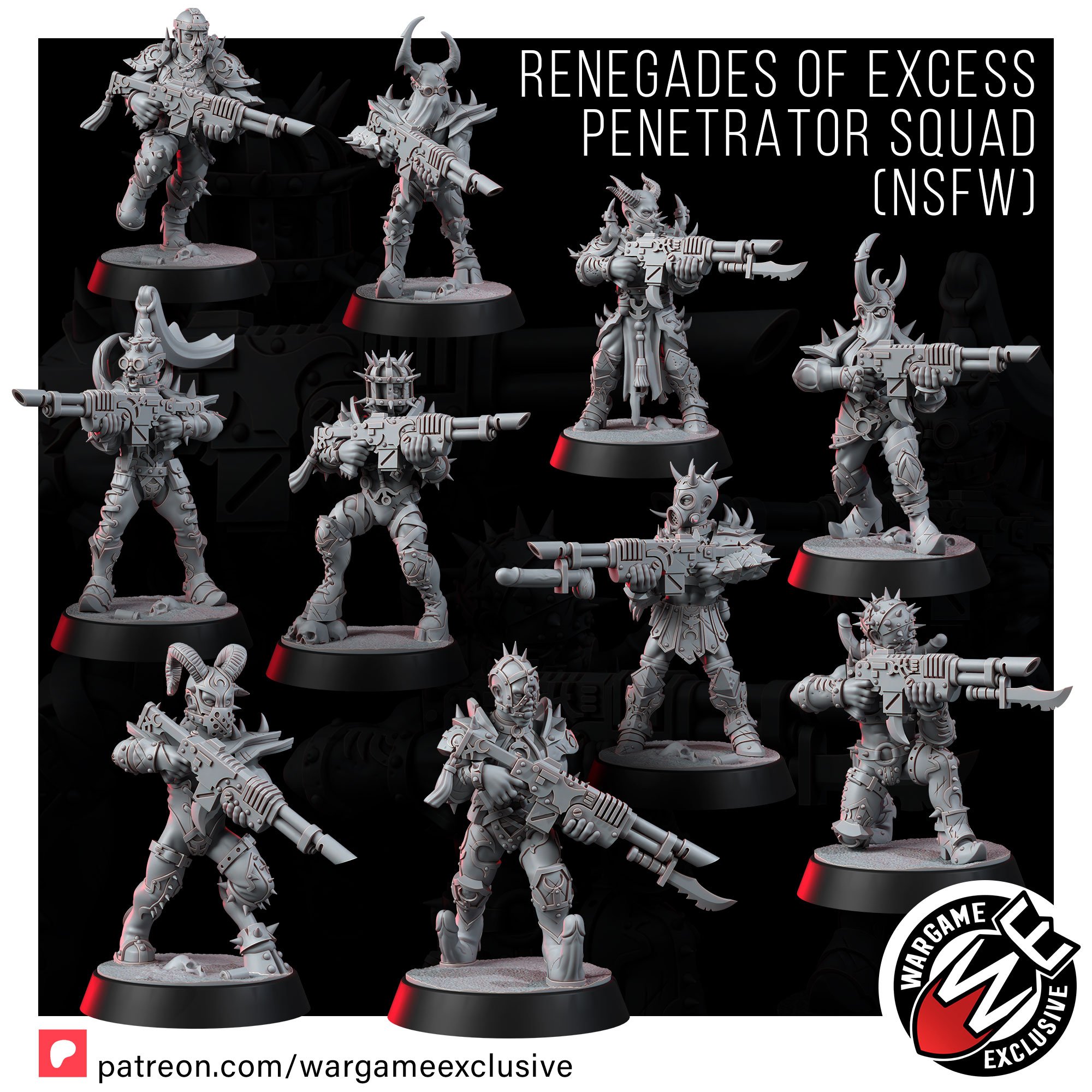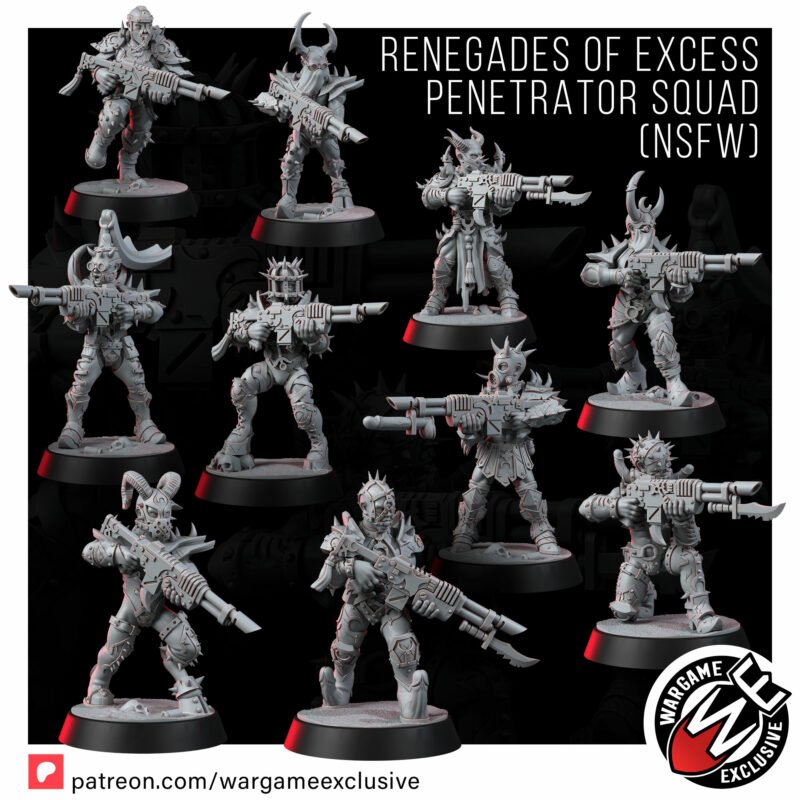 Where the standard squad hints at depravity, the NSFW Edition tears away the last scrap of pretense. These miniatures are unfiltered desecration – bare skin scarred and branded, weapons turned into obscene instruments of power, armor that is more harness than protection. Every detail is a gasp, every pose a violation, every model a testament to total surrender to lust, pain, and violence.