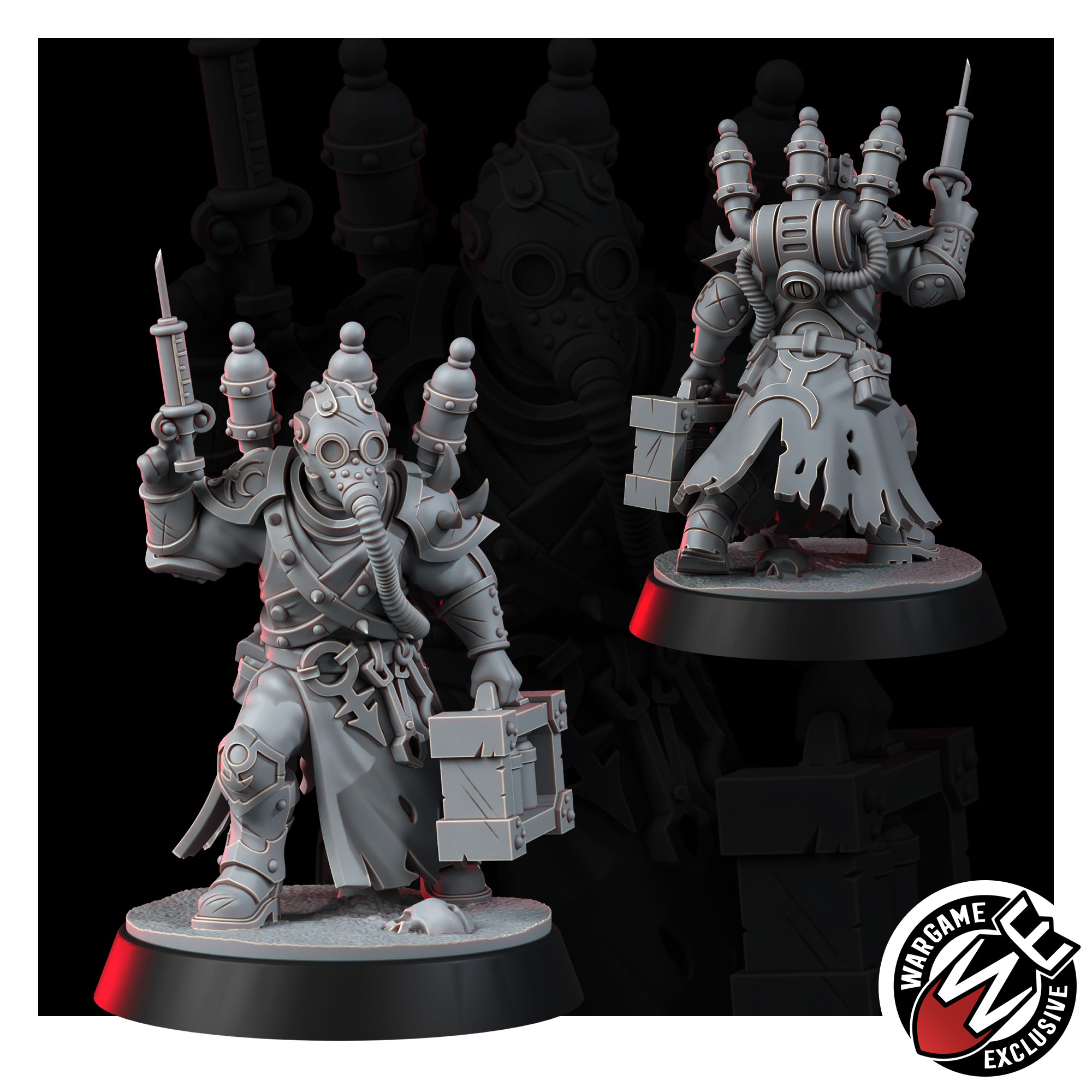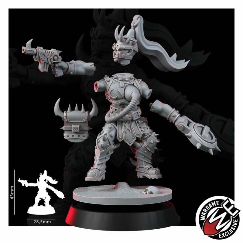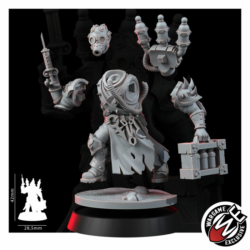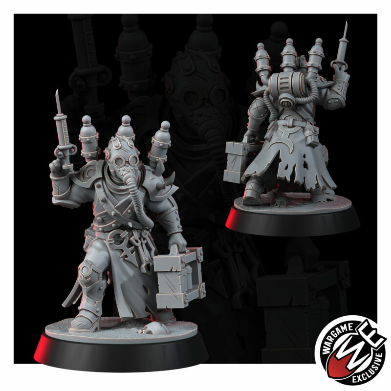 The Medic keeps the warband functional enough to sin again tomorrow. The instruments serve purposes that exist at the intersection of pain and ecstasy – vials organised, blade sterile, mask hiding a face that has watched too many threshold moments with professional detachment. The Medic decides who gets to keep going. That is, in the warband’s theology, the highest form of power there is.