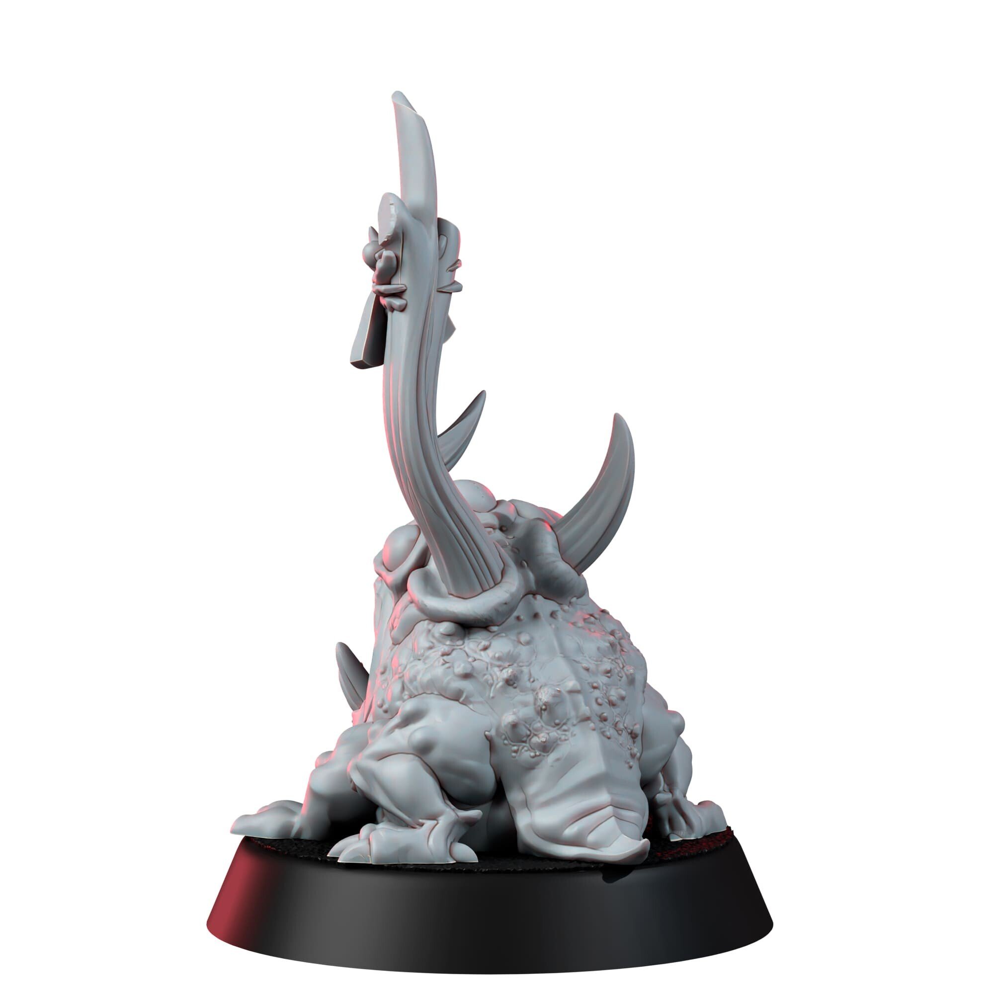 This horned toad of filth sits content on its swollen haunches, skin covered in sores, boils, and fungal ruptures. Fat black flies buzz around its moist form, worshipping the rank nectar of decay that drips from every pustule. Its grotesquely extended tongue twitches with anticipation, ready to lash out at anything remotely clean.