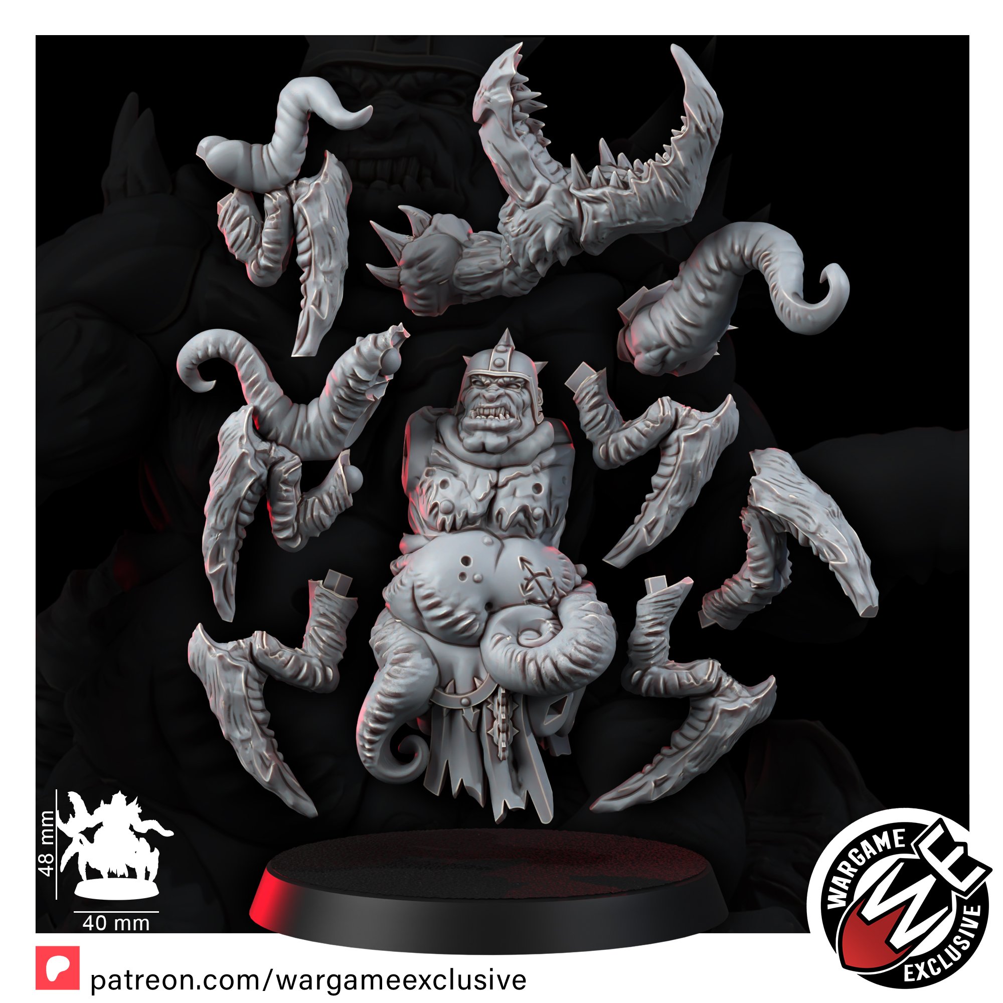 The model stands as a monument to the Chaos Gods’ might, ready to lead your Renegades into the heart of battle. Summon this abomination to your collection; mold it’s putrid forms with your hands and paint them with the colors of damnation. Share in it’s dark glory as you unfurl the banners of Chaos upon the tabletop.