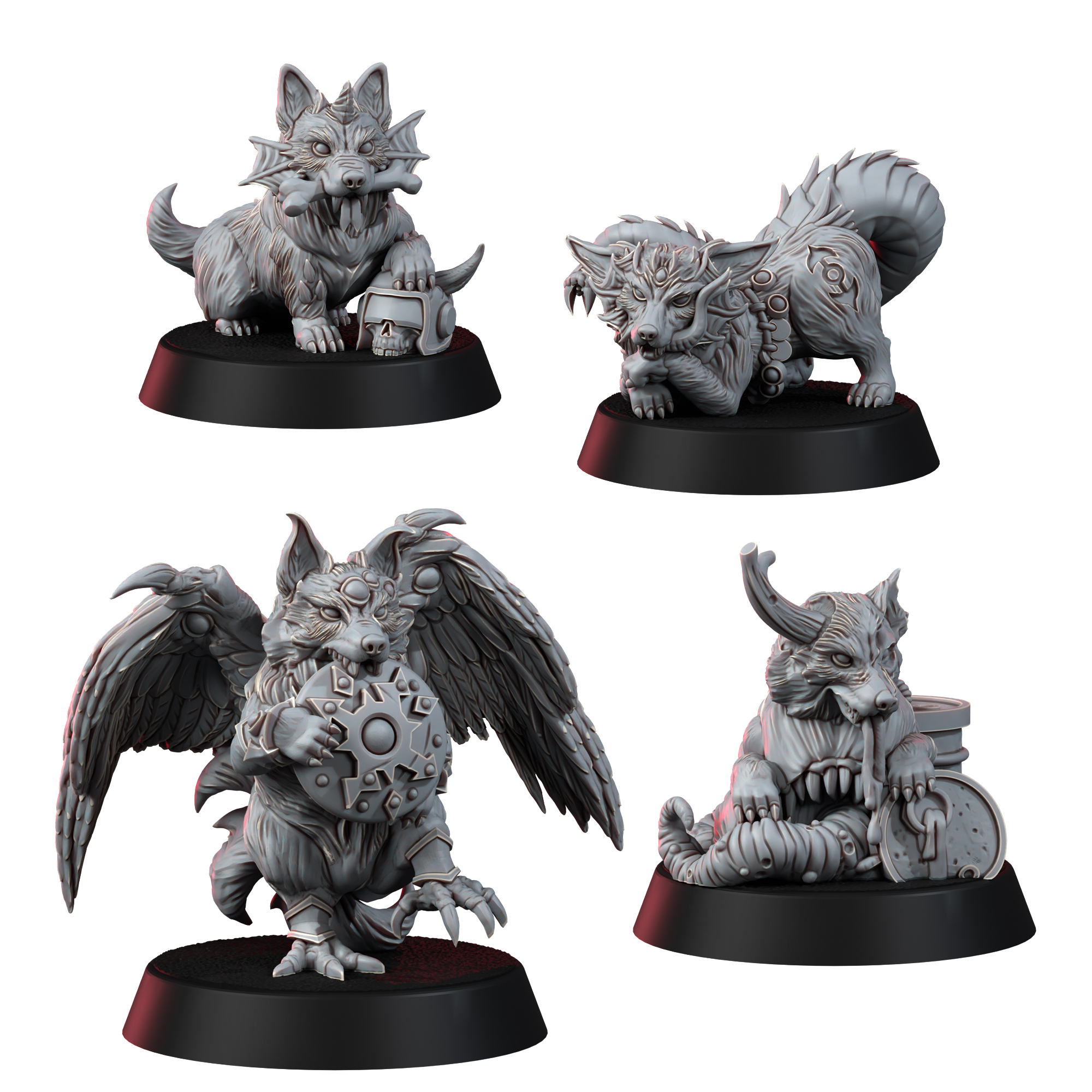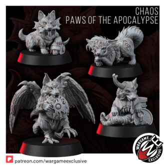 Meet the Paws of the Apocalypse-a delightfully deranged quartet of Chaos-blessed companions, each infused with the twisted essence of one of the Dark Gods. Equal parts adorable and abominable, these faithful fiends are perfect as mascots, objective markers, familiars, or simply the cursed centerpiece of your collection.