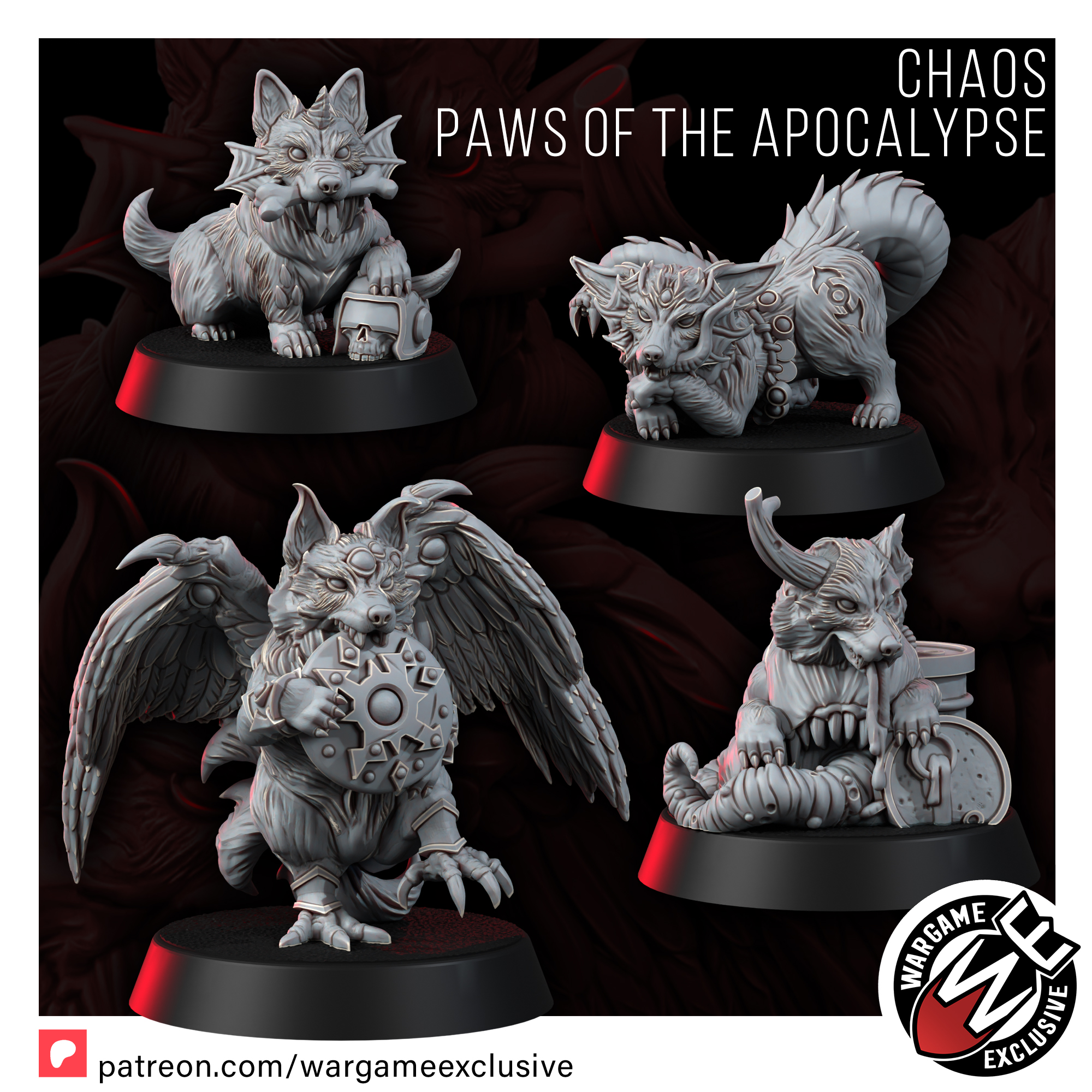 Whether you’re corrupting your battlefield or just need a grimdark cuddle, the Paws of the Apocalypse are ready to sniff, bite, and bless your enemies with ruin.
