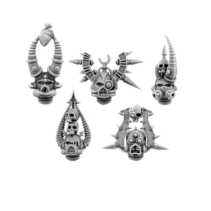 Five heads for Chaos Space Warriors miniatures in heroic scale