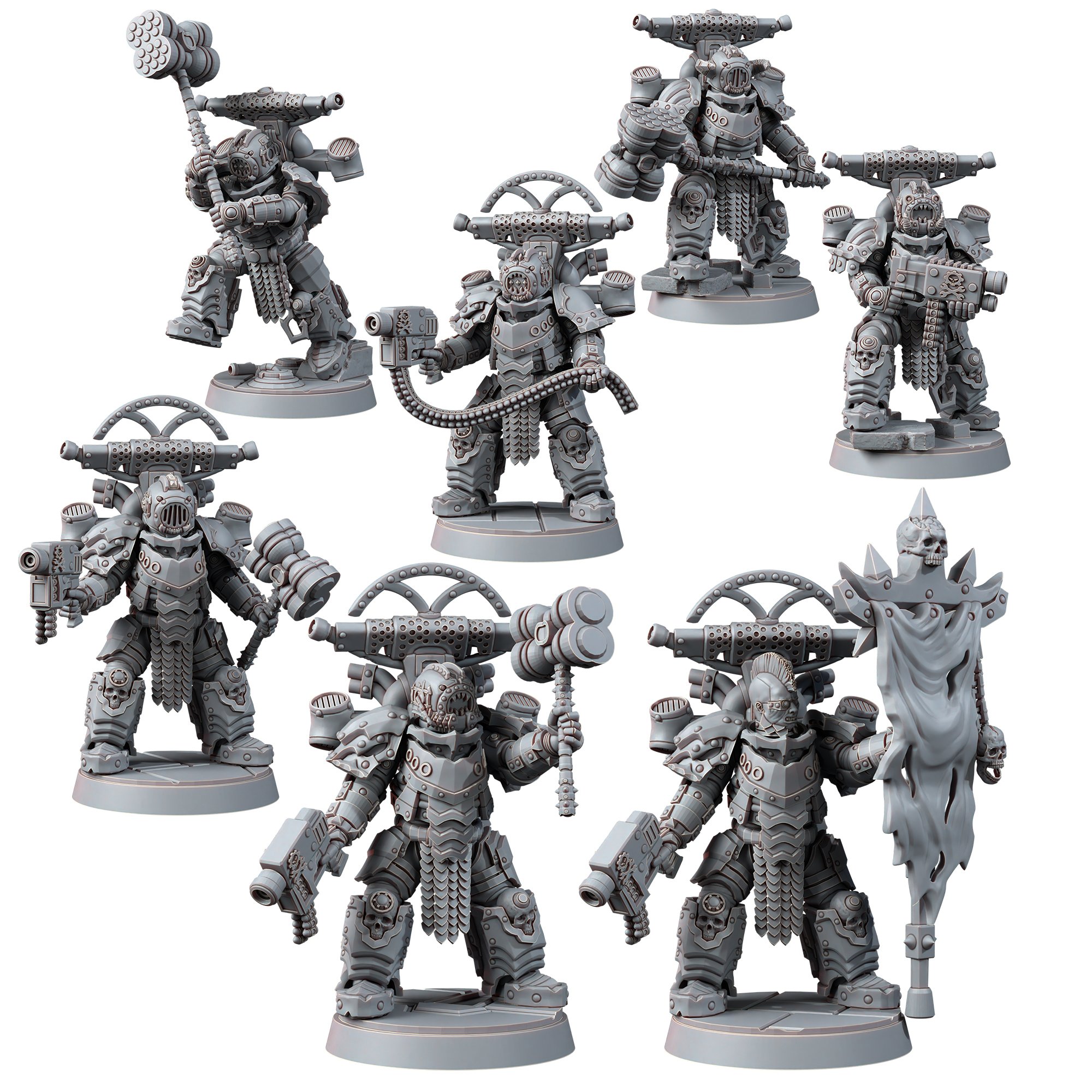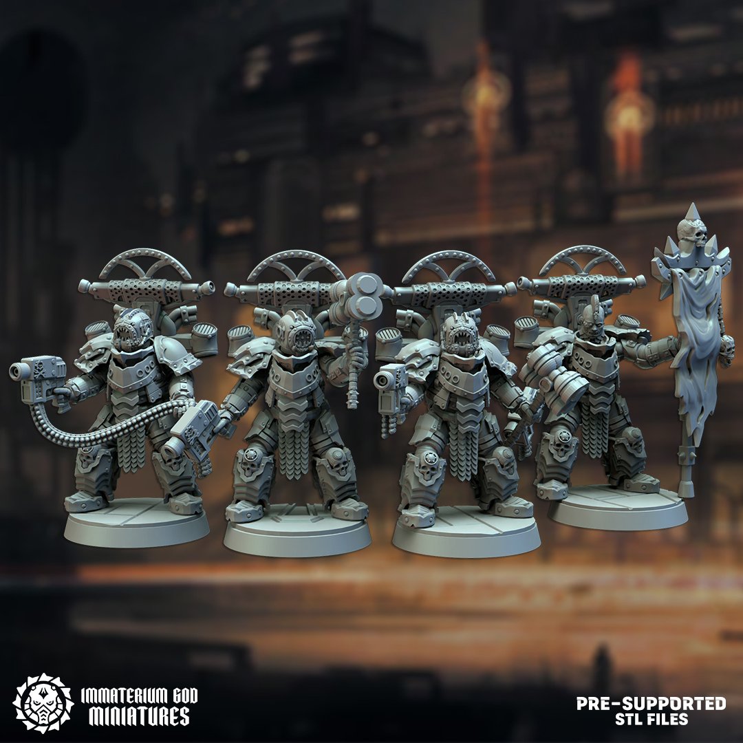 Among all the armies of the Immaterium is the longest-lived and most resilient of all, the Heirs of the Dark Foundry. Their obsession with defense and protection of their bodies has made them almost invincible ultra armored soldiers. You can only pierce their armor with the most penetrating of missiles, as if they were armored tanks. The dark foundry allows them to create new technology and armor through classic methods and alchemy. The new weaponry and armor is made of a conglomerate of very resistant materials imbued with the power of the enemies blood and soul, which provides greater resistance to spells and incantations. The Heirs of the Dark foundry army never stops and always expands slowly but steadily over the millennia…