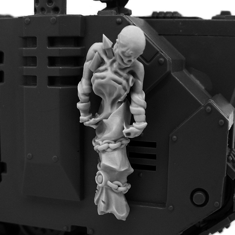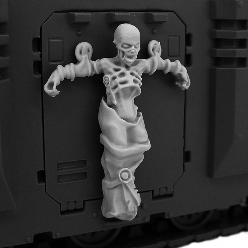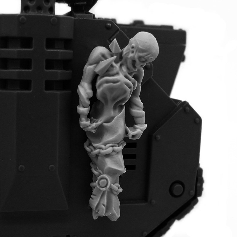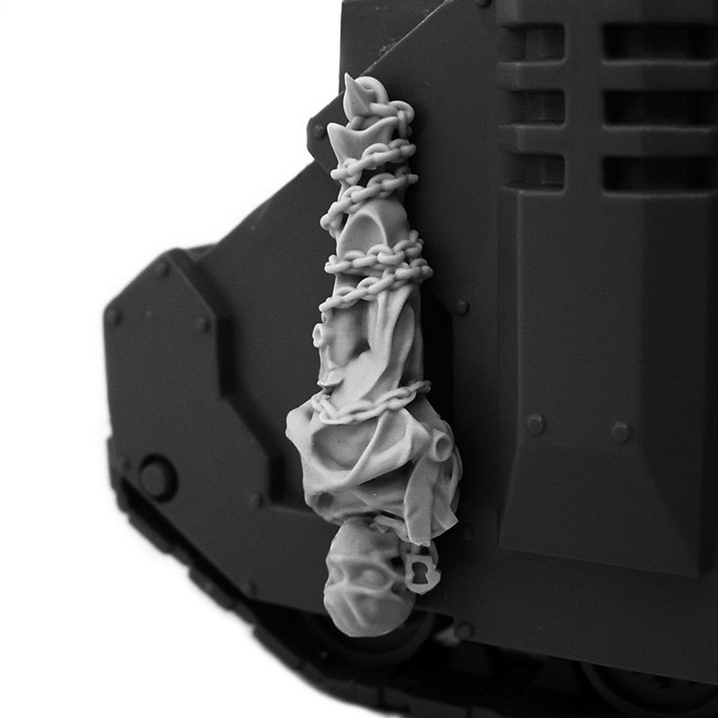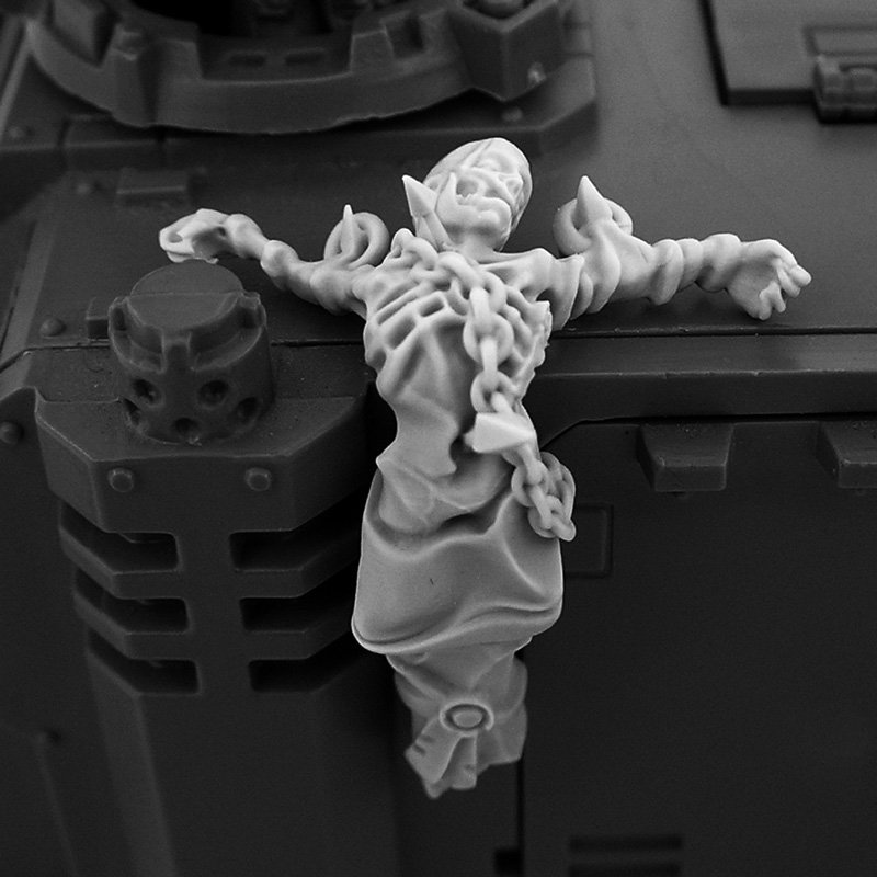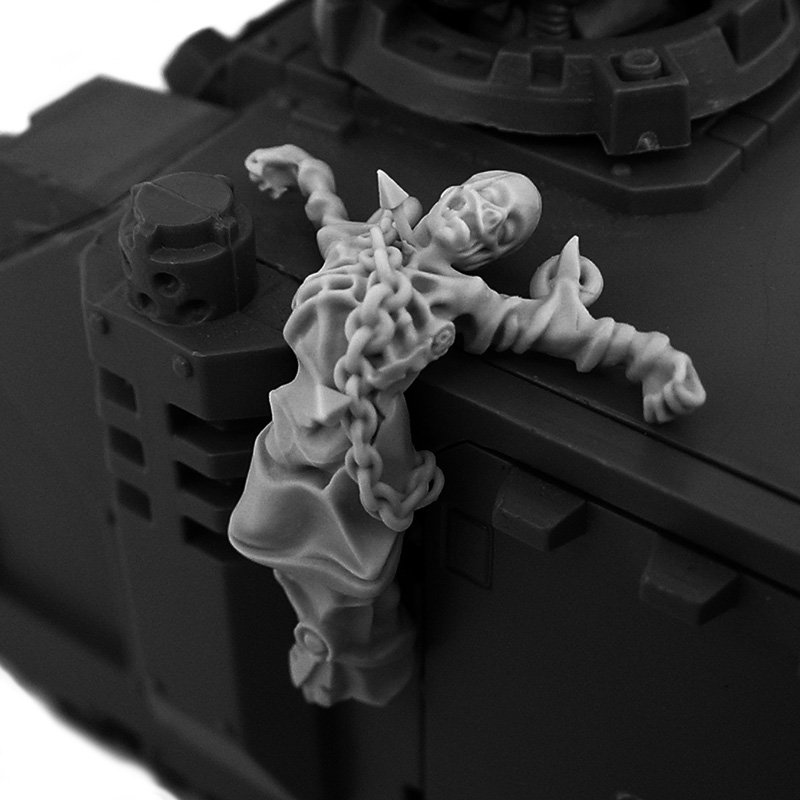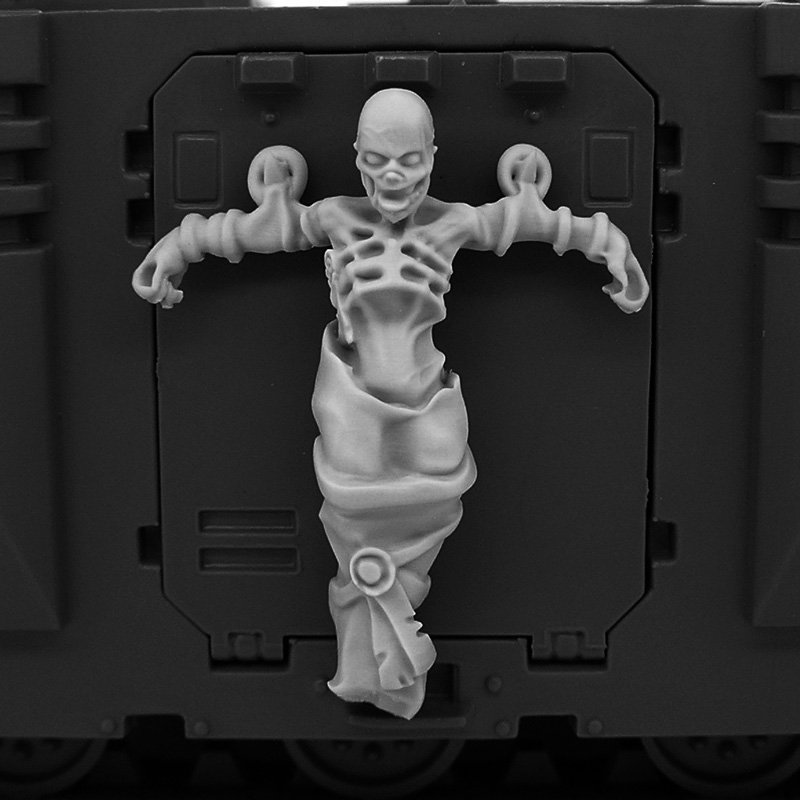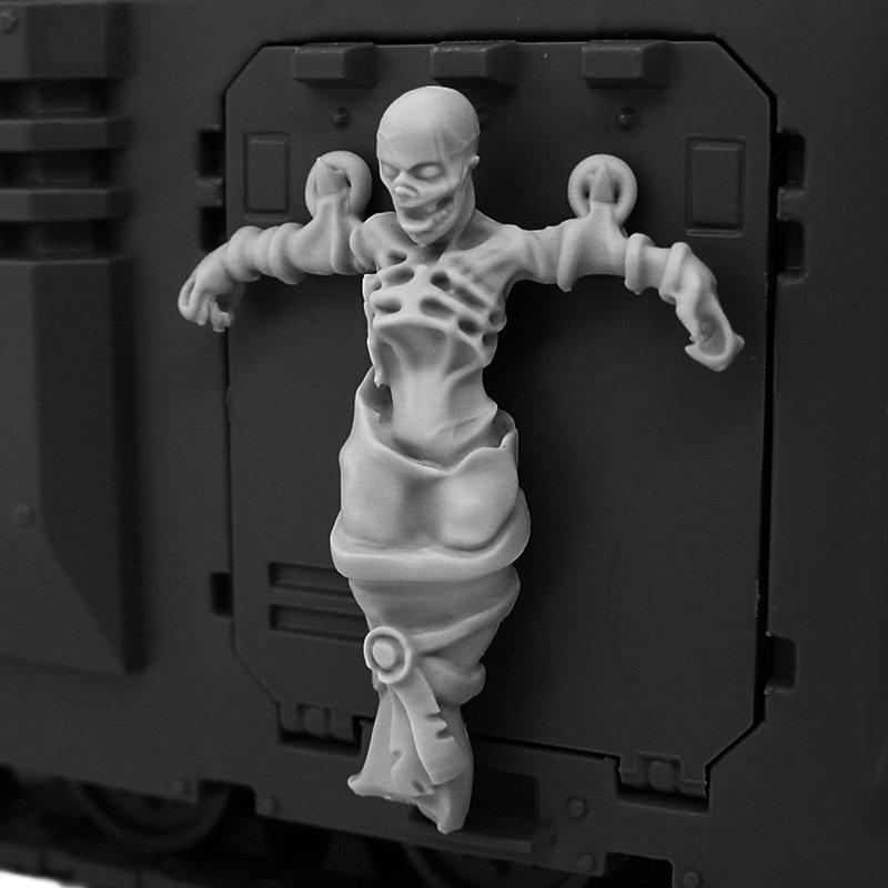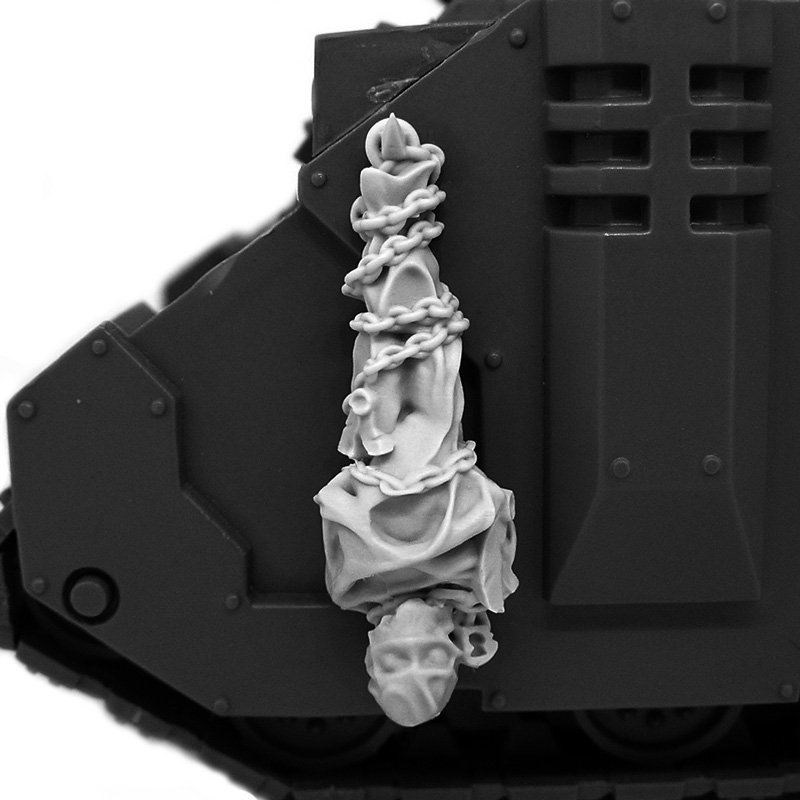 These shrouded bodies symbolize the brothers-in-arms who wished to remain on the battlefield even after death. The warriors of the Emperor would chain them to the armor of tanks and even Titans as a sign of respect and remembrance.