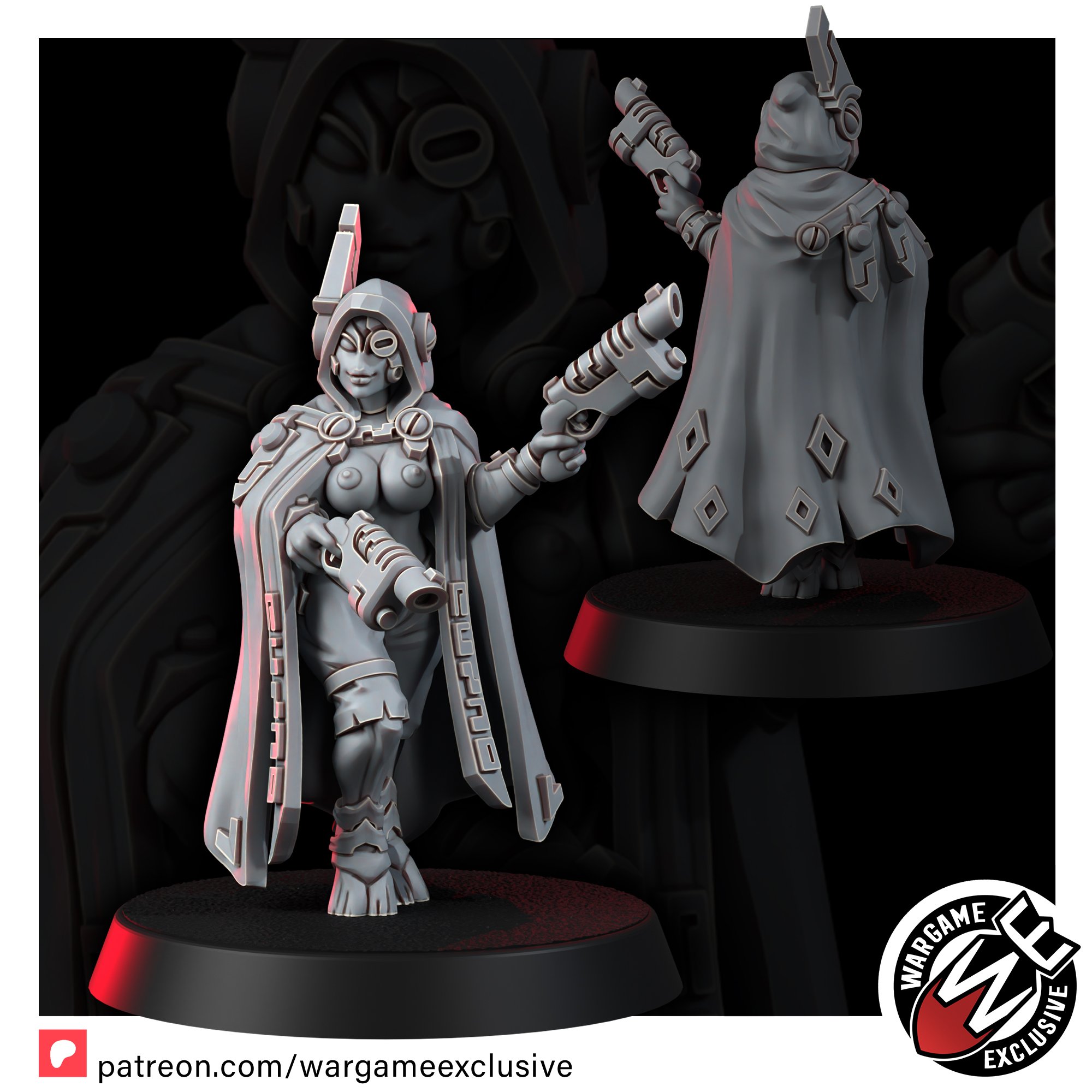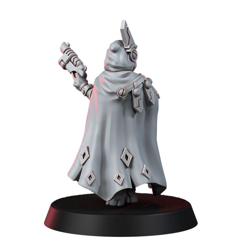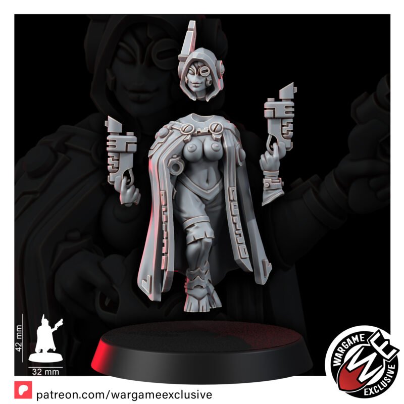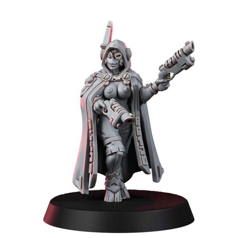 Now, Ro Bin-Ho has reinvented herself as an independent bounty huntress, operating on the lawless fringes of the galaxy. She works for the highest bidder, including the Greater Good when their interests align, but never without sticking to her own ironclad code of honor. Draped in a rune-etched cloak that hints at her past and wielding her custom plasma caster, Ro is a figure both feared and admired. Her reputation is legendary-a sharpshooter with a sharp wit to match, roaming the galaxy in pursuit of justice and profit.