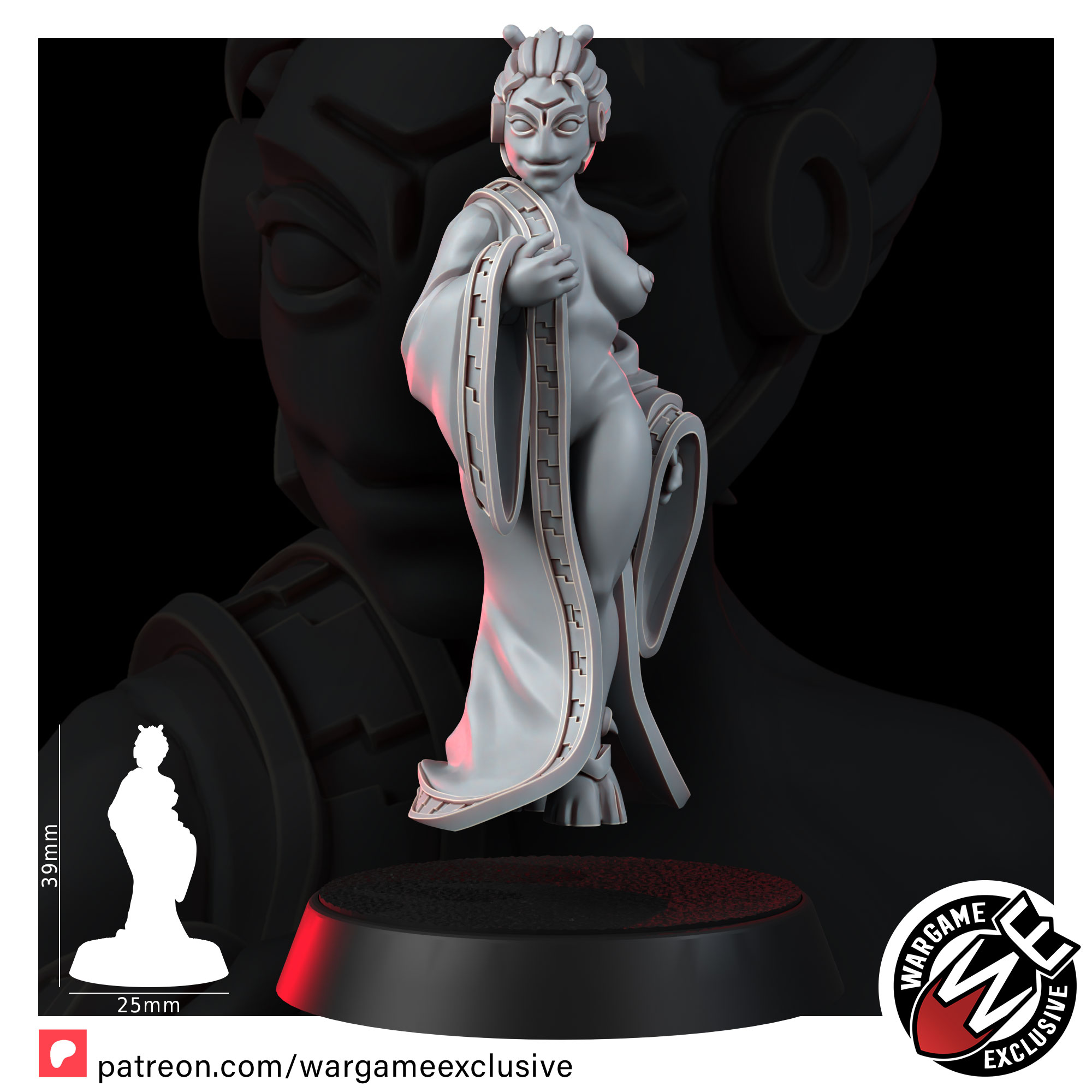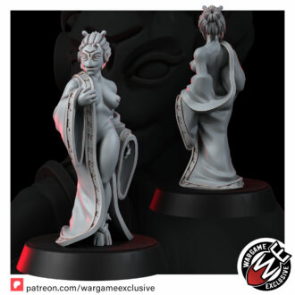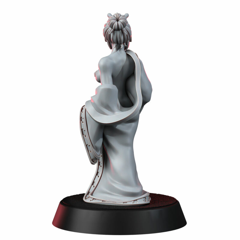 The sculpt is intentionally open-ended, designed to slip into whatever story you need. On the tabletop she can become the VIP in a rescue scenario, a mysterious contact in a back-alley meeting, a civilian objective marker in your wargames or the central figure in a narrative diorama: a balcony over a neon-washed street, a quiet onsen chamber, a pleasure district doorway or a private suite in a Harmony Tower. Painters can really lean into skin tones, subtle fabrics and moody lighting, turning that simple silk robe into a showcase of texture and colour.