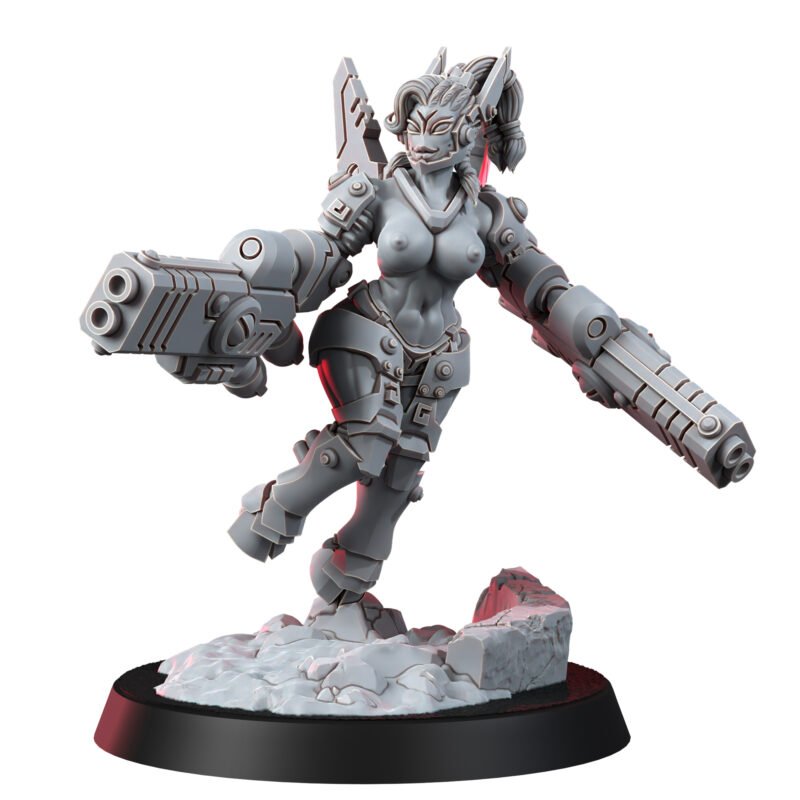 Jump Pack: Enables her to leap and swoop across the battleground, reaching vantage points and striking with precision.