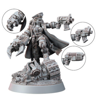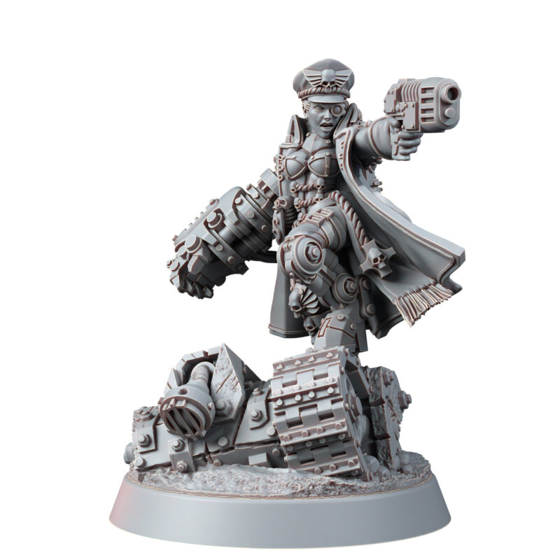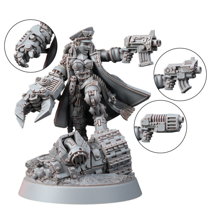 female comissar can be made as yarrick or since it is included with plasma, bolt pistols and a power fist build one of your own.