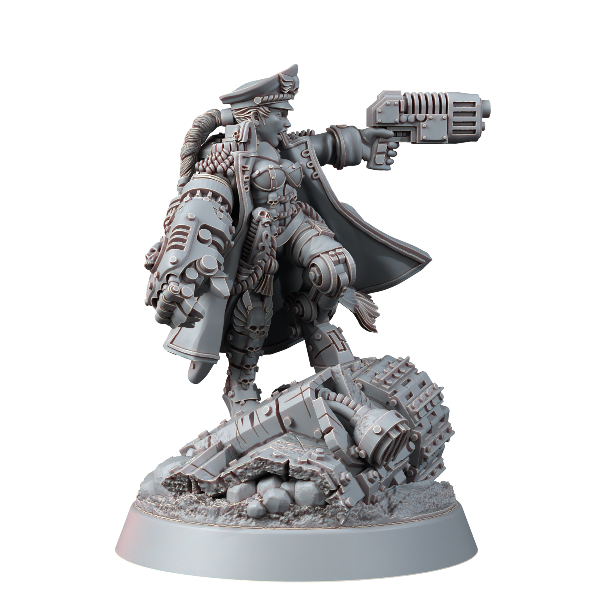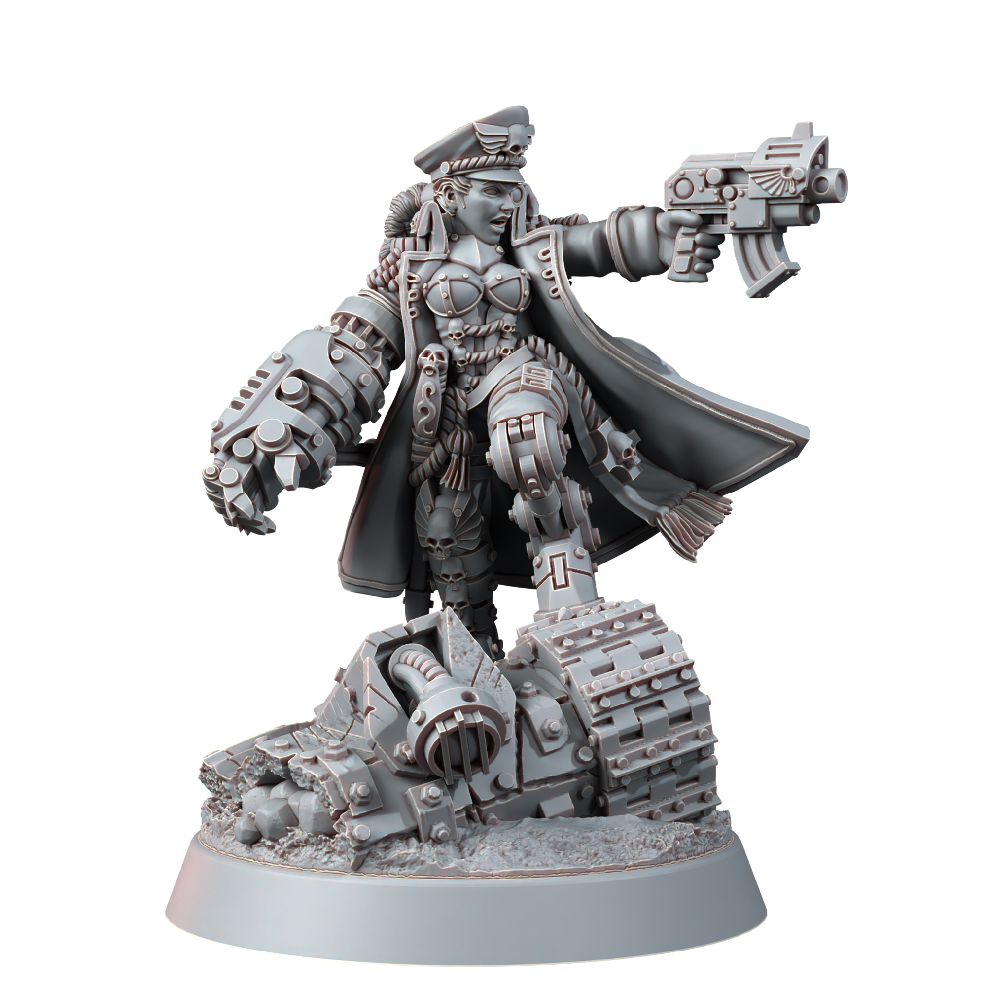 This model is just great! Not only is it a wonderful looking model, but the extra bits allow you to make a replacement for Yarrick or a custom Company Commander. The extra leftover bits give a little customization to other units with some minor conversion work too. Few Imperial Guard units really stand out on the battlefield, so this is doubly great for an infantry centerpiece.