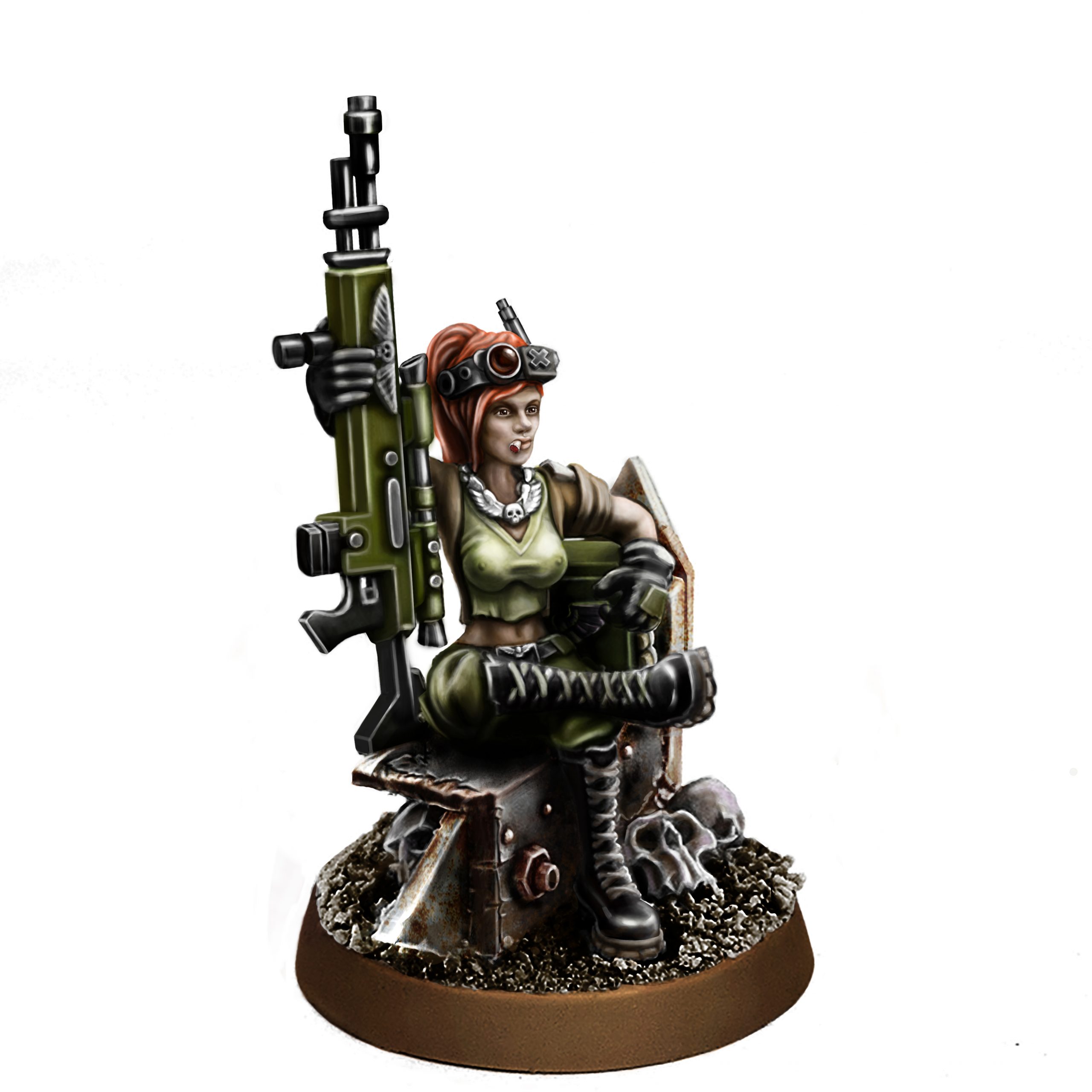 A wonderful and gorgeous replacement for the Vindicare Assasin or any Sniper for Imperial Forces. And the Ork skull is too cute.