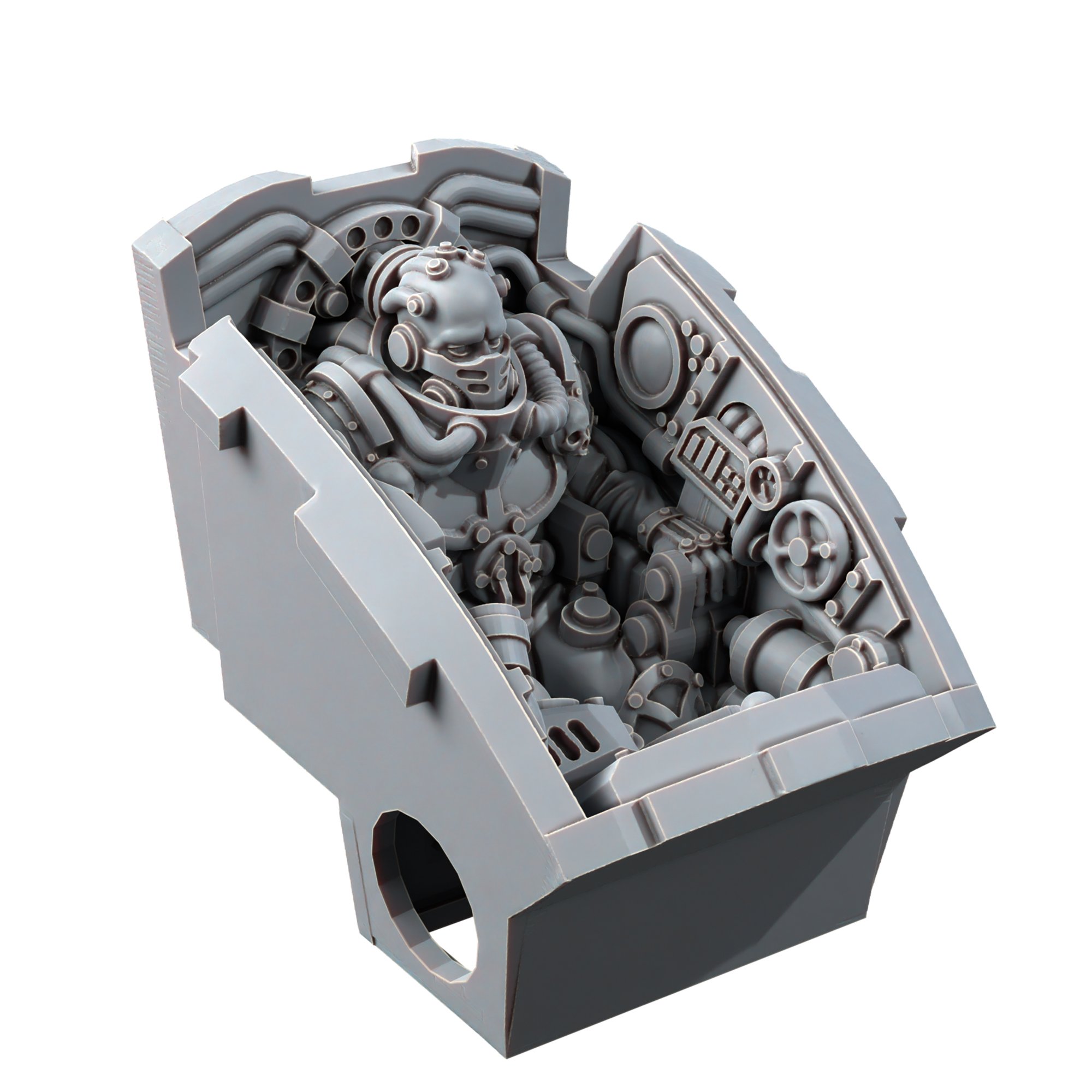 This kit allows you to easily bring your Titan to life with a fully immersive cockpit that matches the army type you play. It features a detailed pilot seated within and includes a highly detailed hatch designed to look best in the open position; for a closed configuration, use the hatch from the original kit.