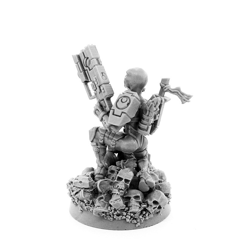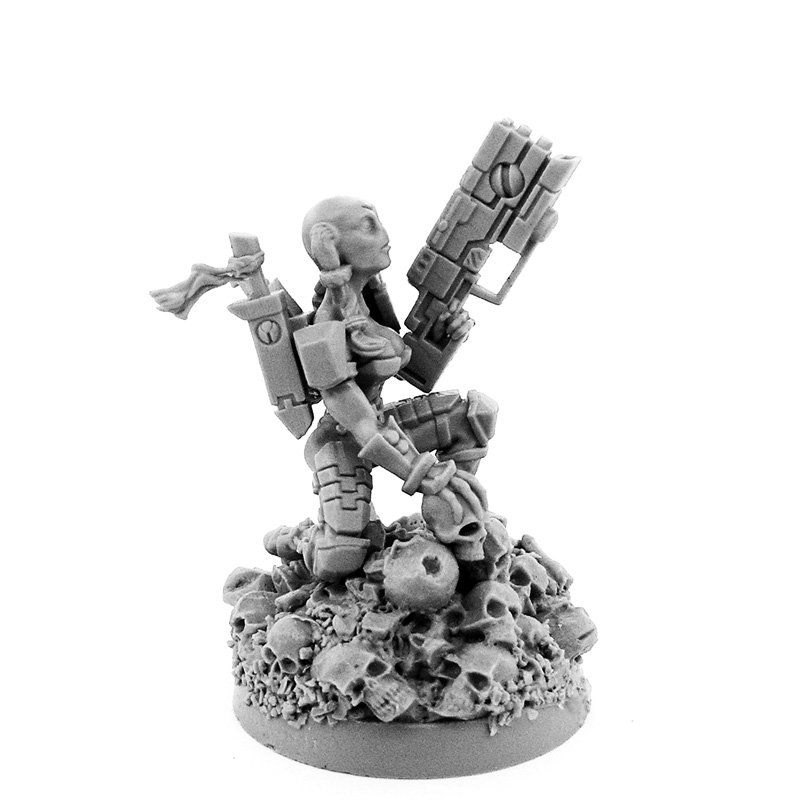 I ordered this to use as my Darkstriker HQ choice, to add a little flair to the field. This was my first purchase from this site, and I can say will not be my last. The quality is fantastic and worth the wait. It glues together very easily with super glue, and the detail is as good as the pictures make it out to be. In case you wonder on how this model sizes up, she is only a tad smaller than a fire warrior. Chalk it up to male vs female framework and it works, otherwise not really noticeable. The detail on her gun is amazing and looks better than the GW ones that come with the Tau troops. You guys did a great job and have earned a new loyal customer, please keep up the great work!!!