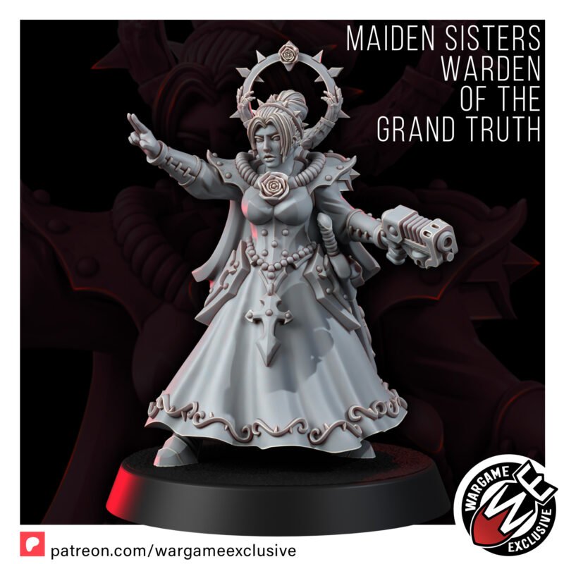 The Warden of the Grand Truth has arrived-a battlefield sentinel of the Maiden Sisters, forged in fire and bound by unbreakable purpose. Clad in sanctified armor and wielding authority like a weapon, she stands not behind her sisters, but among them, leading with unwavering clarity and divine wrath.