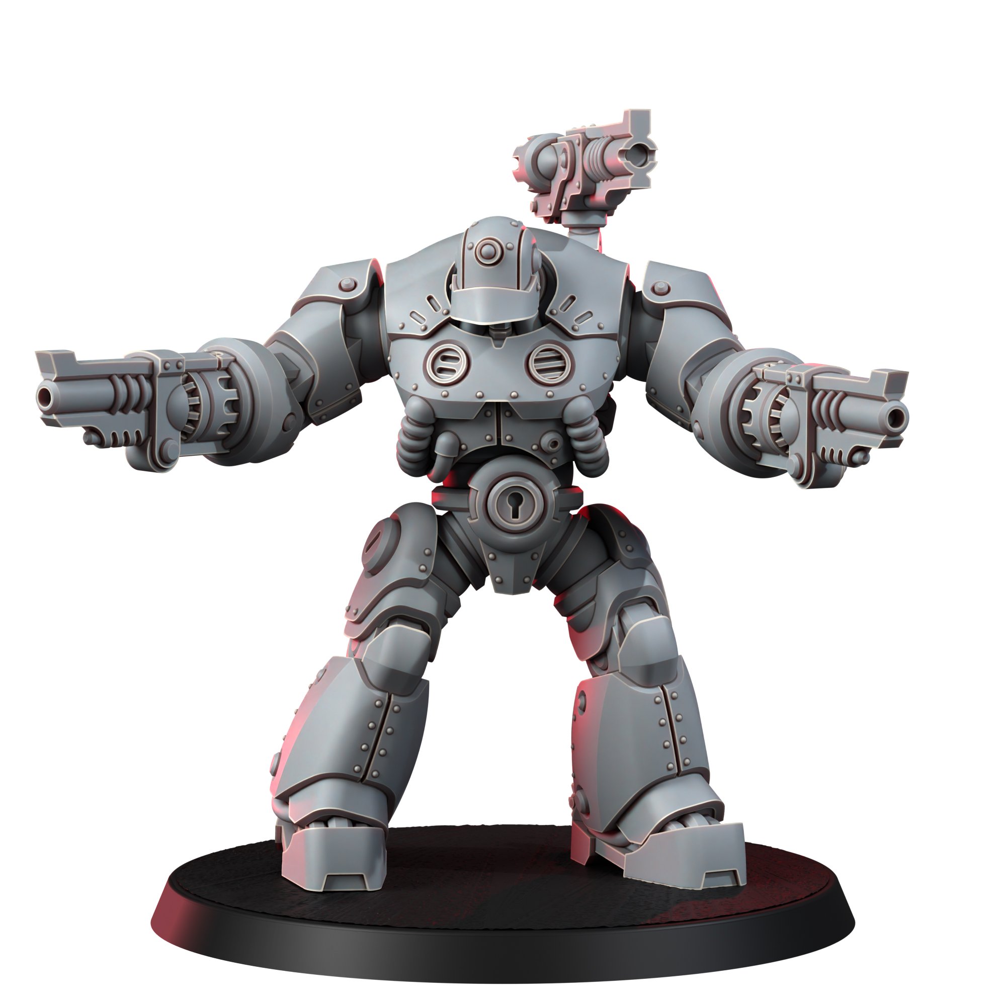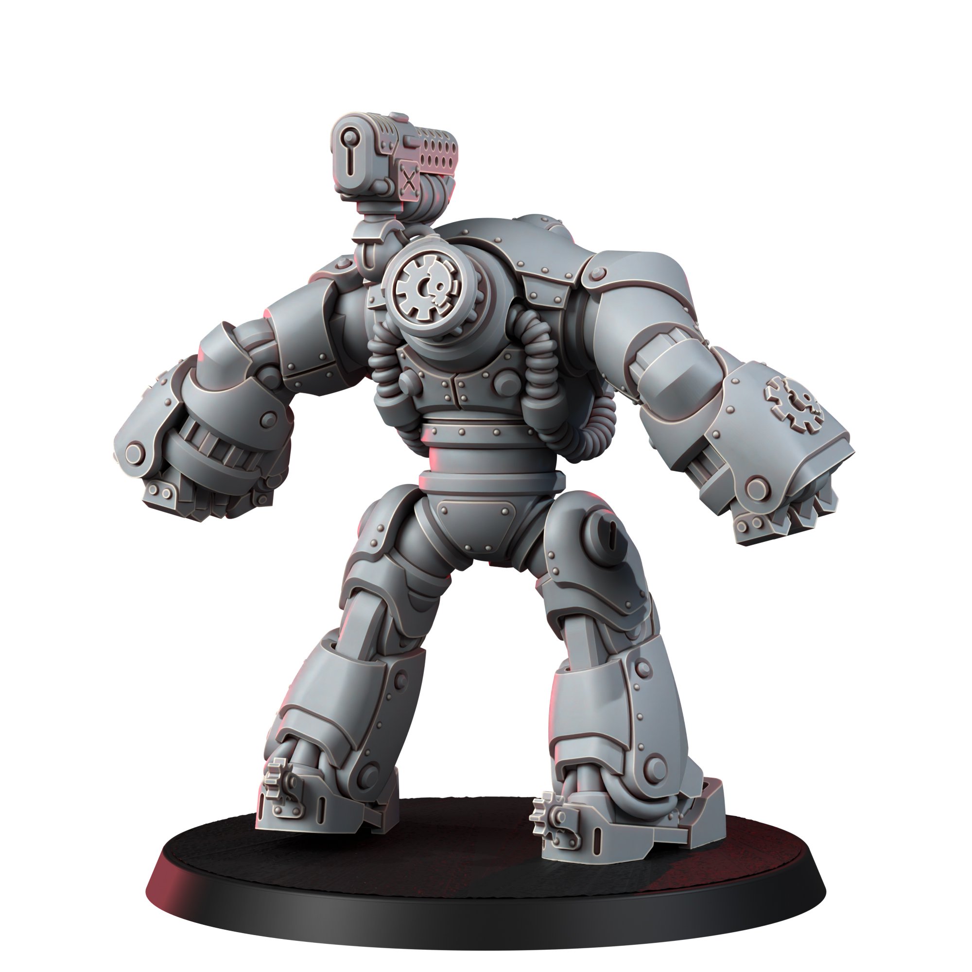 The forge roars, the circuits sing, and the sacred charge of the Mechanic Adepts marches forth-behold, the Liberators! Each one a testament to the divine precision of the Omnissiah, a vessel of righteous purpose, a harbinger of order in the chaotic churn of the flesh-bound. They are the hands that shatter disobedience, the servos that uphold the purity of function. The Liberators do not question, do not falter-for their will is not their own. They stride forth clad in sacred steel, their forms wrapped in industrial vestments, anointed in oil and electricity, blessed with unwavering obedience to the grand design.