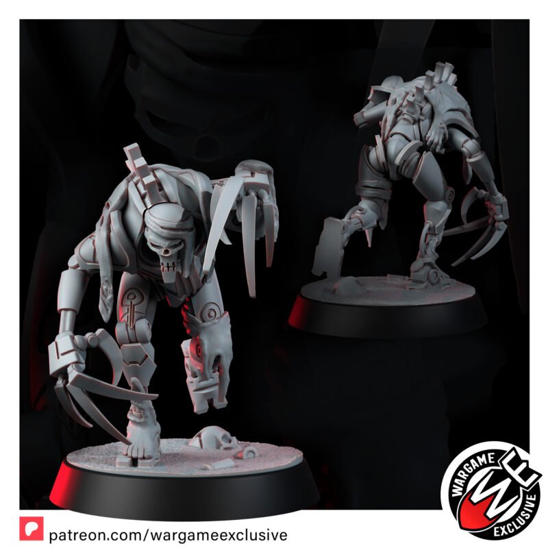These poor bastards didn’t just lose their humanity – they watched it rot from the inside. Trapped in maddening stasis, tortured by visions, they snapped. Now they scavenge more than just scrap from the battlefield. They wear the dead. Skin, guts, bone – whatever holds together long enough to drape across their twisted frames. Their claws carve, but not always to kill – sometimes just to collect.