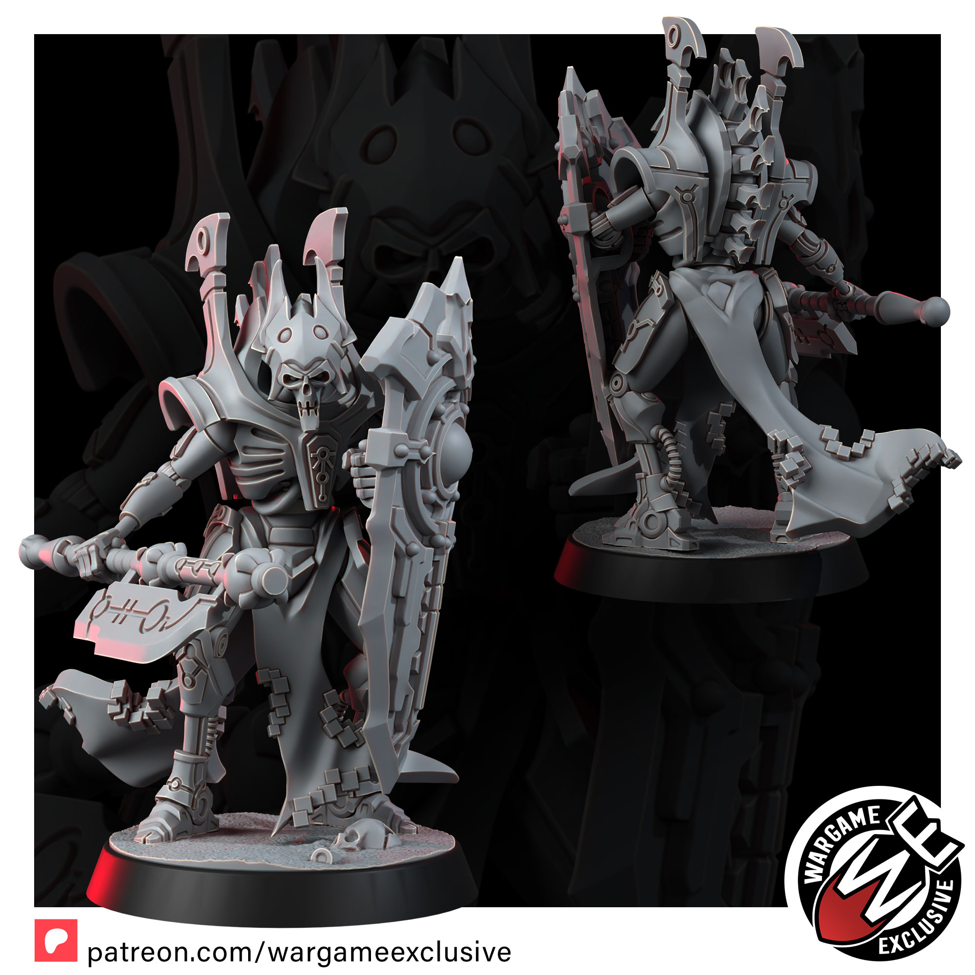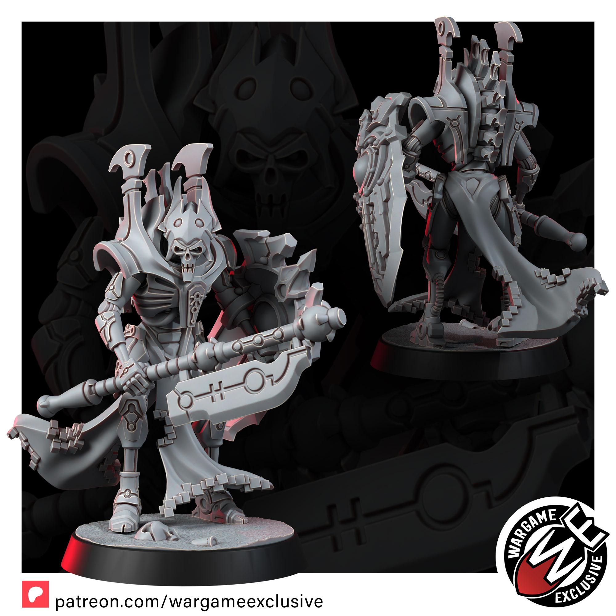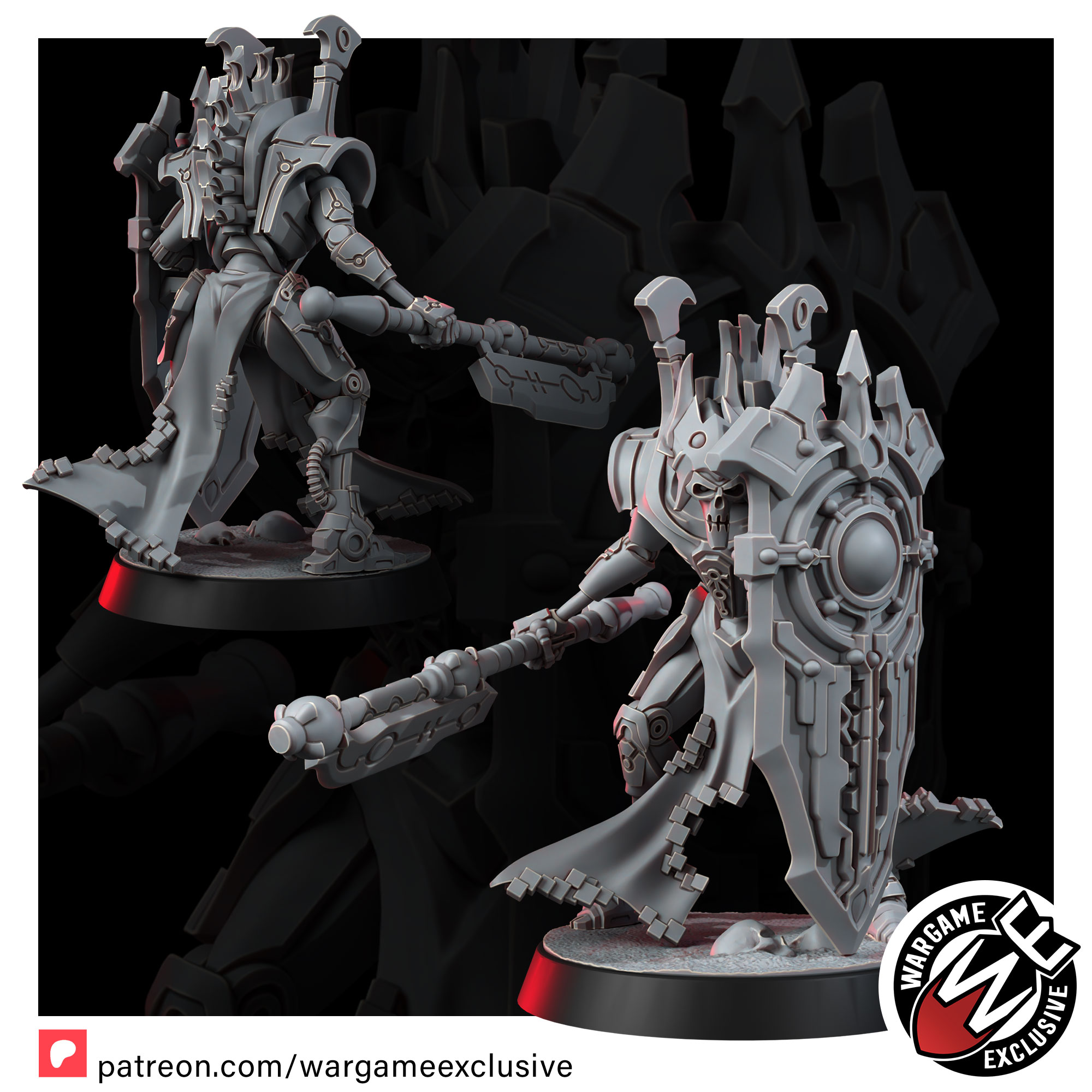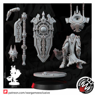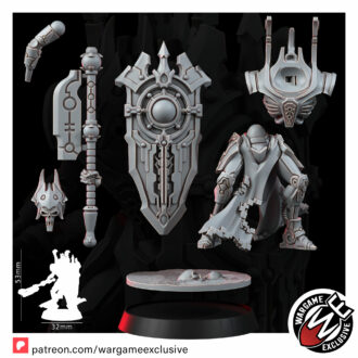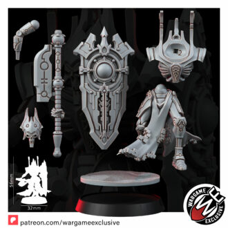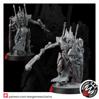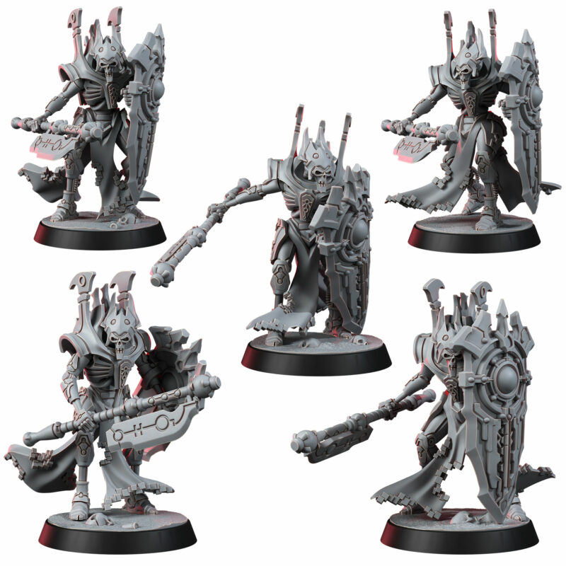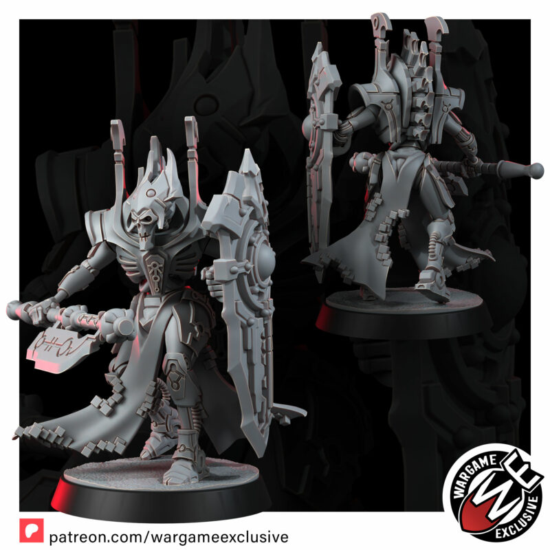 The Lich Wardens are the final barrier between their masters and oblivion – towering sentinels forged to endure anything the galaxy can inflict. Their bodies are crafted from the most refined necromechanical alloys, rivaling those of the ruling caste they protect. Where lesser constructs shatter, the Wardens remain unmoved, shields locked, wills erased.