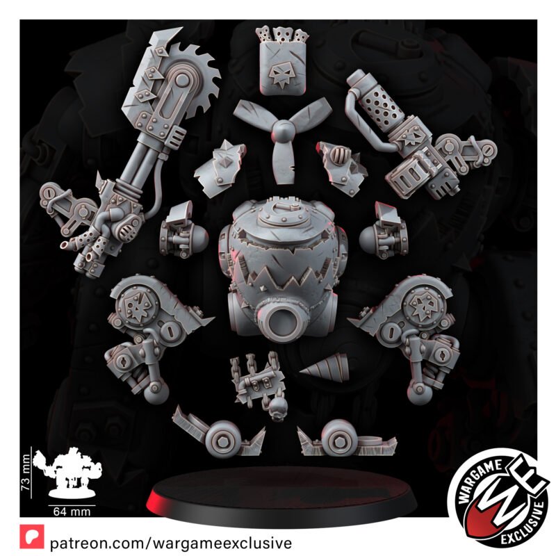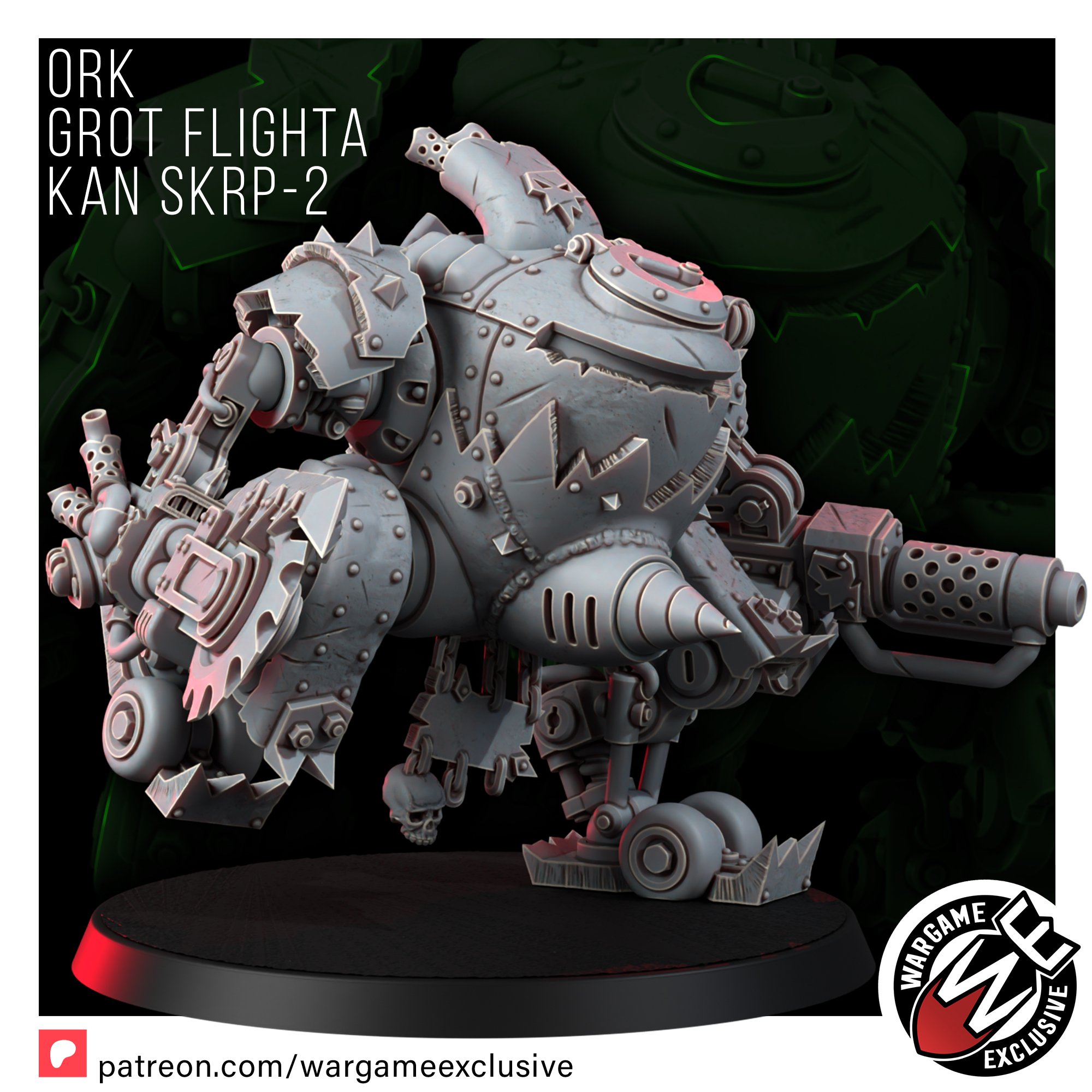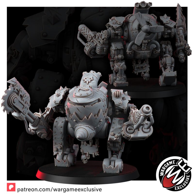 The SKRP-2 is the first in a series of totally ‘safe’ and ‘reliable’ ork mechs (terms subject to interpretation), each with a unique shape, size, and ability to almost soar.
