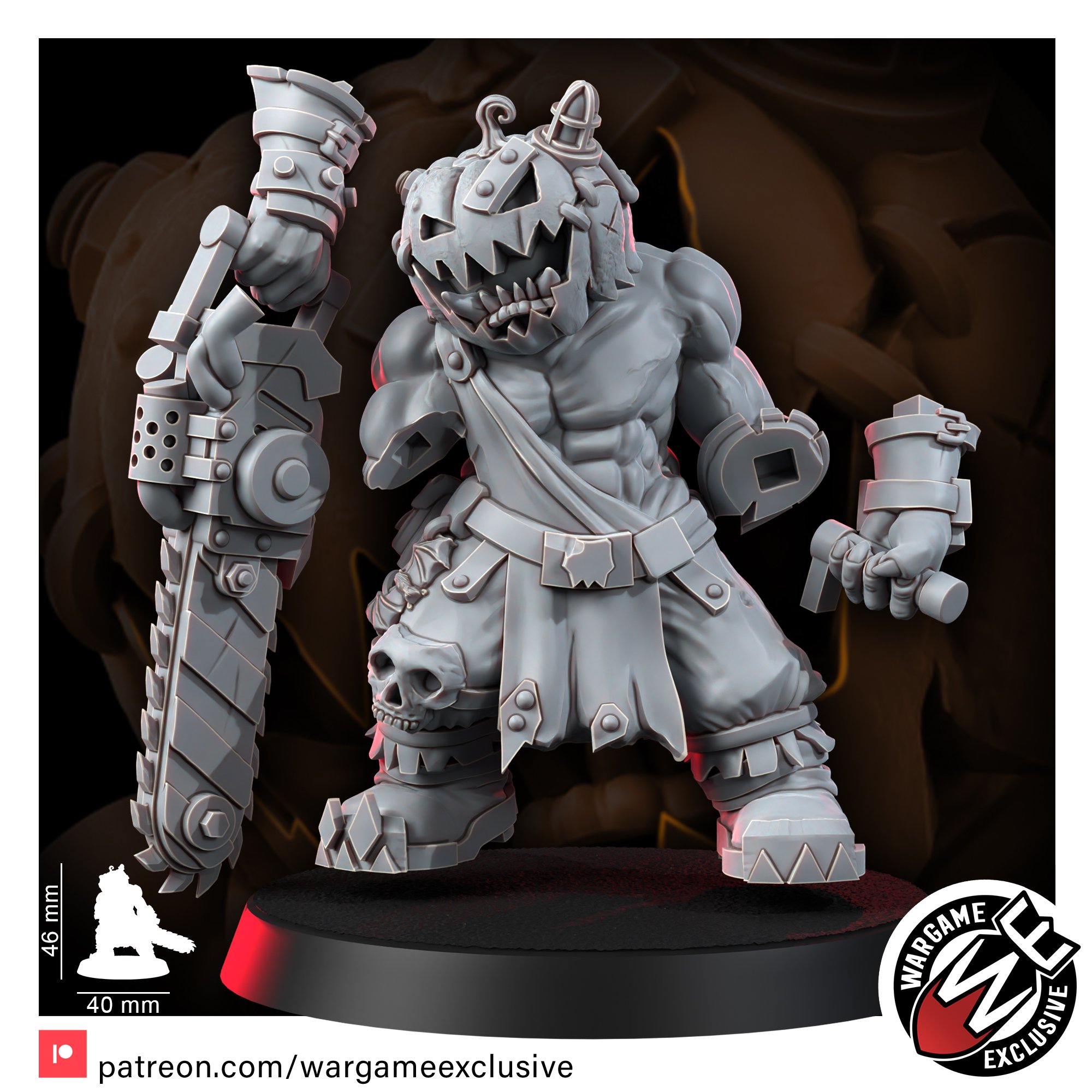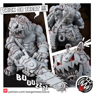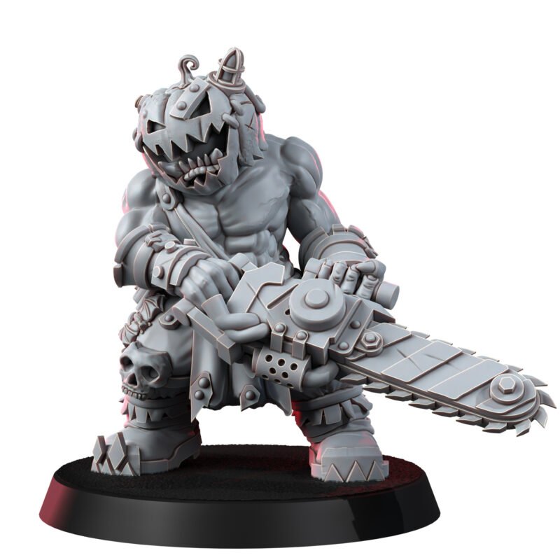 Donning a grimacing Jack O’Lantern helmet, this Ork is both a terror and a treat! But don’t be fooled by the pumpkin head; beneath it lurks the same old Orky cunning and thirst for carnage.