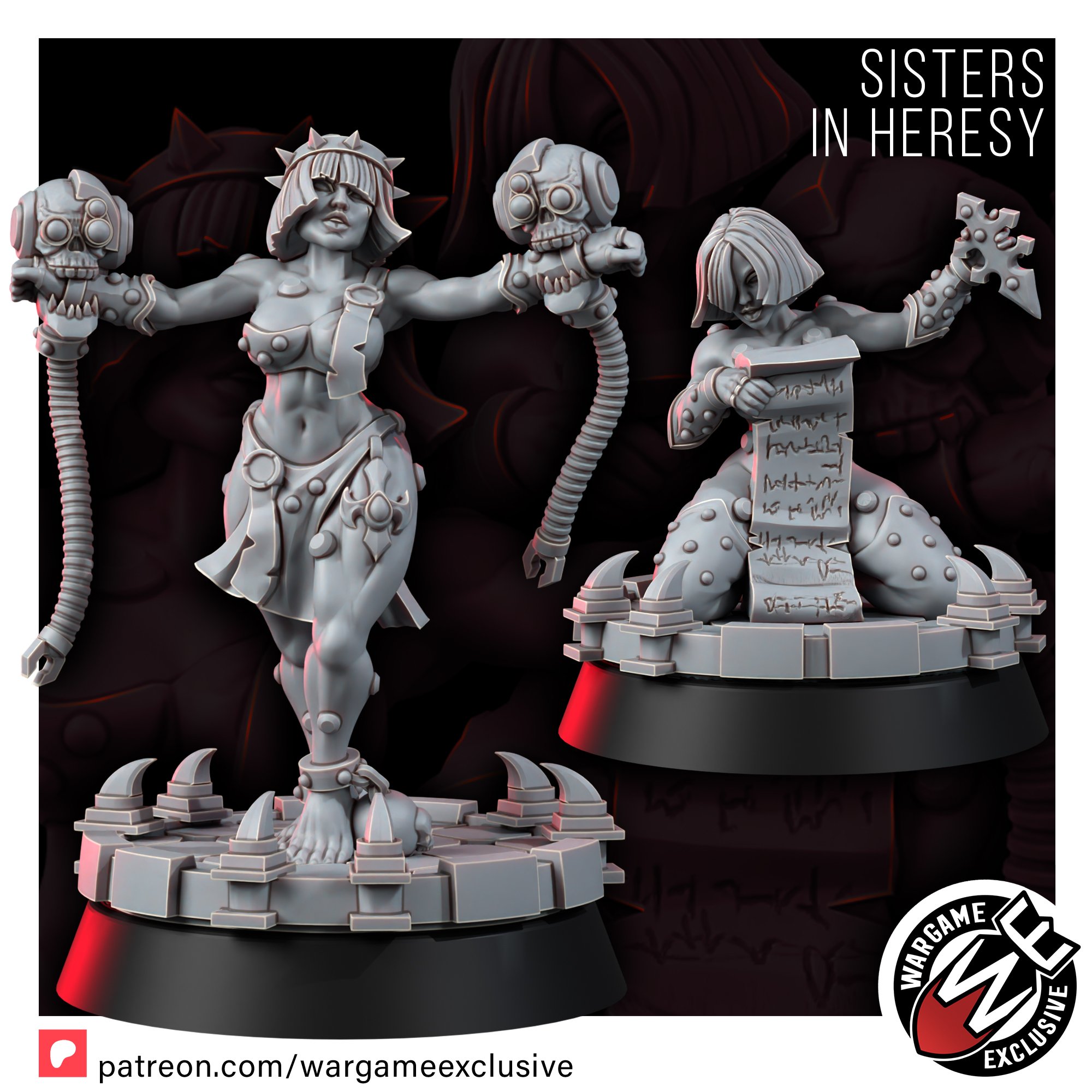 Introducing the SISTERS IN HERESY – two detailed miniatures that capture the tragic fall and fervent repentance of two once-pure sisters. They were lured by the seductive promises of the dark gods, and now, bound by chains both literal and spiritual, they seek redemption through penance.