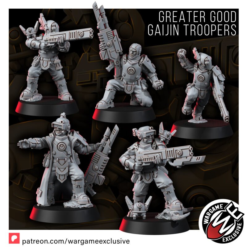 Meet the Gaijin Troopers, the perfect embodiment of what life under the Greater Good can offer. These elite warriors were once loyal to the false Empire, but they saw the truth – that the path to peace and prosperity lies not in servitude to one man’s delusions, but in joining a collective that values every life, every culture, every advancement. Now, they are the vanguard of a new era, armed with supreme technology and driven by a vision of a unified galaxy.