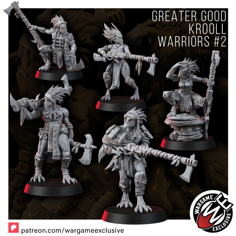 Celebrate the indomitable spirit of these extraordinary warriors by adding the Greater Good Krooll Warriors Model Set II to your collection. Let them stand as a testament to our collective strength and our unwavering commitment to the Greater Good!