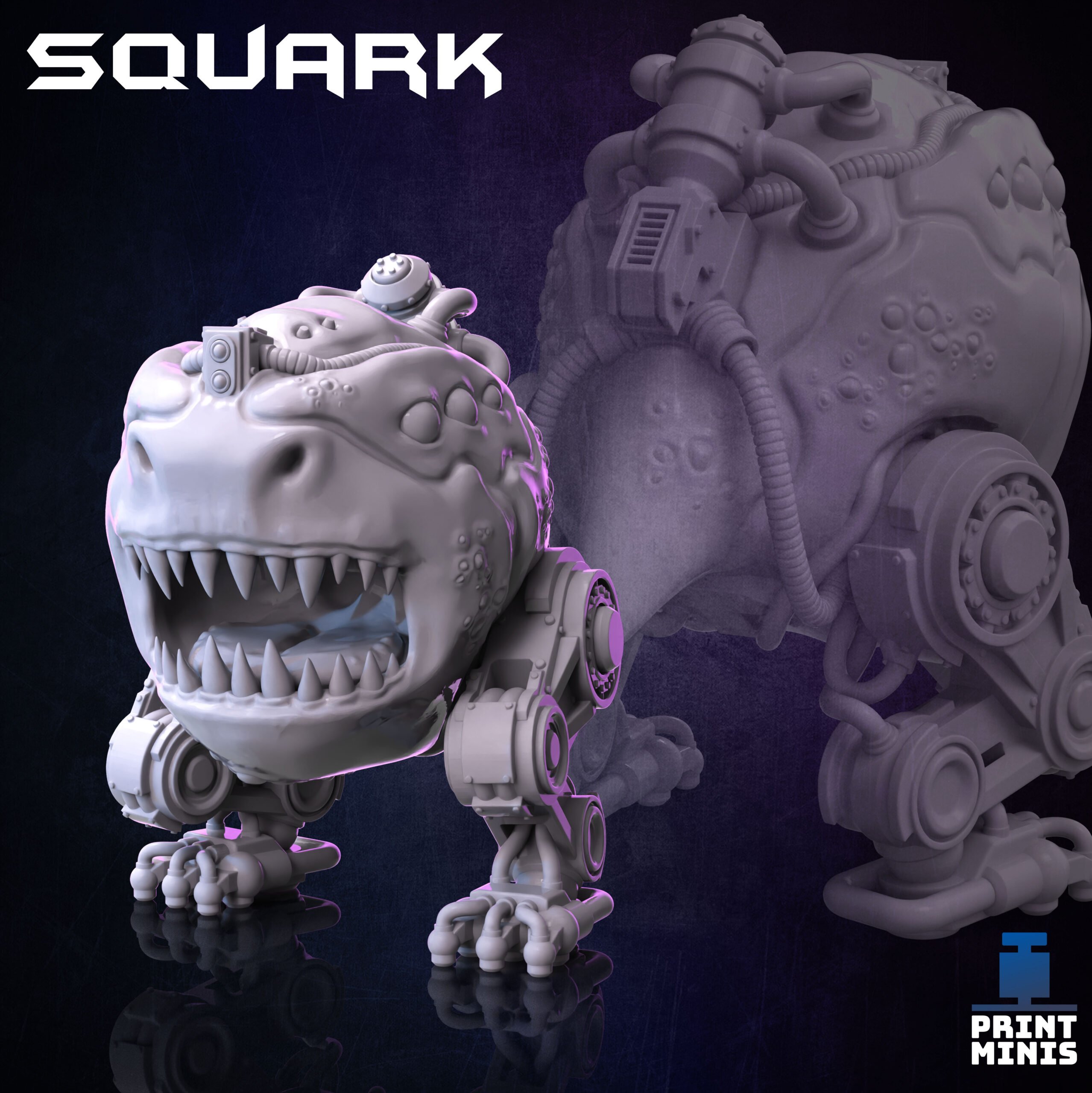 Squark – a cute and ugly alien sidekick for your characters! He’s robotically enhanced and perpetually grumpy, but will accept any food as a peace offering 😉 He has very sharp teeth and is not afraid to use them!