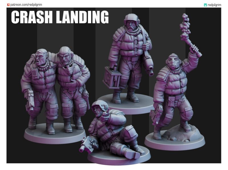 There are five pilots in the set: two wounded, a prone wounded, a pilot with a suitcase and a pilot with a balefire.