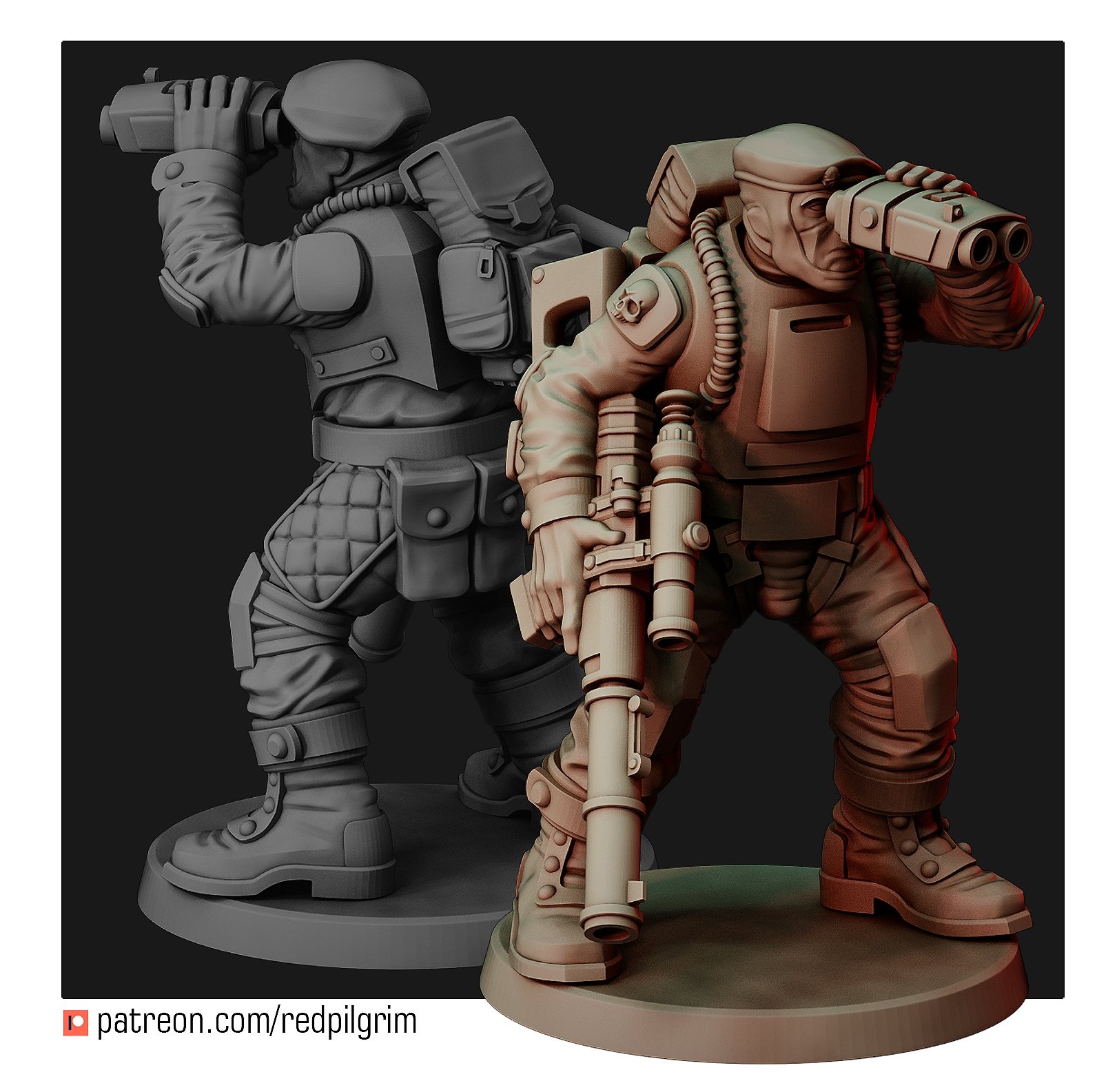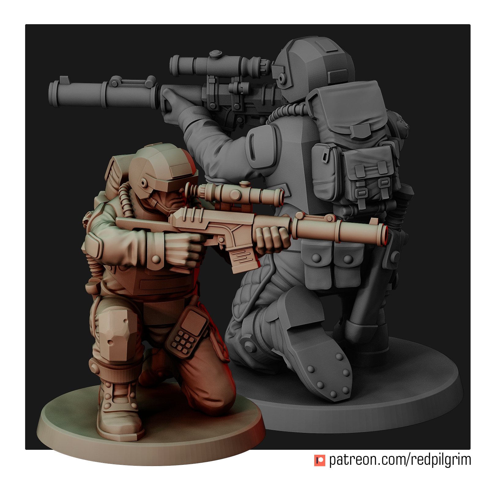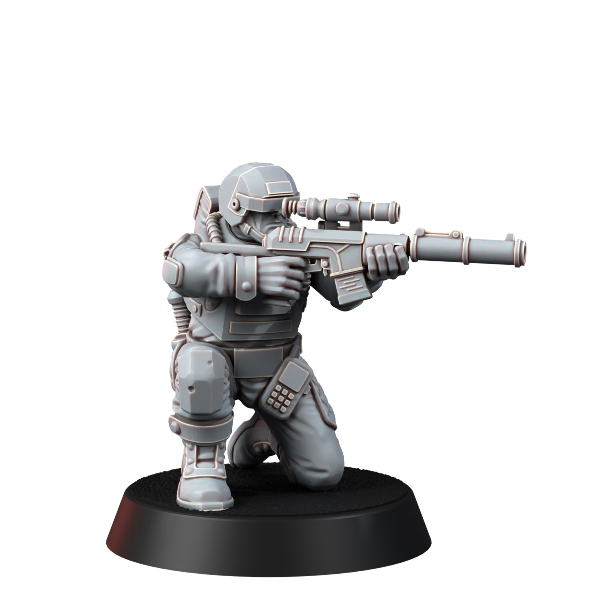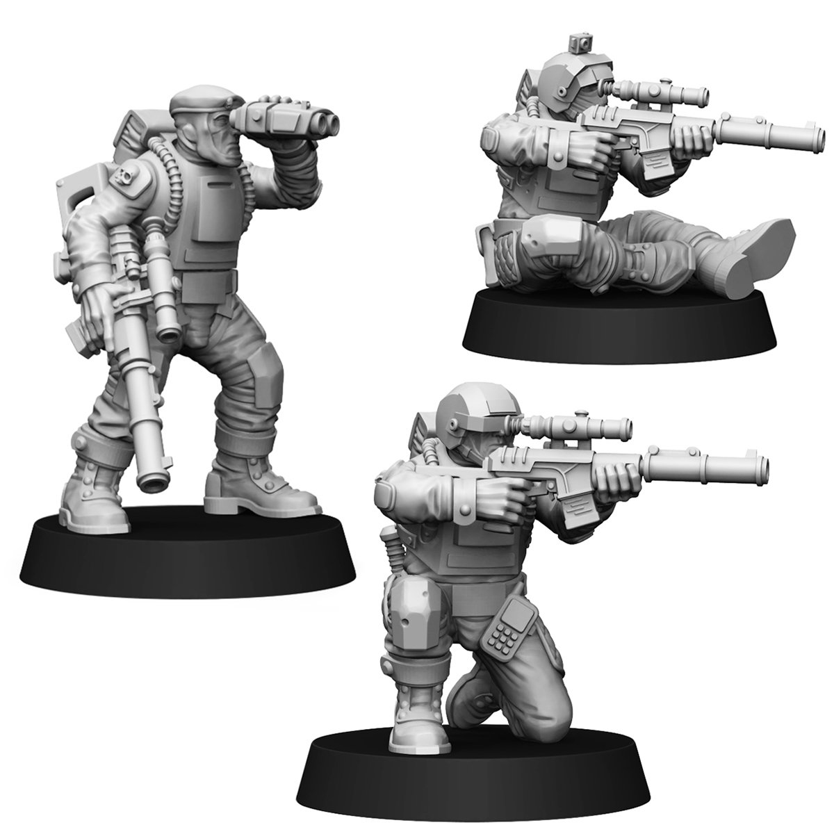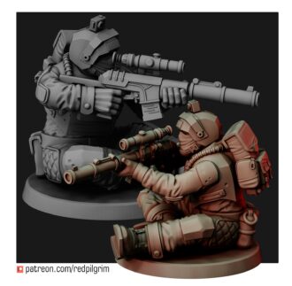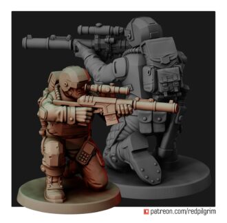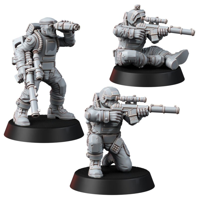 A team of snipers/marksmen that support paratroopers with high-precision rifle fire. The priority target for them is the commanders of enemy detachments and combat vehicles, heroes, crews of heavy guns. There are three fighters in the set, each is divided into the following parts: legs, torso, head, arms with weapons.