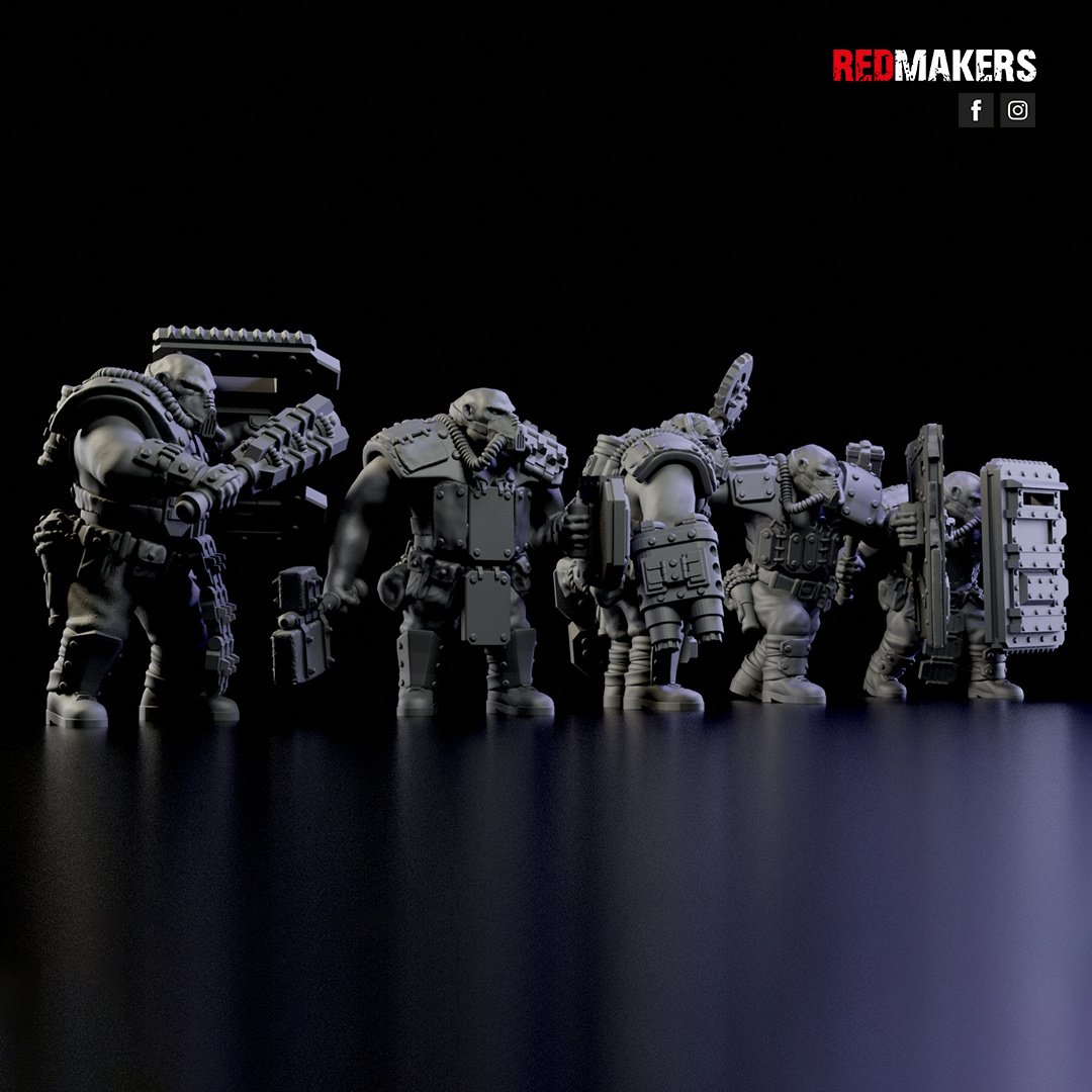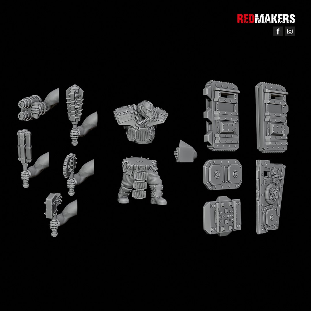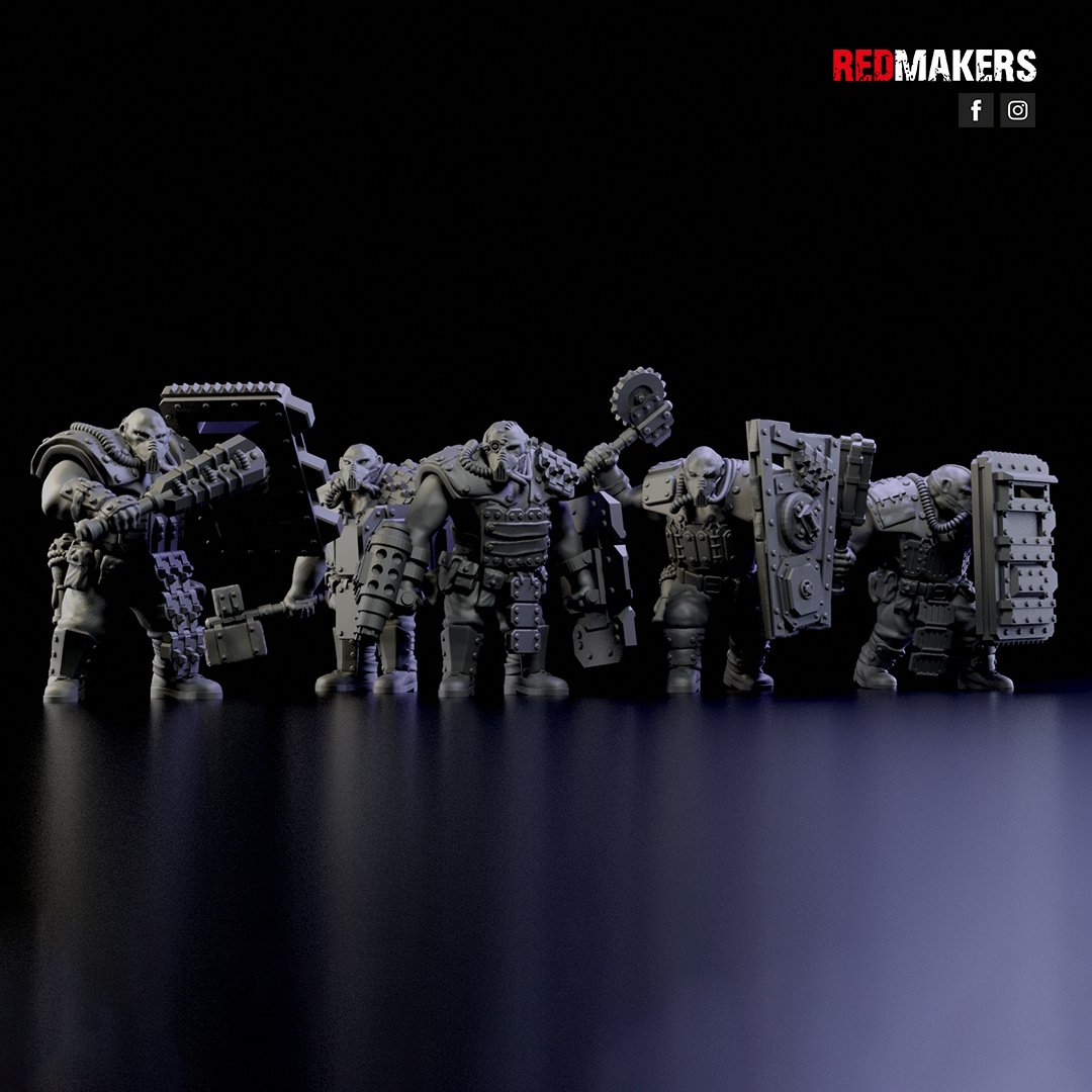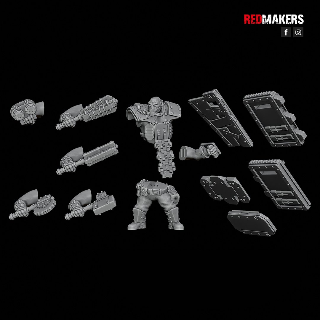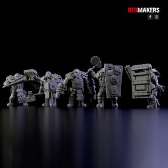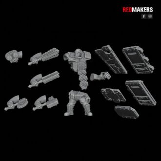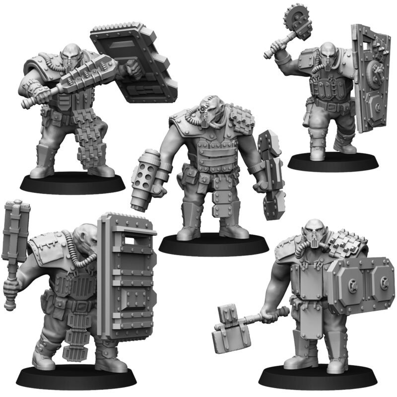 The squad consists of five units. Five types of shields and five types of weapons are applicable to each unit. Approximate height to the eyes – 46 mm (varies in different poses).