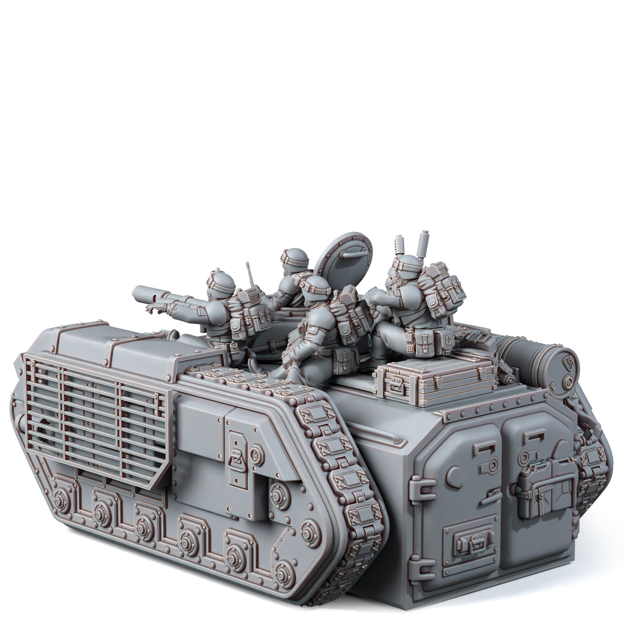 In addition, four infantrymen can be seated on top if there is no room for them inside of the IFV (or they are afraid to remain inside if the vehicle is hit or blown up). Each one consists of two parts. In theory, they should be placed on the armor approximately as in the picture, but feel free to use your creativity.