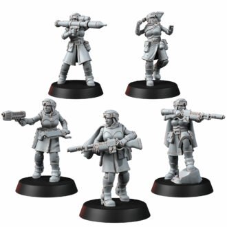 There are five models in the set, one sergeant, one with a rocket launcher, the other three with lasguns.