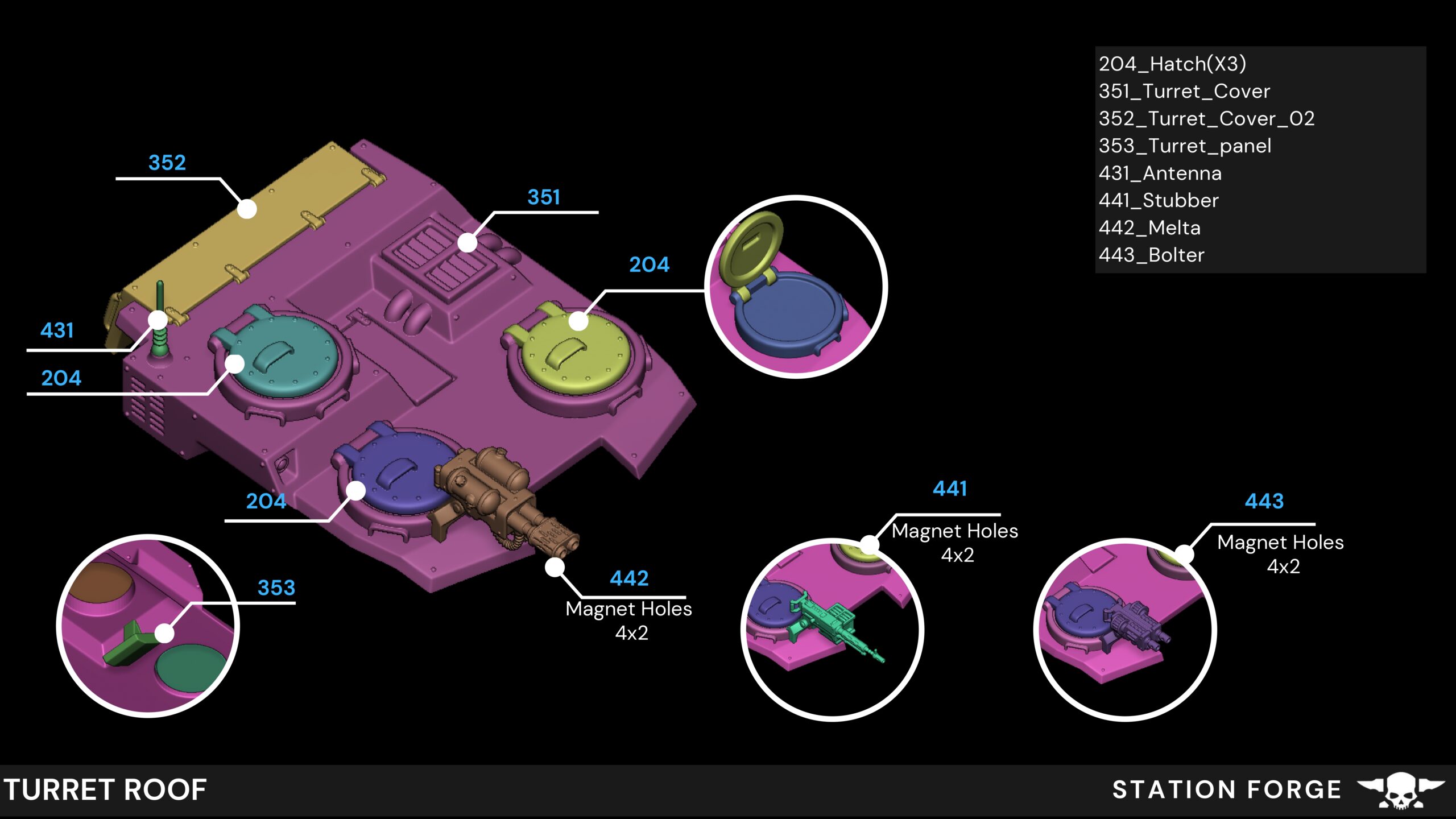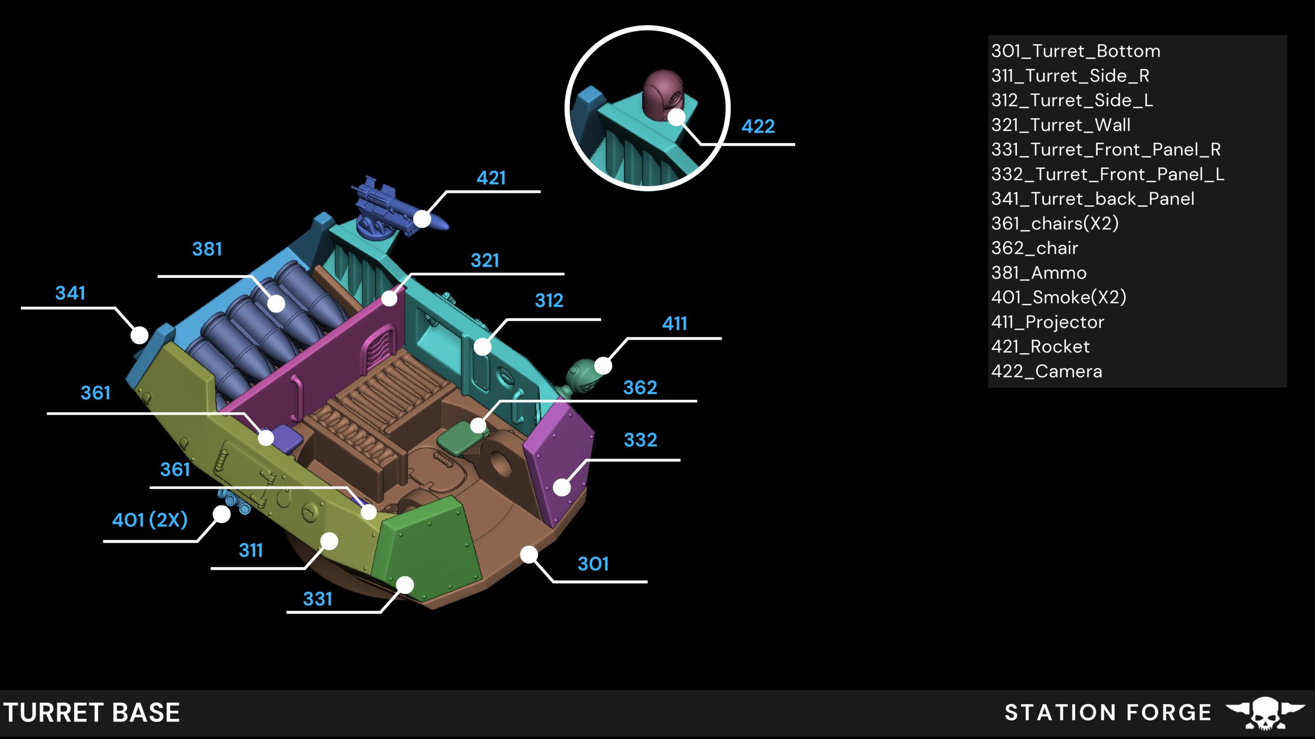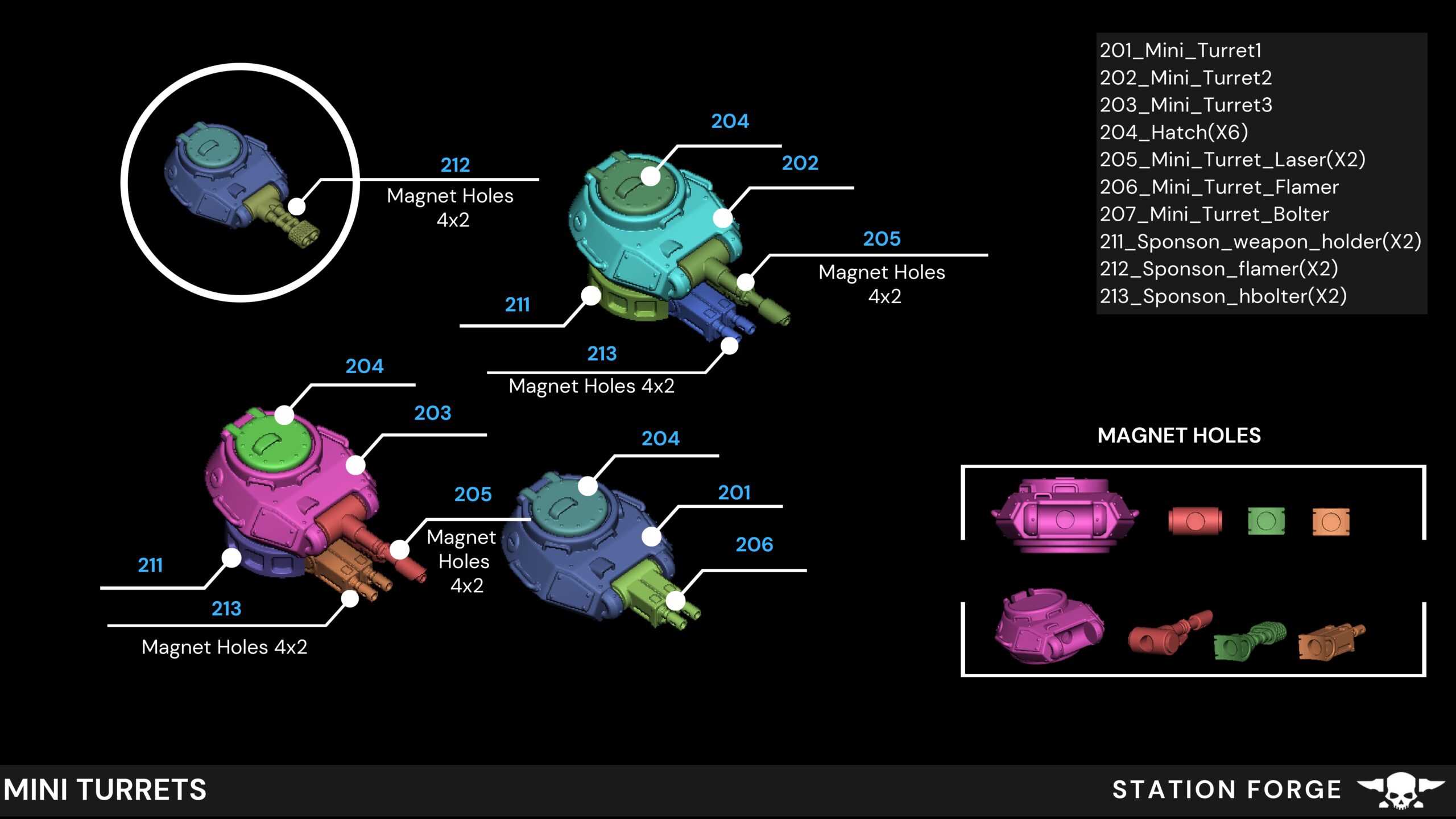 3 turret/sub turret options;