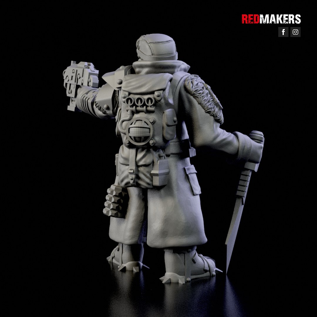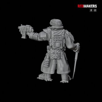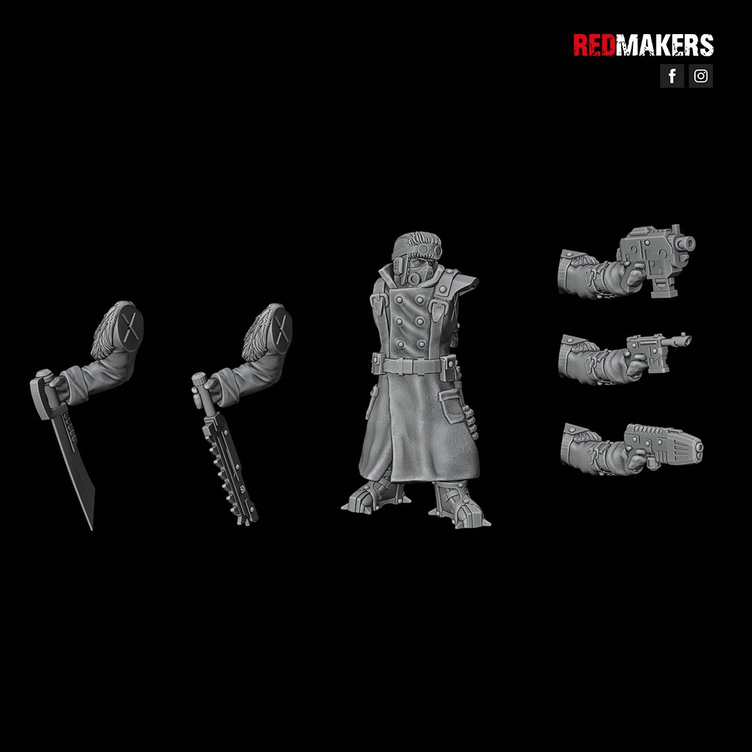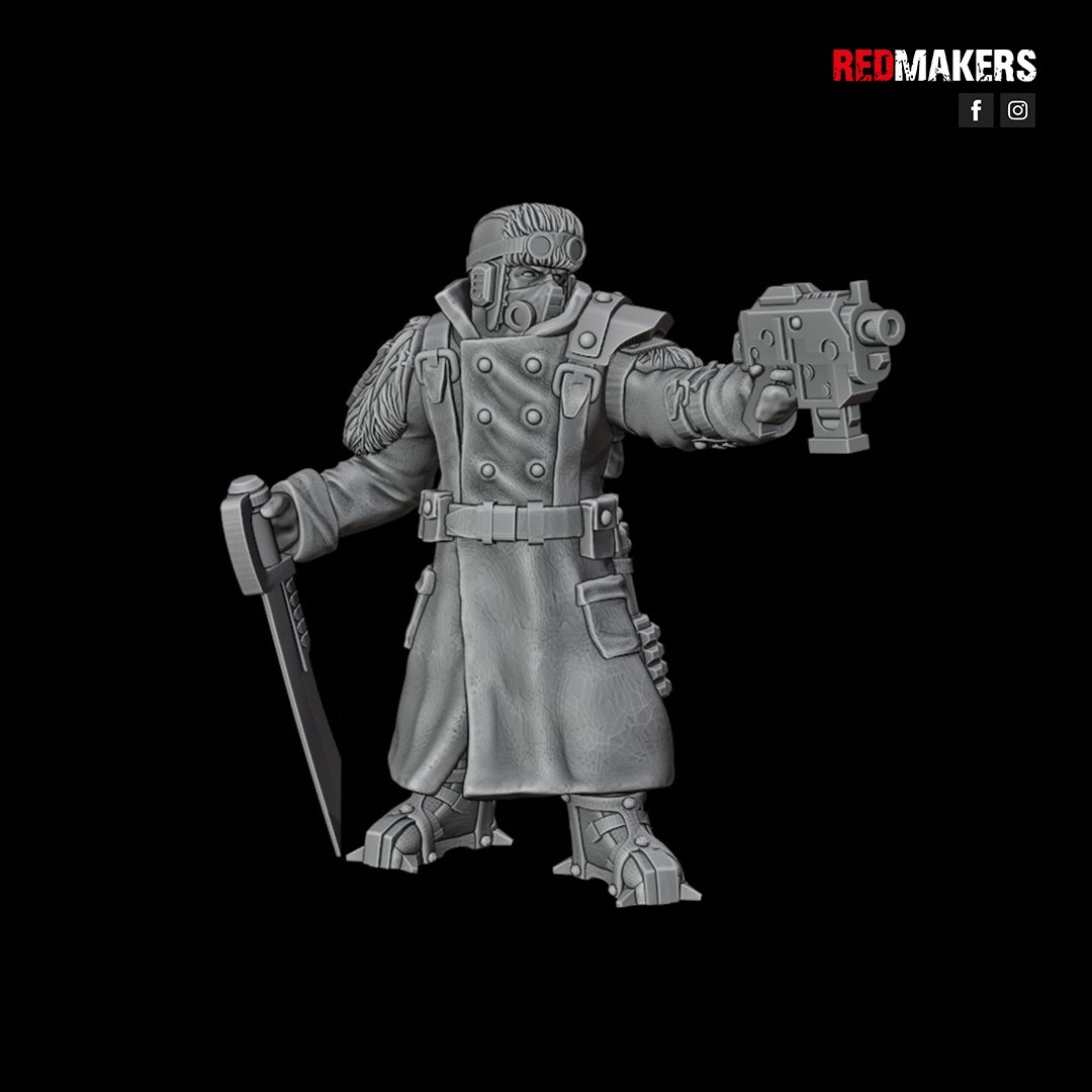 The SERGEANT can be equipped with a LASPISTOL, a BOLT PISTOL, or a PLASMA PISTOL, and either a CHAINSWORD, or a POWER SWORD.