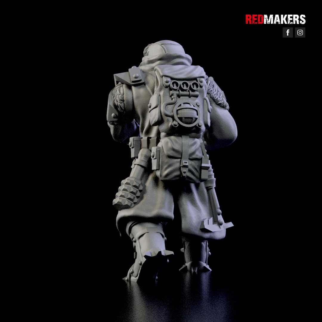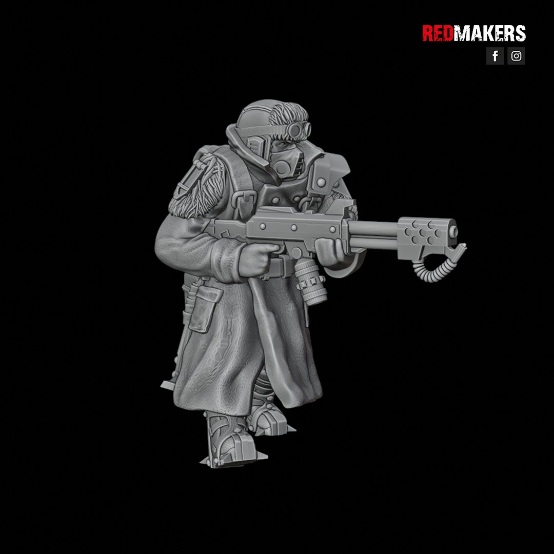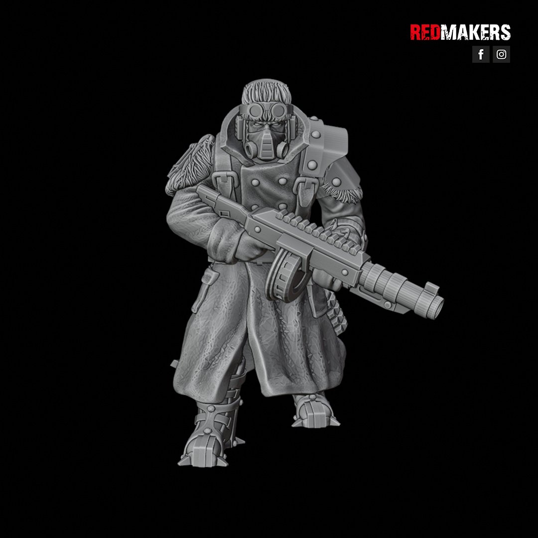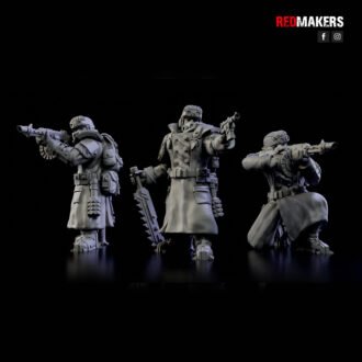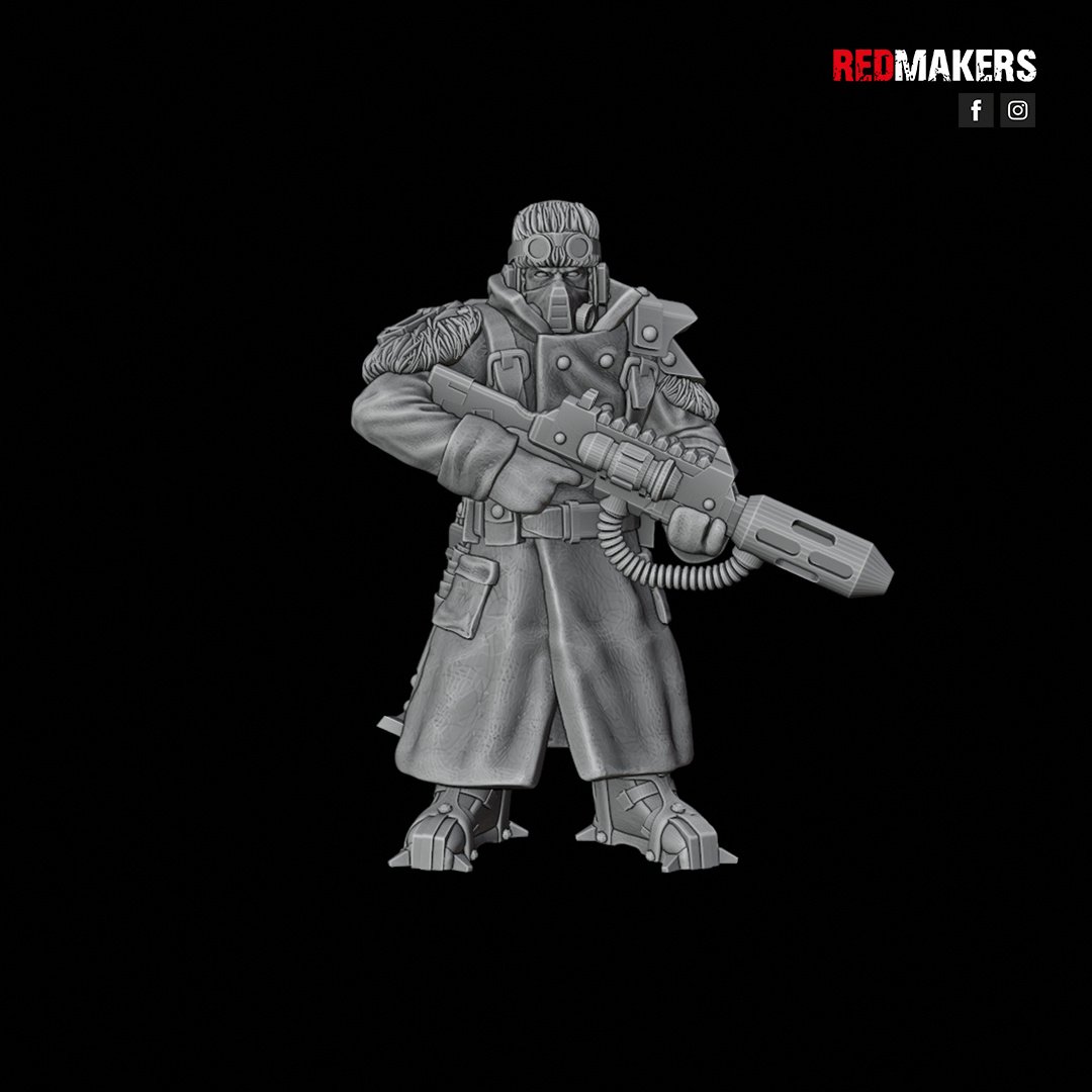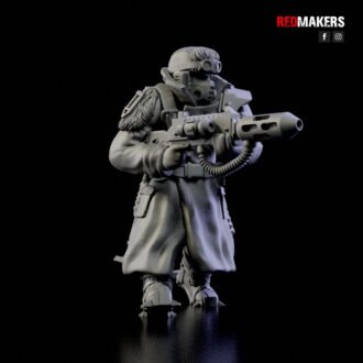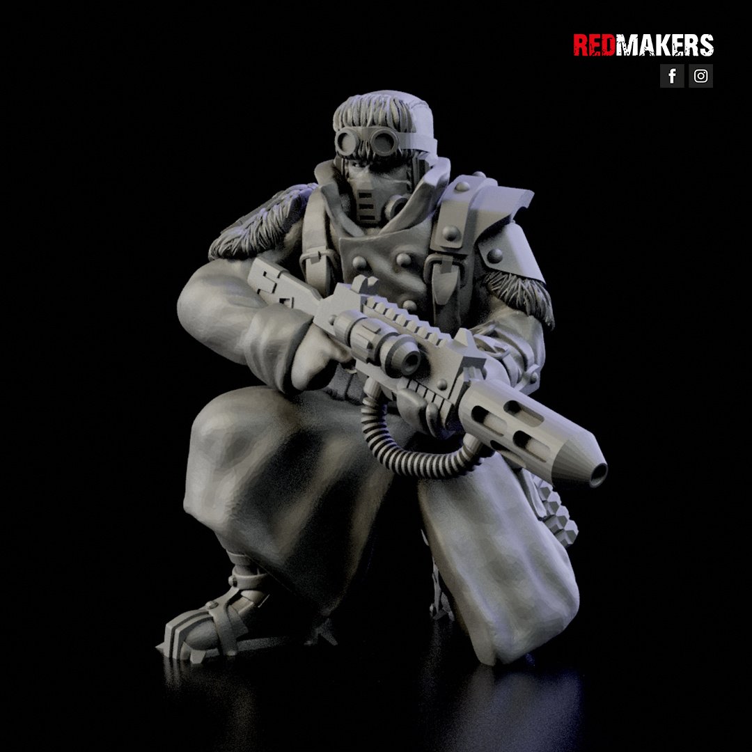 The squad can be armed with a choice of weapons including two FLAMERS, two GRENADE LAUNCHERS, two PLASMA GUNS, or two MELTGUNS.