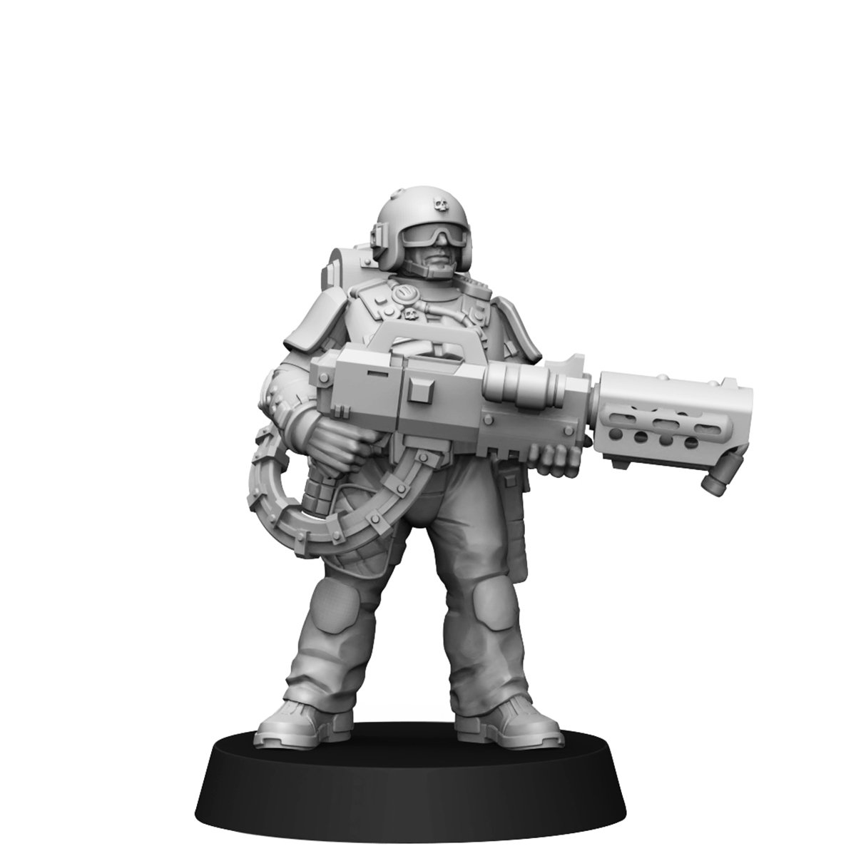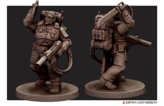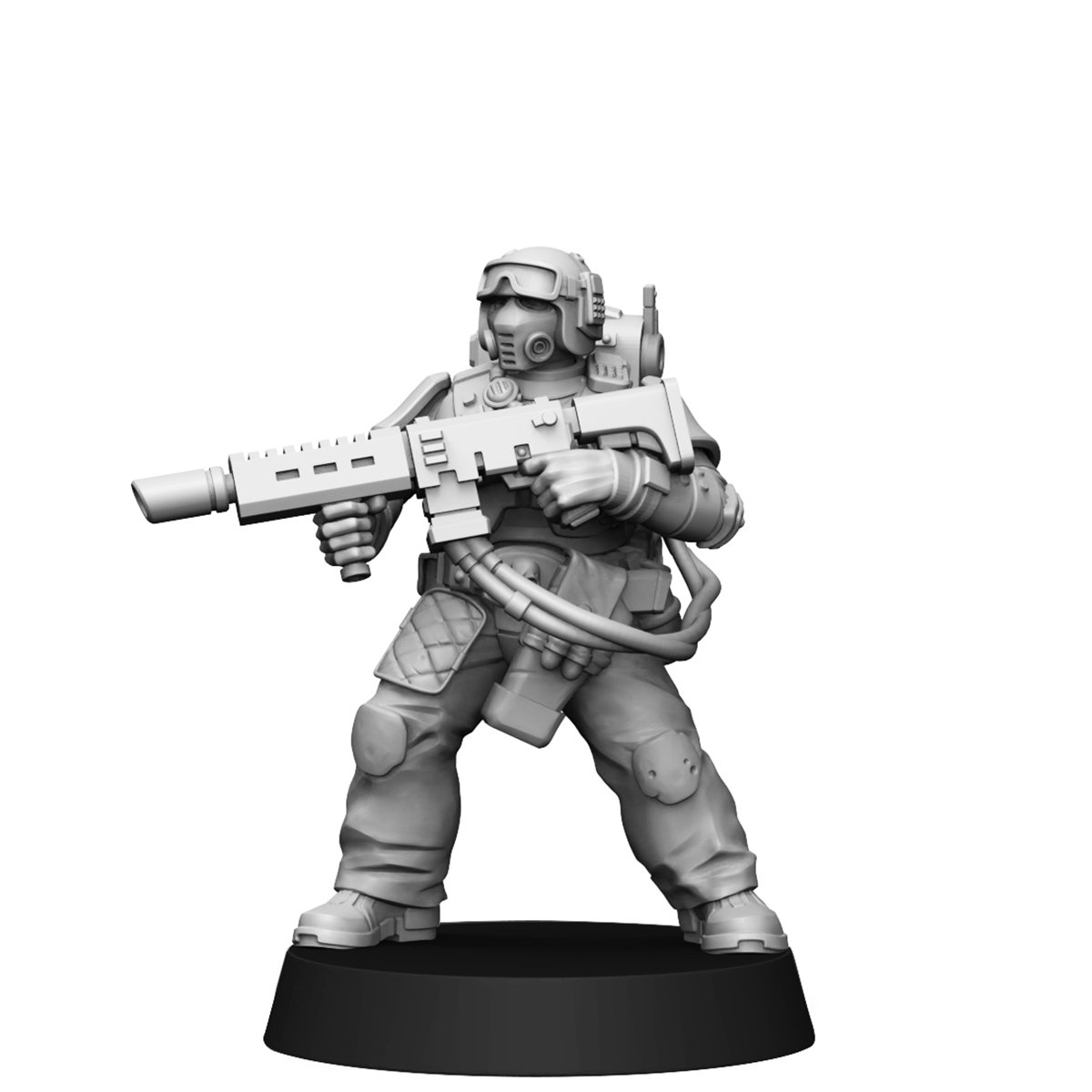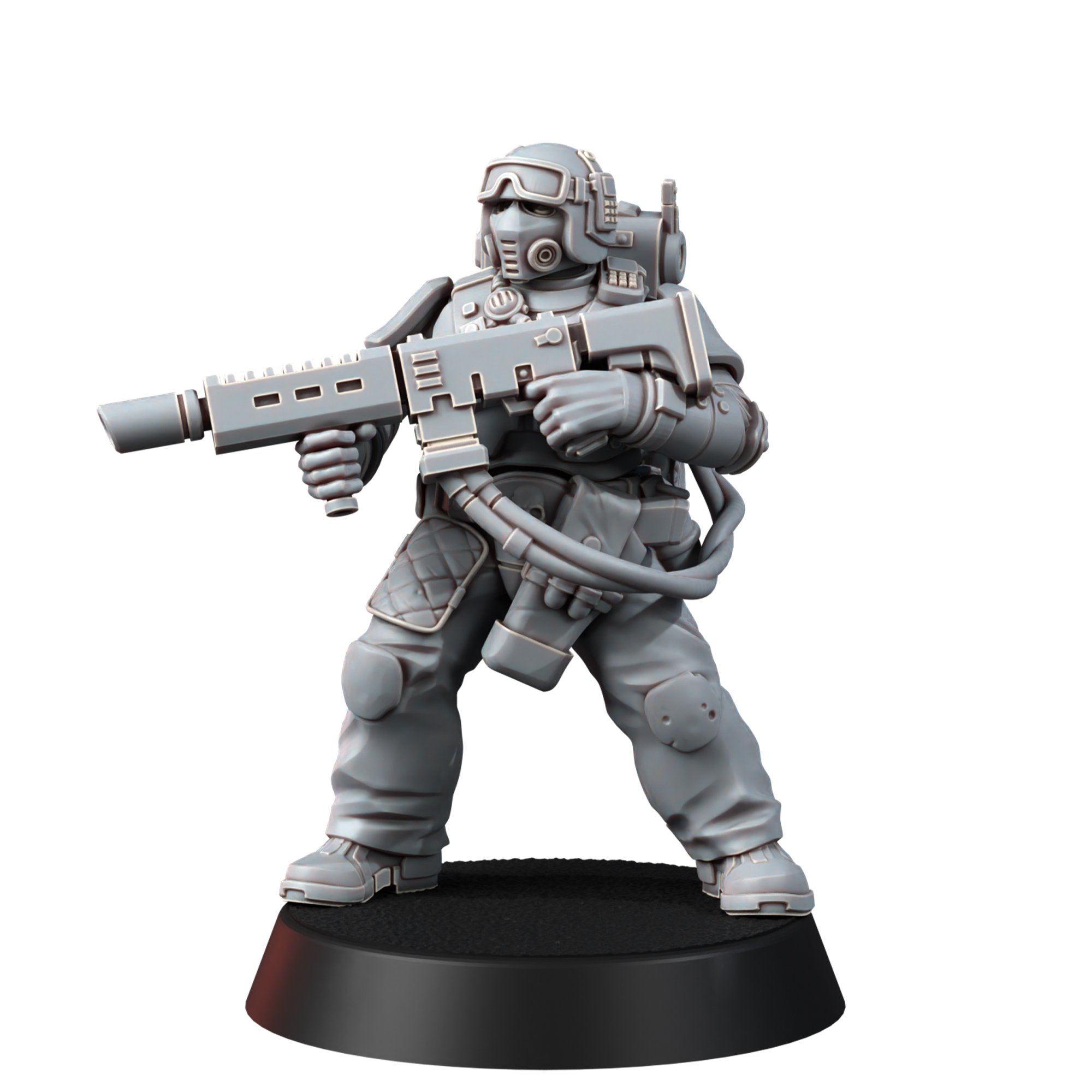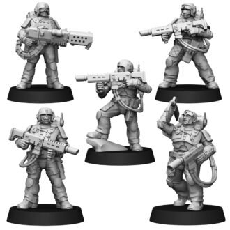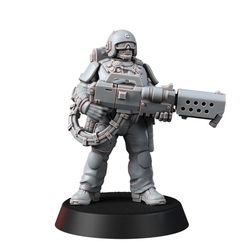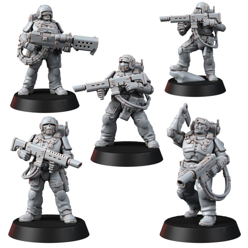 The set contains five miniatures, each of which consists of legs, arms with weapons, a torso, an interchangeable head (you can put your favorite one for everyone), a removable backpack and hoses for a heavy laser rifle. There is one specialist with a melta/flamethrower in the set.
