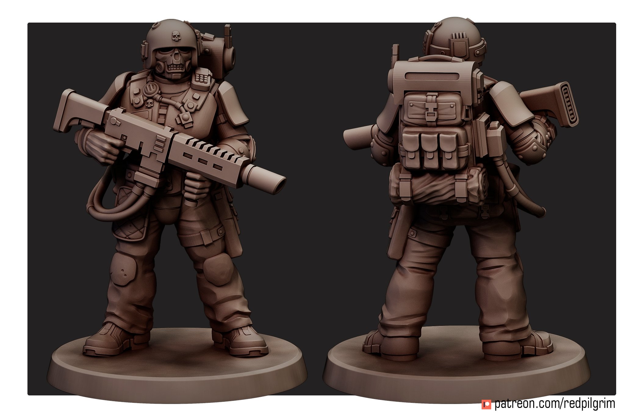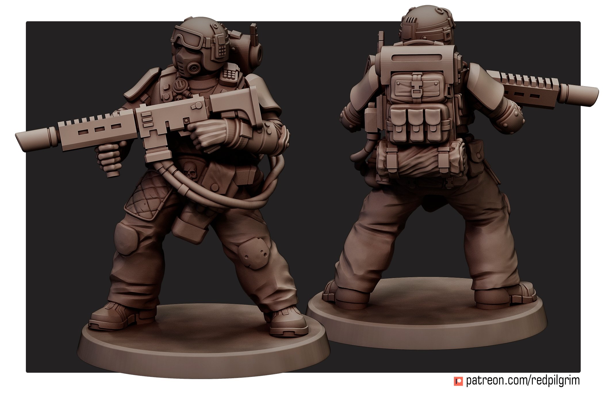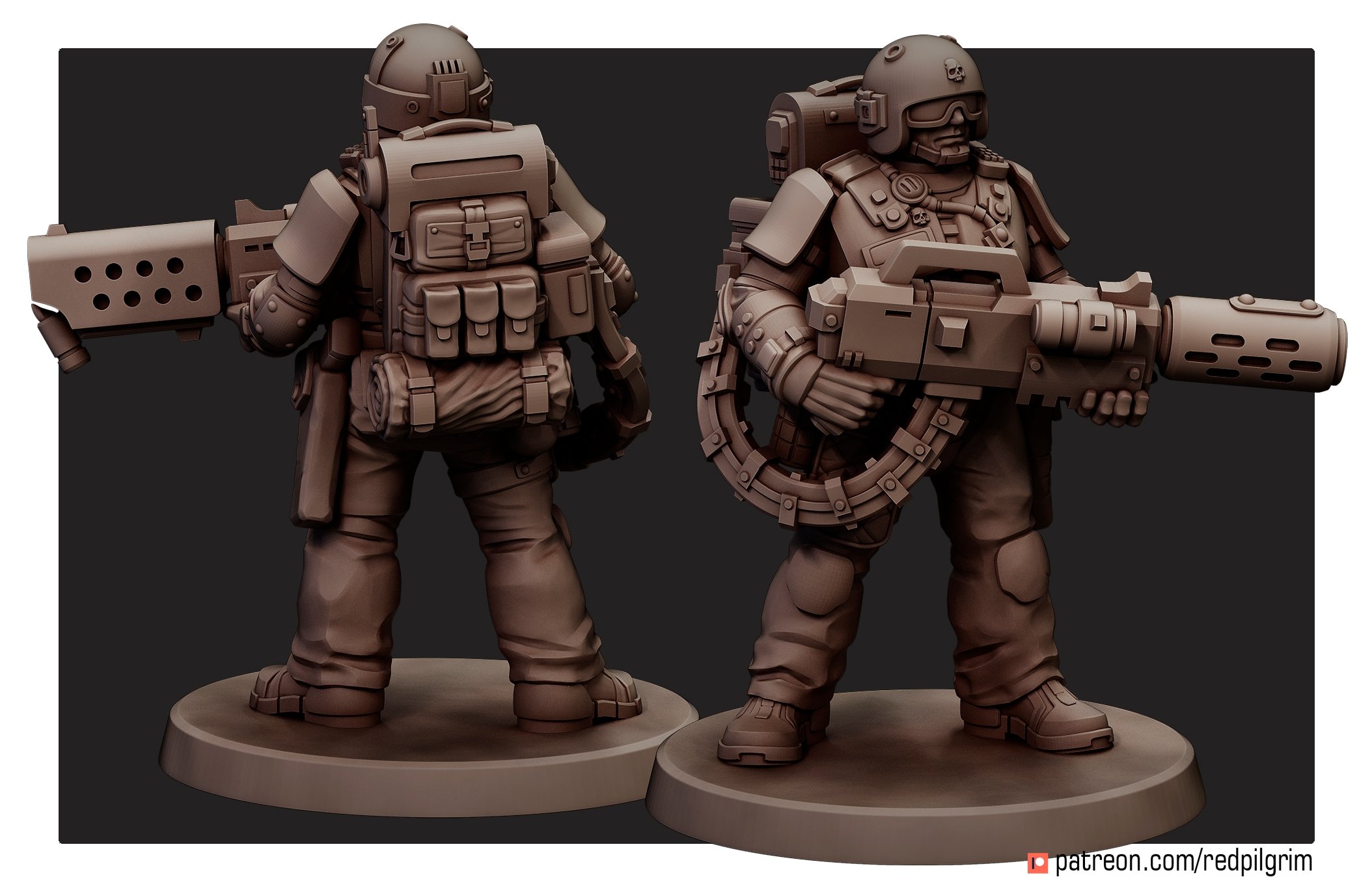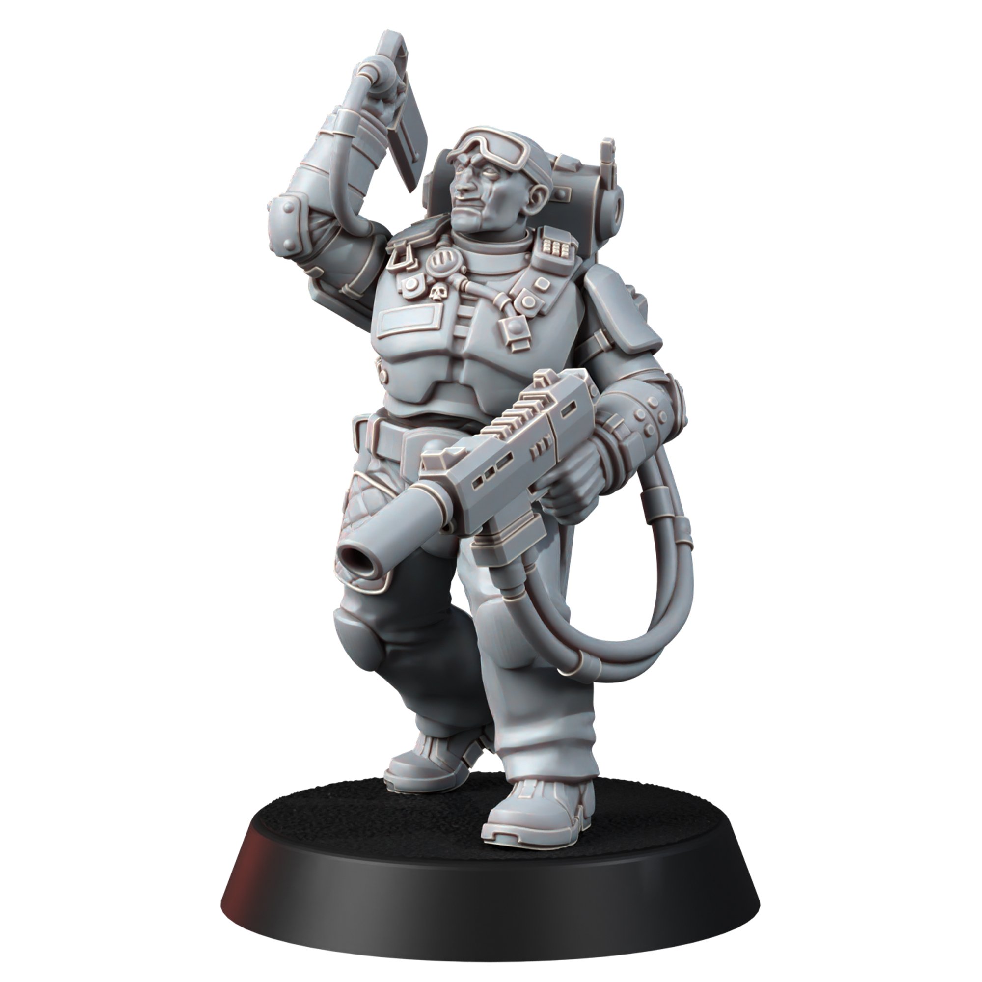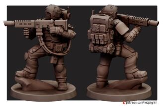 The set contains five miniatures, each of which consists of legs, arms with weapons, a torso, an interchangeable head (you can put your favorite one for everyone), a removable backpack and hoses for a heavy laser rifle. There is one specialist with a melta/flamethrower in the set.