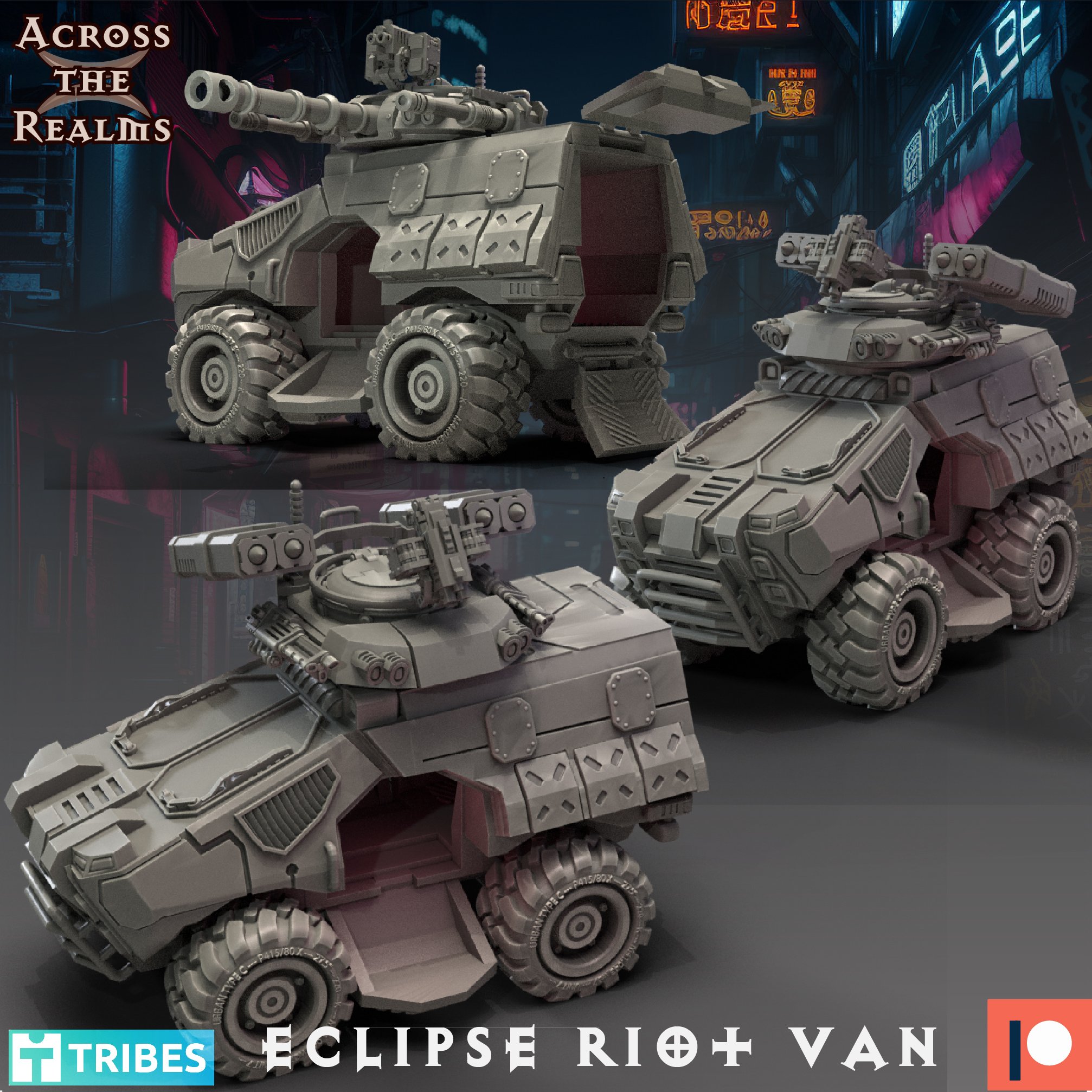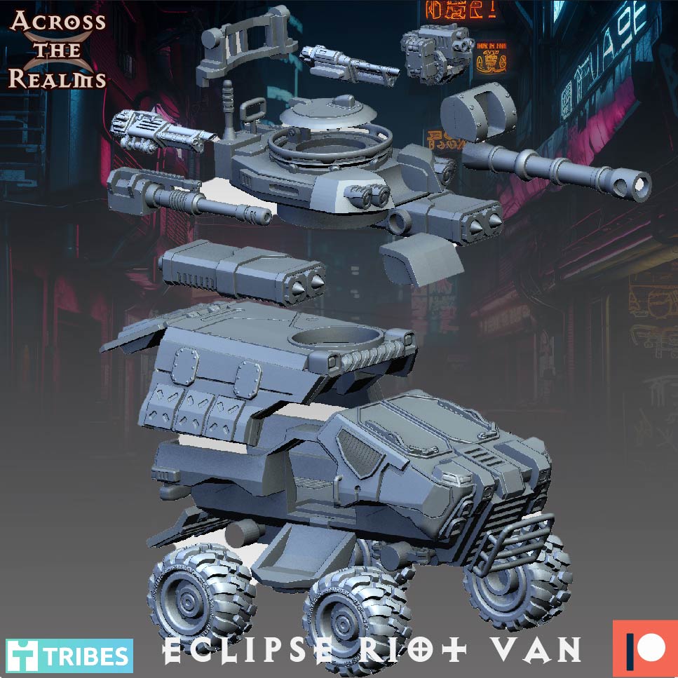 The Eclipse Riot Van comes with two compartment options, one fully closed with a turret and an open one with an exposed truck bed.