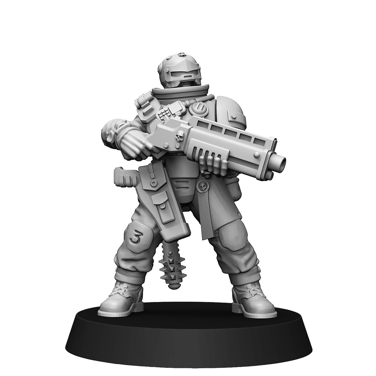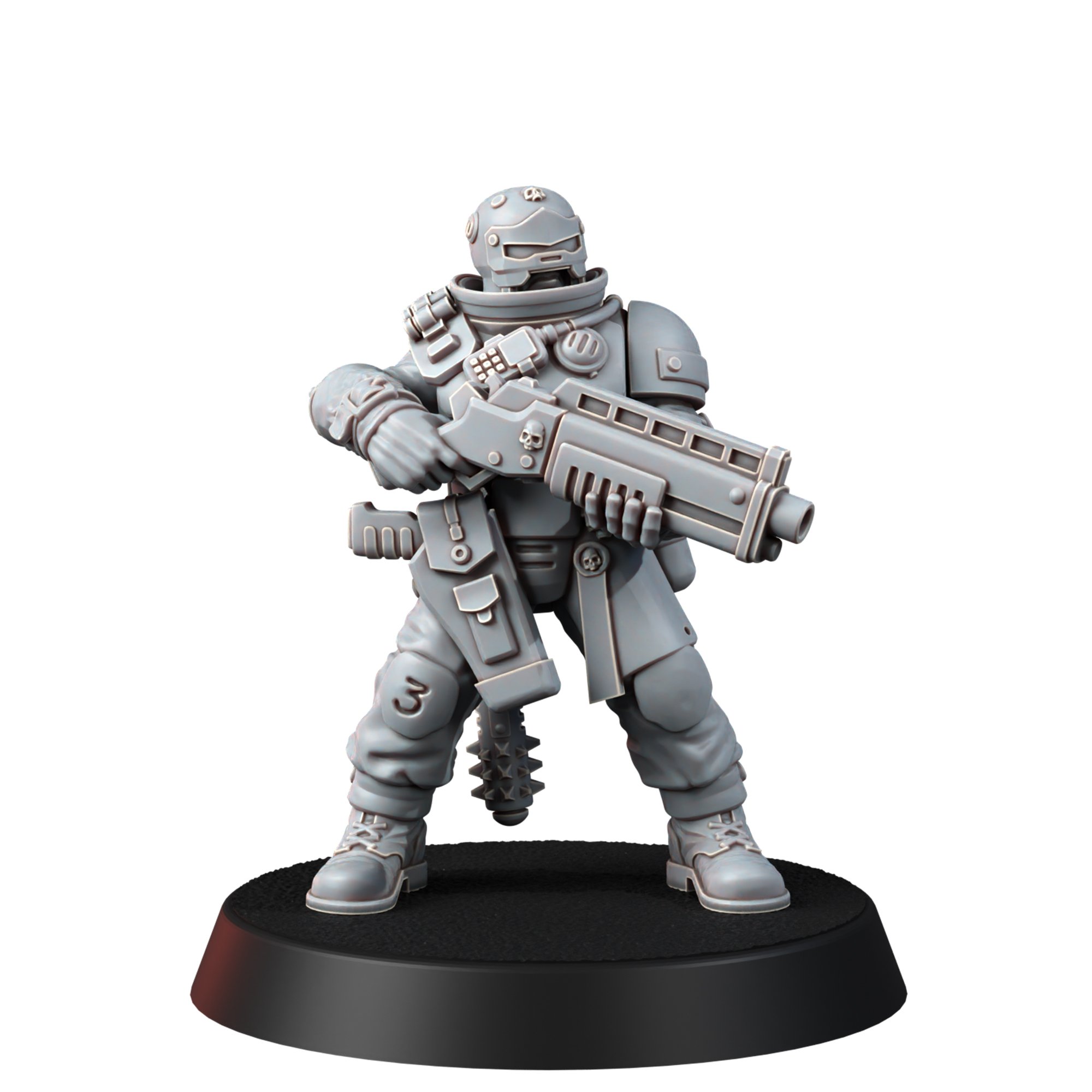 Usually, the composition of the interrogator’s retinue depends on the task assigned to it. Most often, the group includes a Duellist, armed with a power sword and shield, a Missionary full of radiant faith, the Grunt who provides fire support and experienced Case Officer armed with a shotgun and powermace. The reconnaissance function is performed by a Skull-drone. Such a retinue is the most balanced and advantageously complements the skills of the interrogator himself, and all of them together represent a very formidable combat and operational unit.