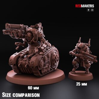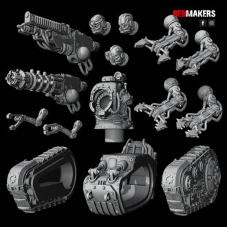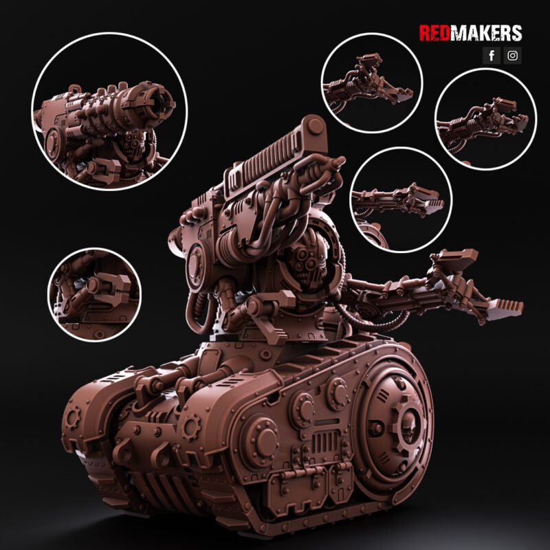 A heavily-armored tracked unit with multiple weapon, claw, and head options. Built to complement the Mech-Destroyer, it brings heavy armor and close-quarters capability to the field.