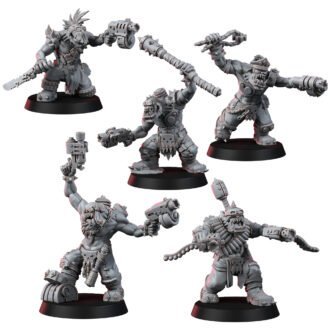 Dis set of five models on 32mm bases captures all da fiery rage and wild energy of da Yoofs. Dey might not ‘ave da strength or cunning of da older boyz, but dey make up for it with reckless bravado, rusty weapons, and moped engines jammed in their backs-barely holdin’ together but roarin’ like a proper WAAAR!