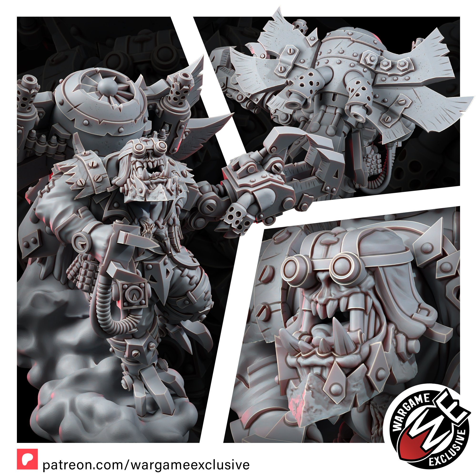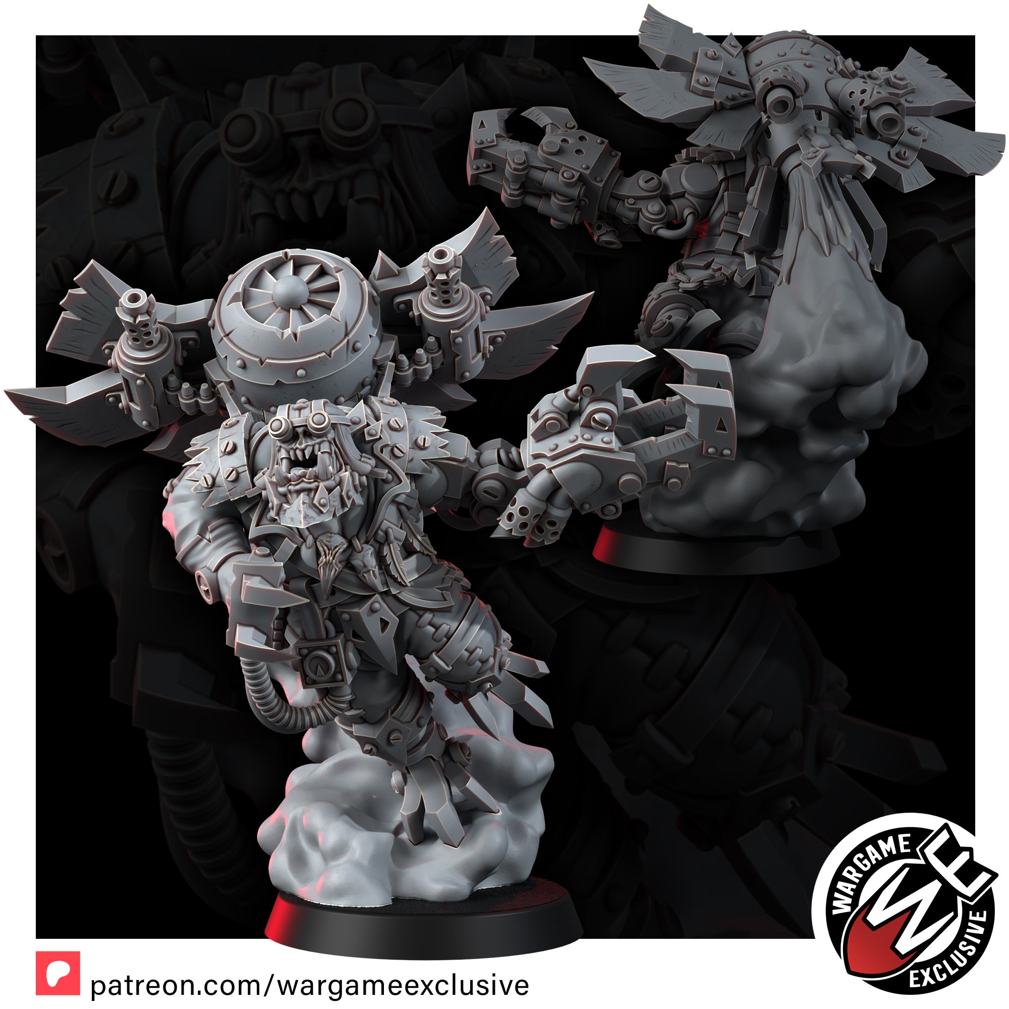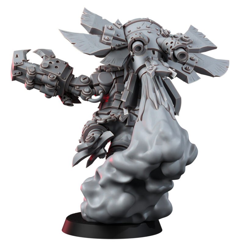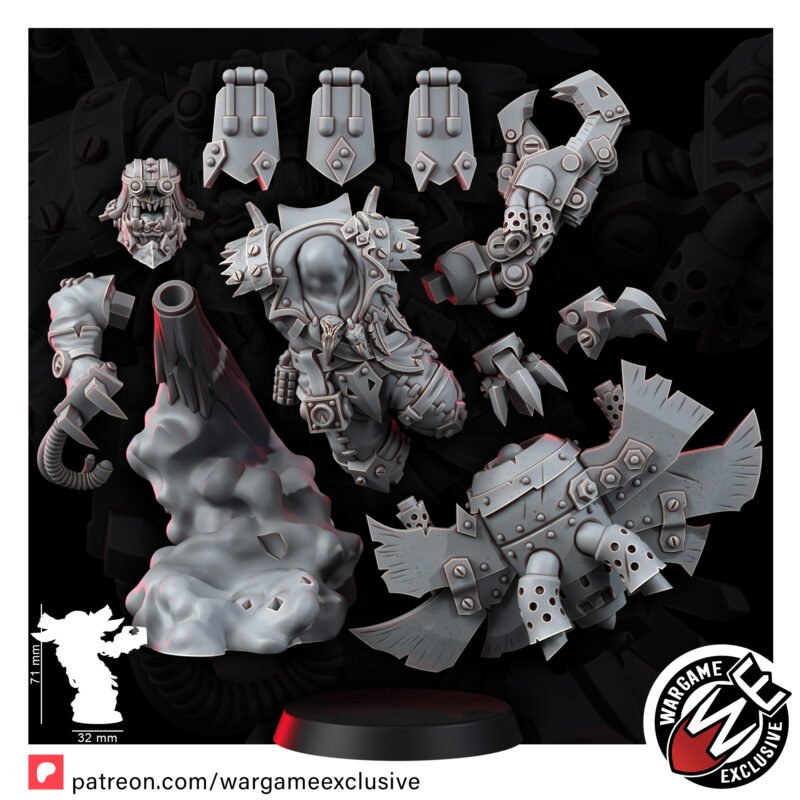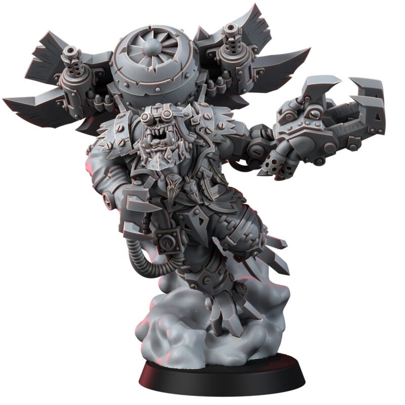 Back when he was a young ork, he had a bit of a problem with gettin’ stuck in fights where da dakka wasn’t enough, and his claws couldn’t reach! So, he had a ‘brilliant’ idea-if he can’t reach ’em with his fists, he’ll fly into ’em instead! Strap a jet engine on his back, add some winglets fer a bit o’ steering, and boom, he’s the Ork world’s most terrifying dive-bomber! Now, when he takes to the skies, he brings the storm with ‘im, swoopin’ down on enemy lines, krumpin’ tanks, choppin’ heads, and makin’ sure no one gets out alive!