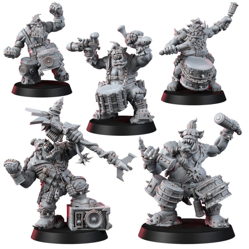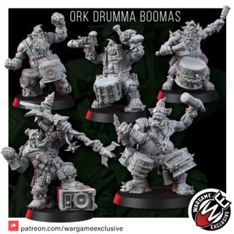 Embrace this ancient power with our exquisitely detailed ORK DRUMMA BOOMAS models. Each drummer stands poised, ready to stir the heart of an Ork horde, and when needed, switch from summoning beats to summoning havoc as a fearsome adversary.