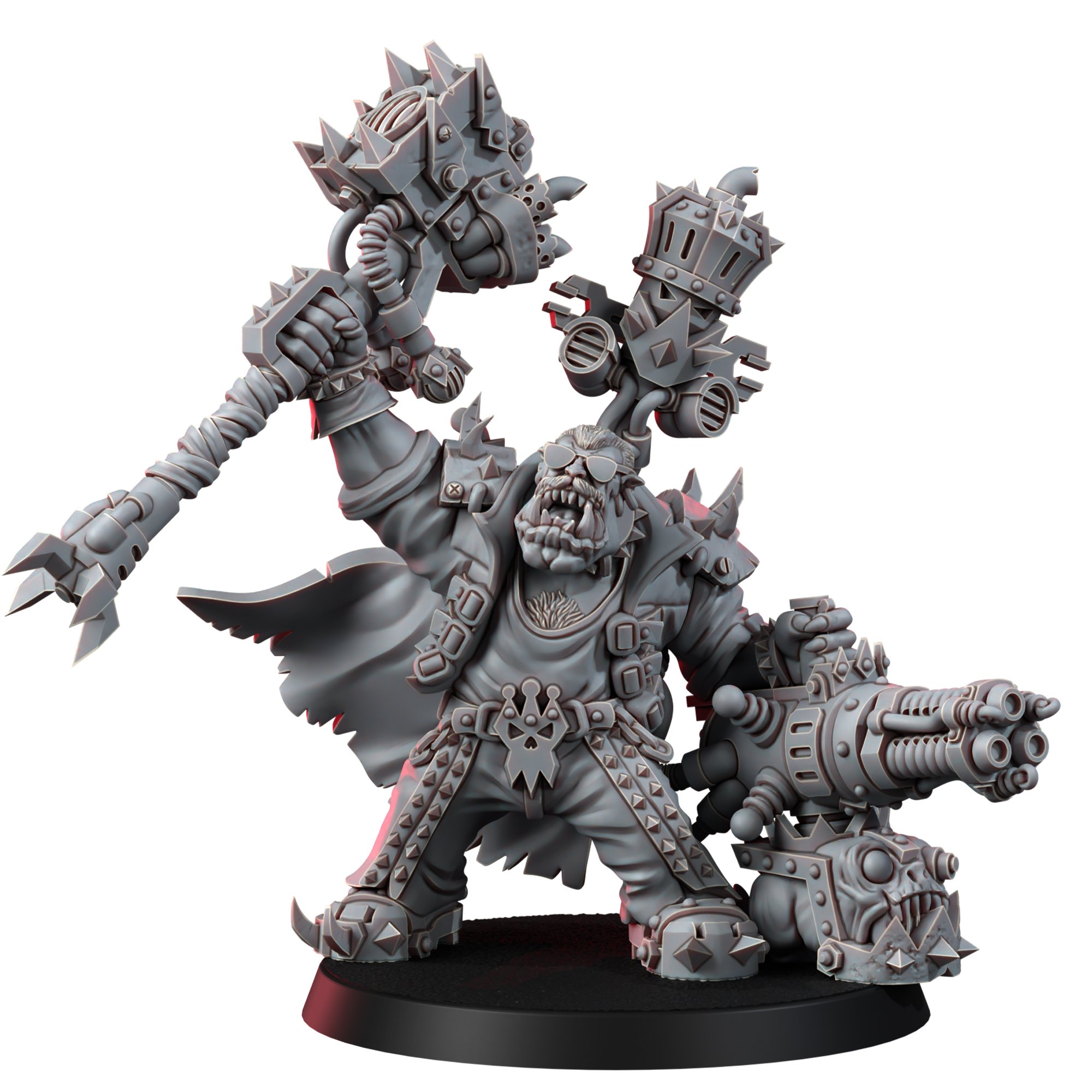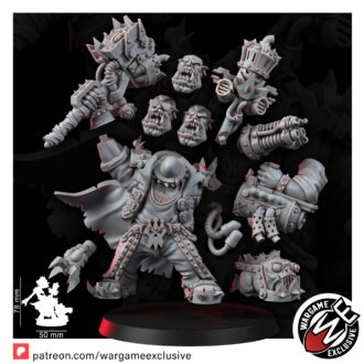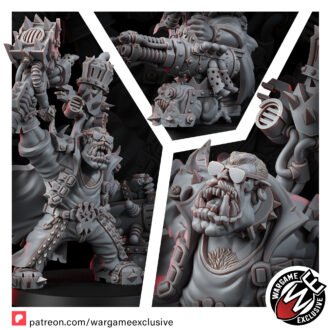 This isn’t just any model; it’s a masterpiece that encapsulates the spirit of a Warboss with the soul of a rockstar. From his microphone-stand-turned-battle-hammer to the menacing glare of his big heavy shoota, FREDDY is the epitome of Orkish innovation and interstellar charisma.