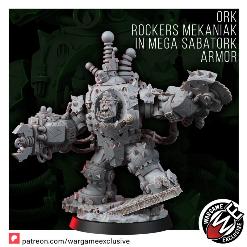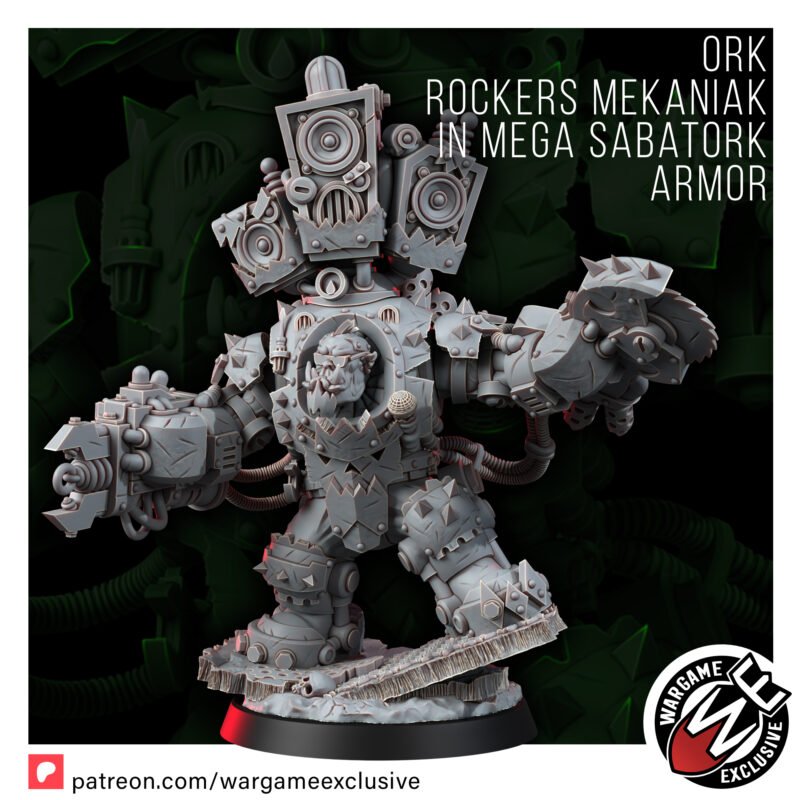 Da Ork Rocker Mekaniak in Mega Sabatork Armor has just dropped, an’ he’s bringin’ da NOIZE to every krump-fest across da sector!