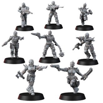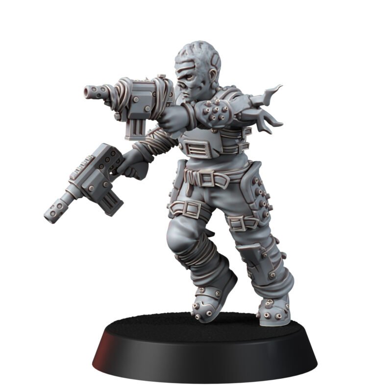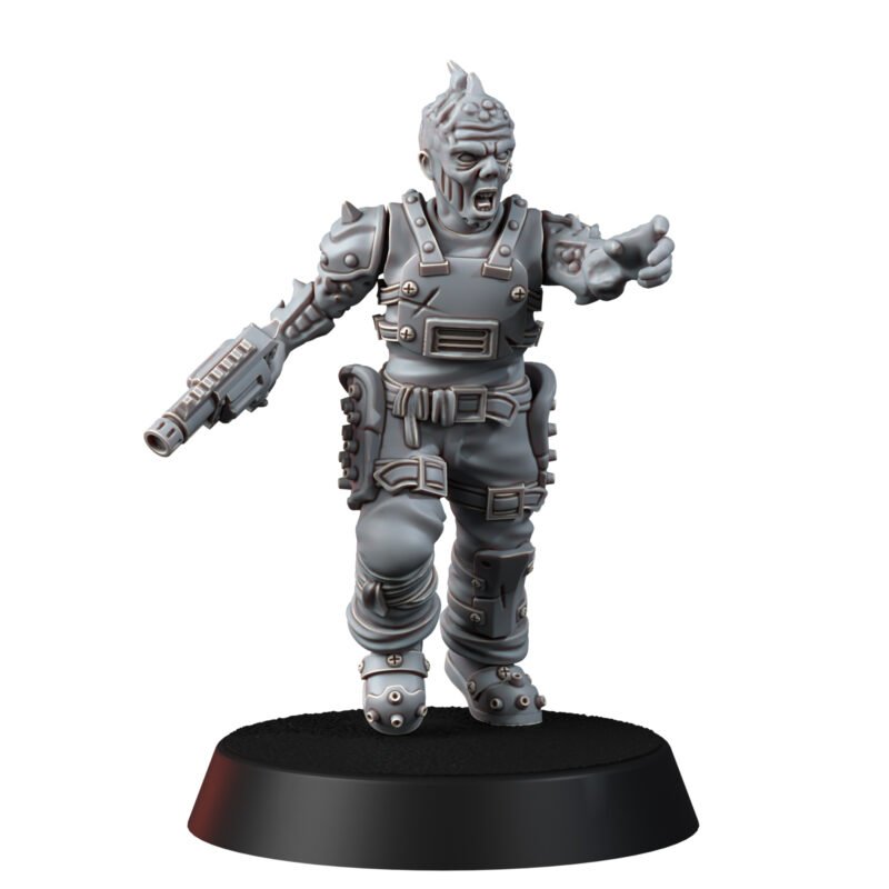 This modular gang is cross compatible with our Outcast gang and our Code Splicer gang, and is a malstrain version, mutated by the toxic environment of the Hellspire. This is an ancient collapsed settlement deep beneath ‘stack city’ (officially known as Blackreech City), which is rife with a hideous infection that contaminates the beings who live there.